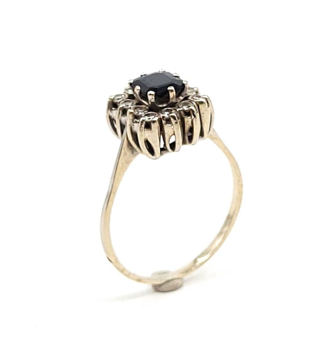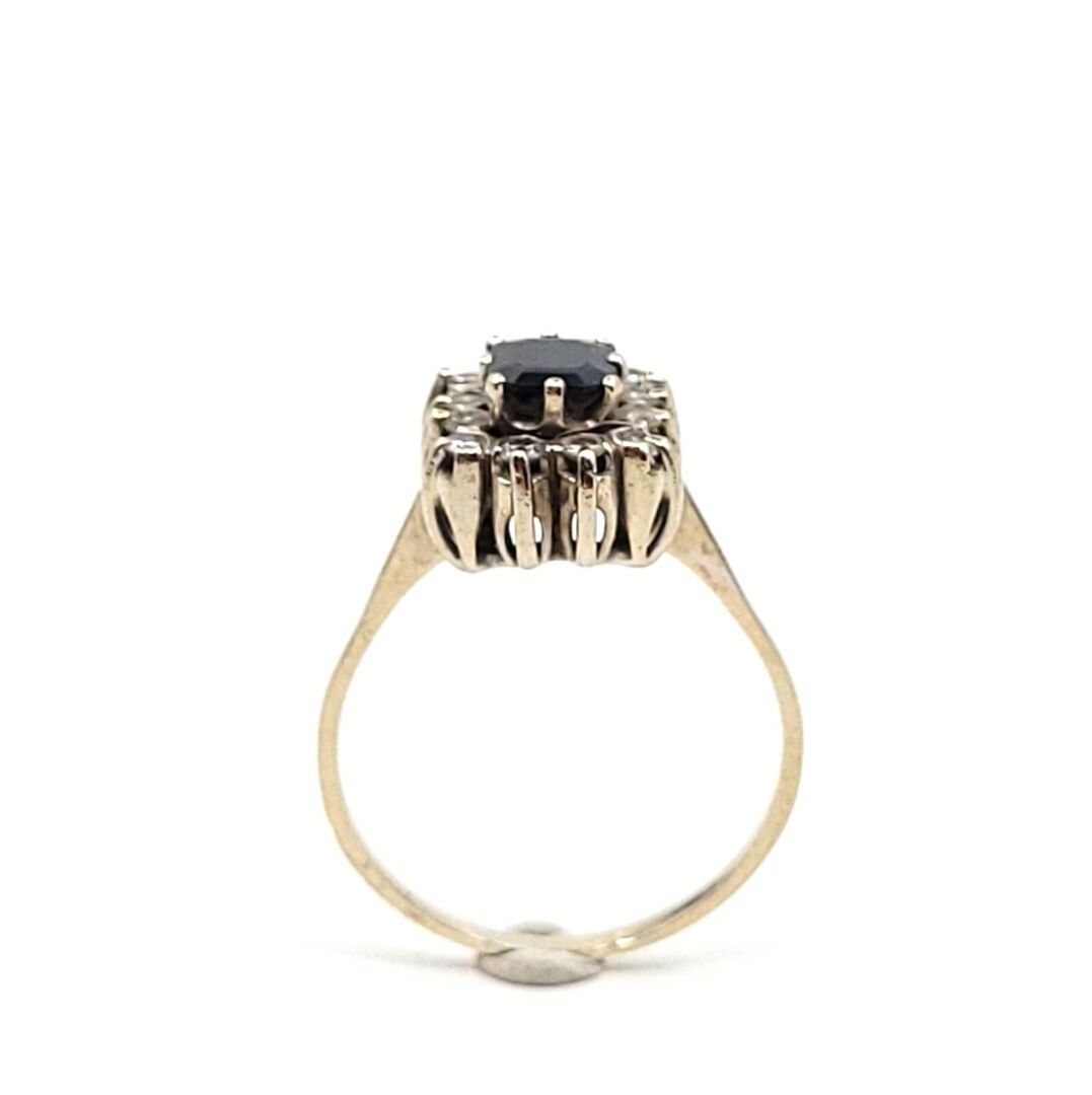 Daisy ring in 750‰ white gold centred on a sapphire weighing approximately 1 carat surrounded by 12 diamonds weighing approximately 0.02 carats