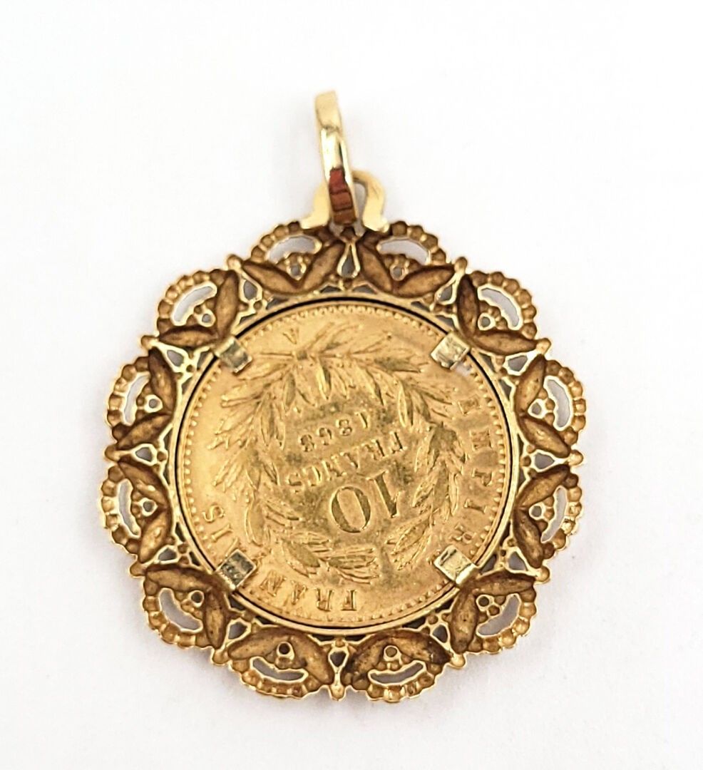 PIECE de 10 francs Napoléon tête laurée monté en pendentif e…