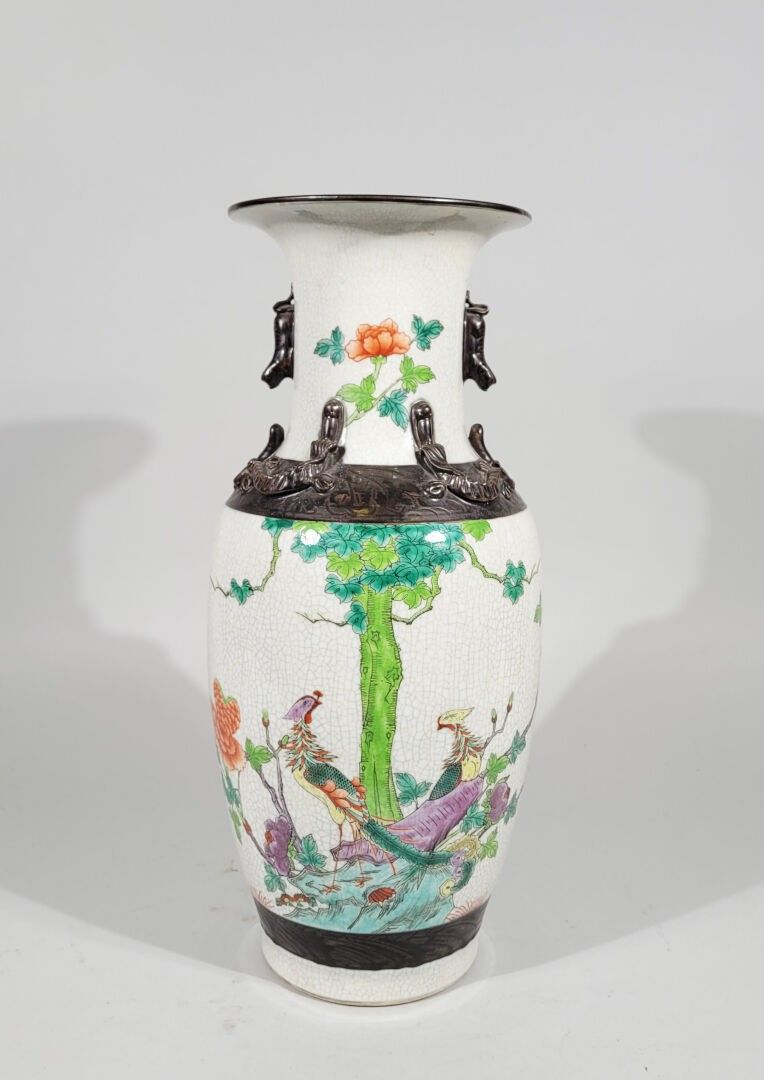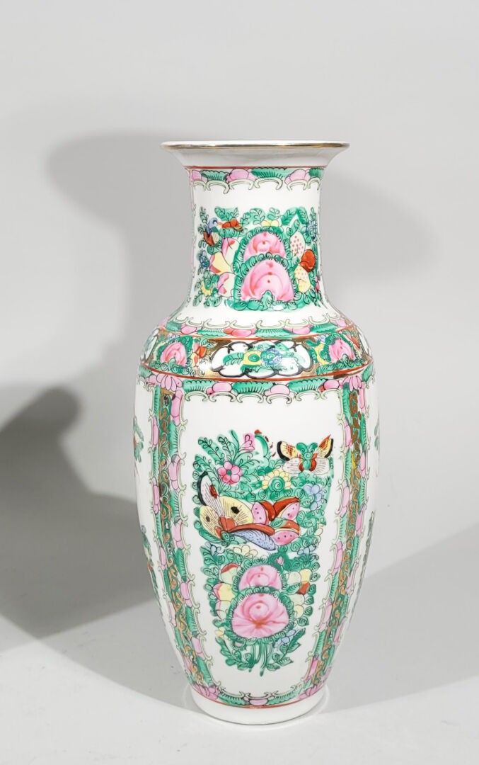 A porcelain baluster vase with polychrome decoration in the famille rose style.