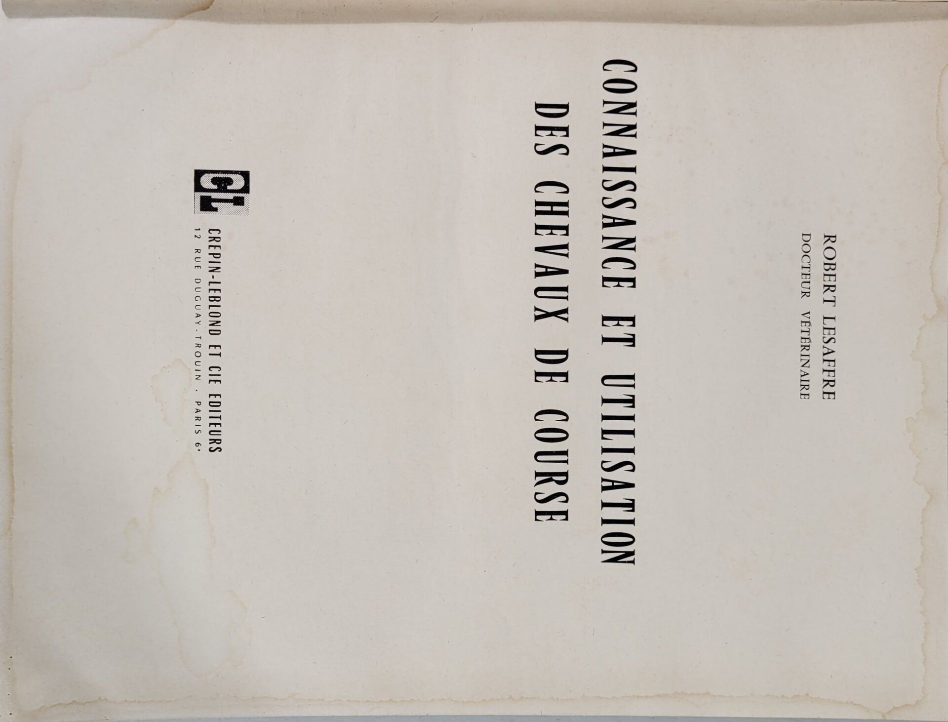 - R. LESAFFRE. "Knowledge and use of racehorses" Crepin-Leblond et cie.
