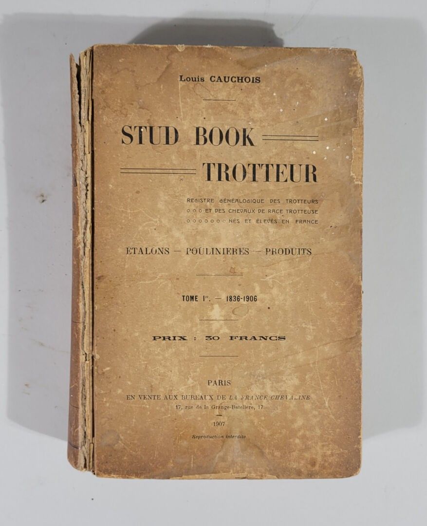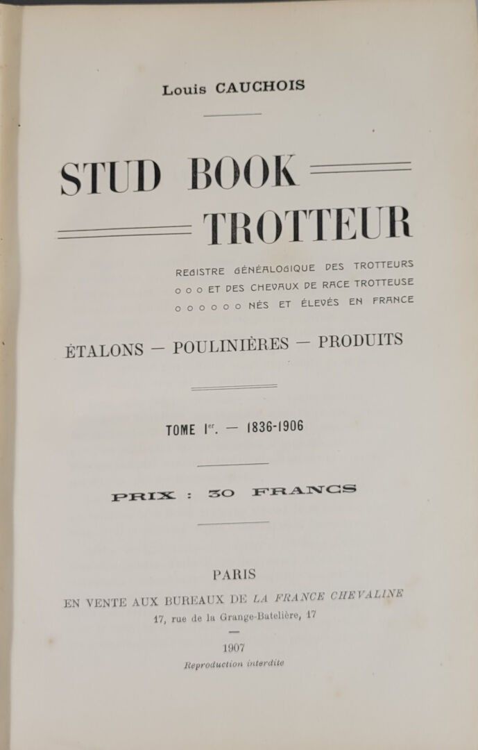 - Louis CAUCHOIS. "Stud book trotteur". 1907. Paris. On sale at the offices of France cheval.