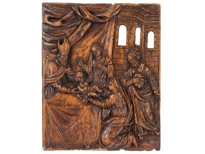 Anna & Joachim? Relief 17th century Carved wood 33.