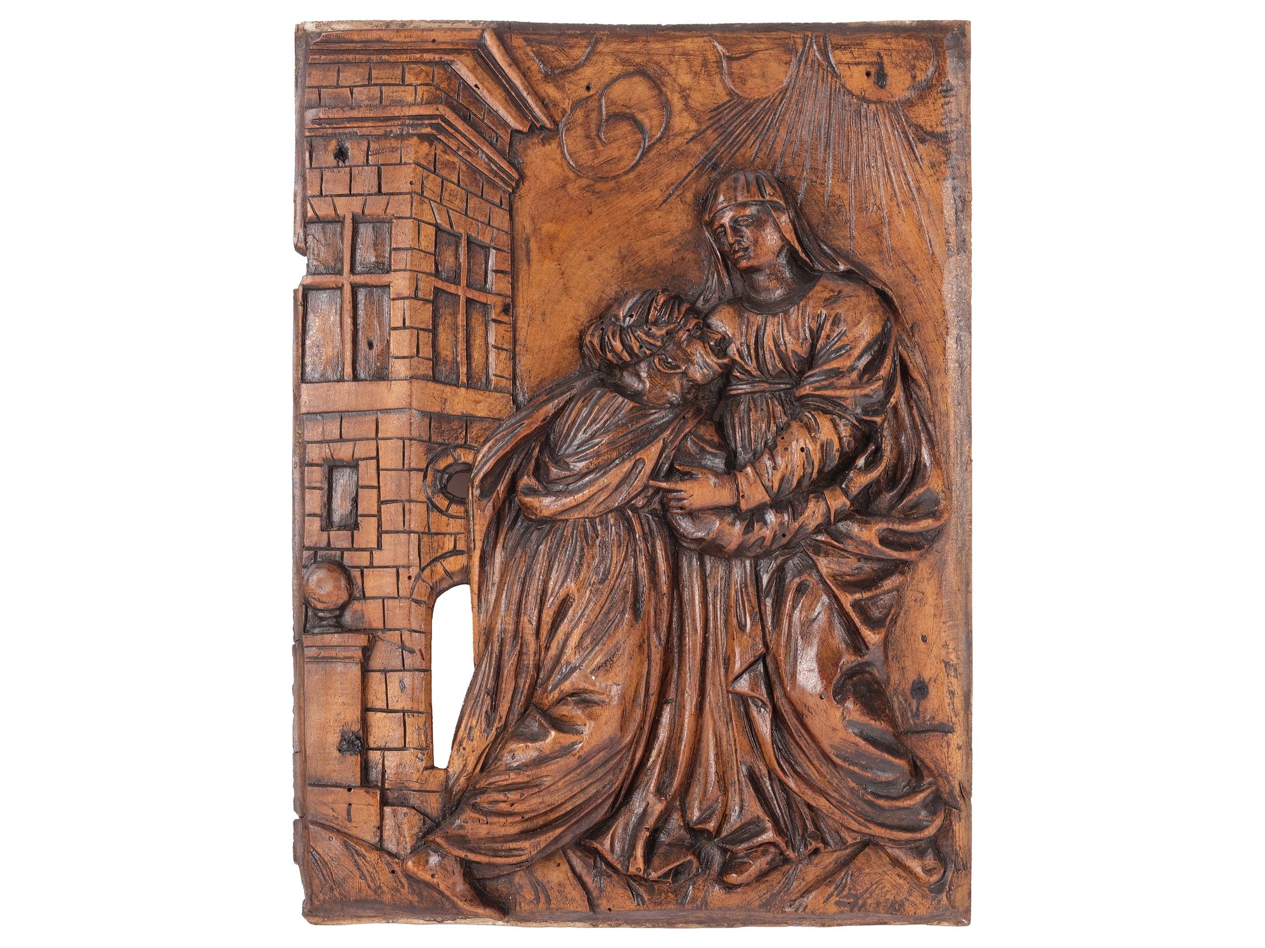 Anna & Joachim? Relief 17th century Carved wood 33.
