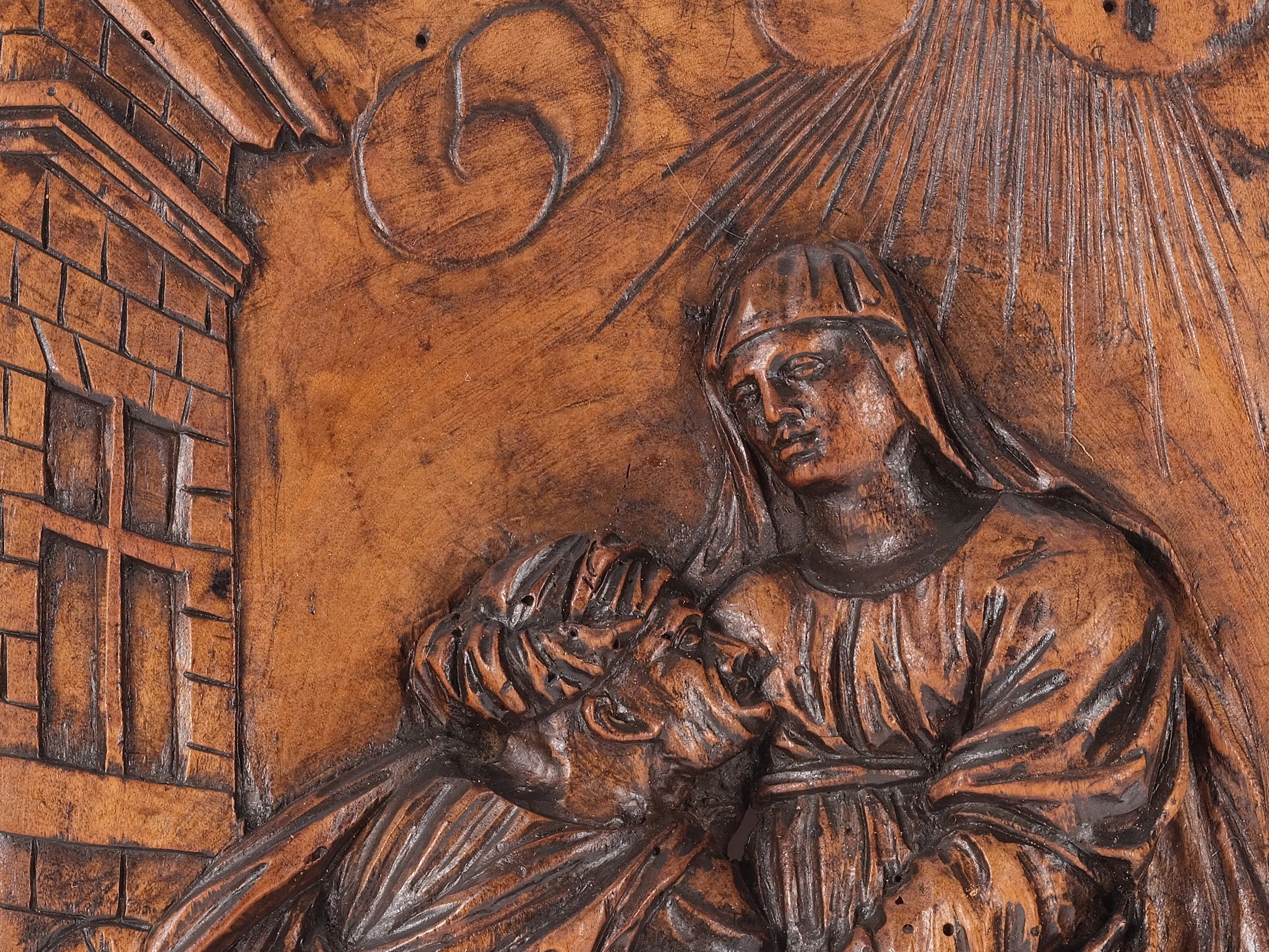 Anna & Joachim? Relief 17th century Carved wood 33.5 x 25 cm