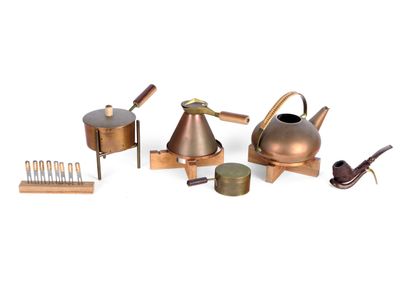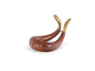 Carl Auböck Vienna 1900-1957 Brass and leather pipe stand, c…