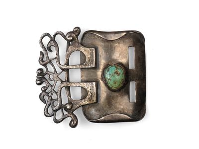Belt buckle Art Nouveau Silver marked With turquoise 7.