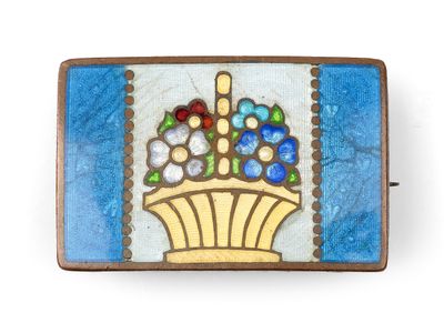 Art Nouveau brooch Brass or bronze Enameled with flower bask…