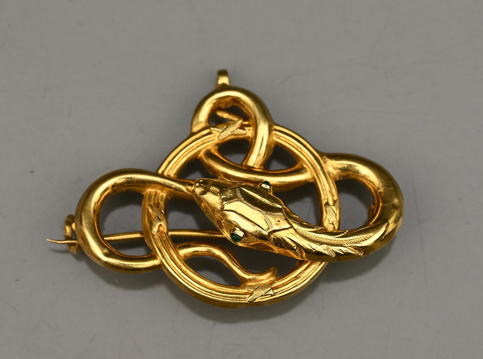 Snake brooch pendant in 18k yellow gold. Weight 2.3g.