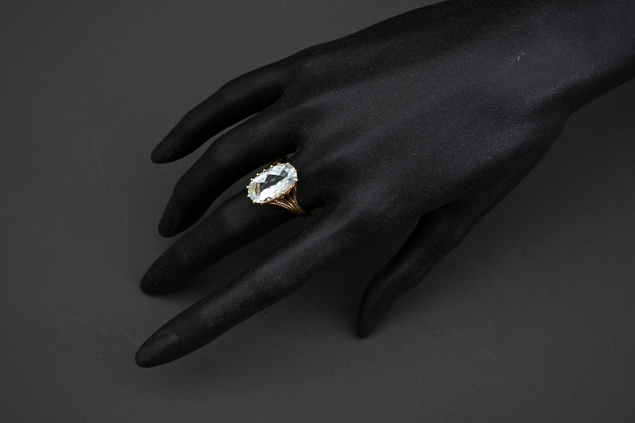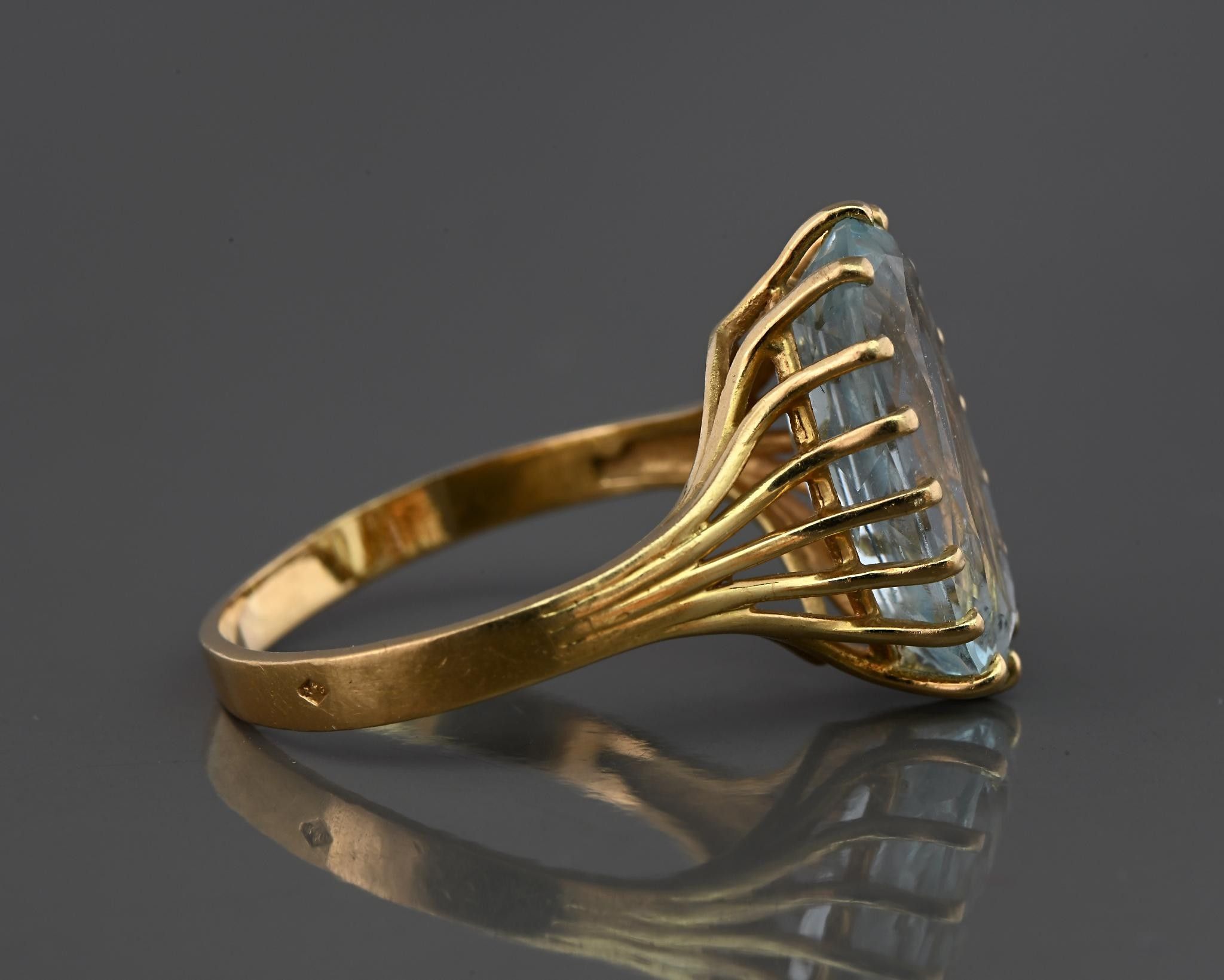 18k yellow gold ring set with an oval aquamarine.