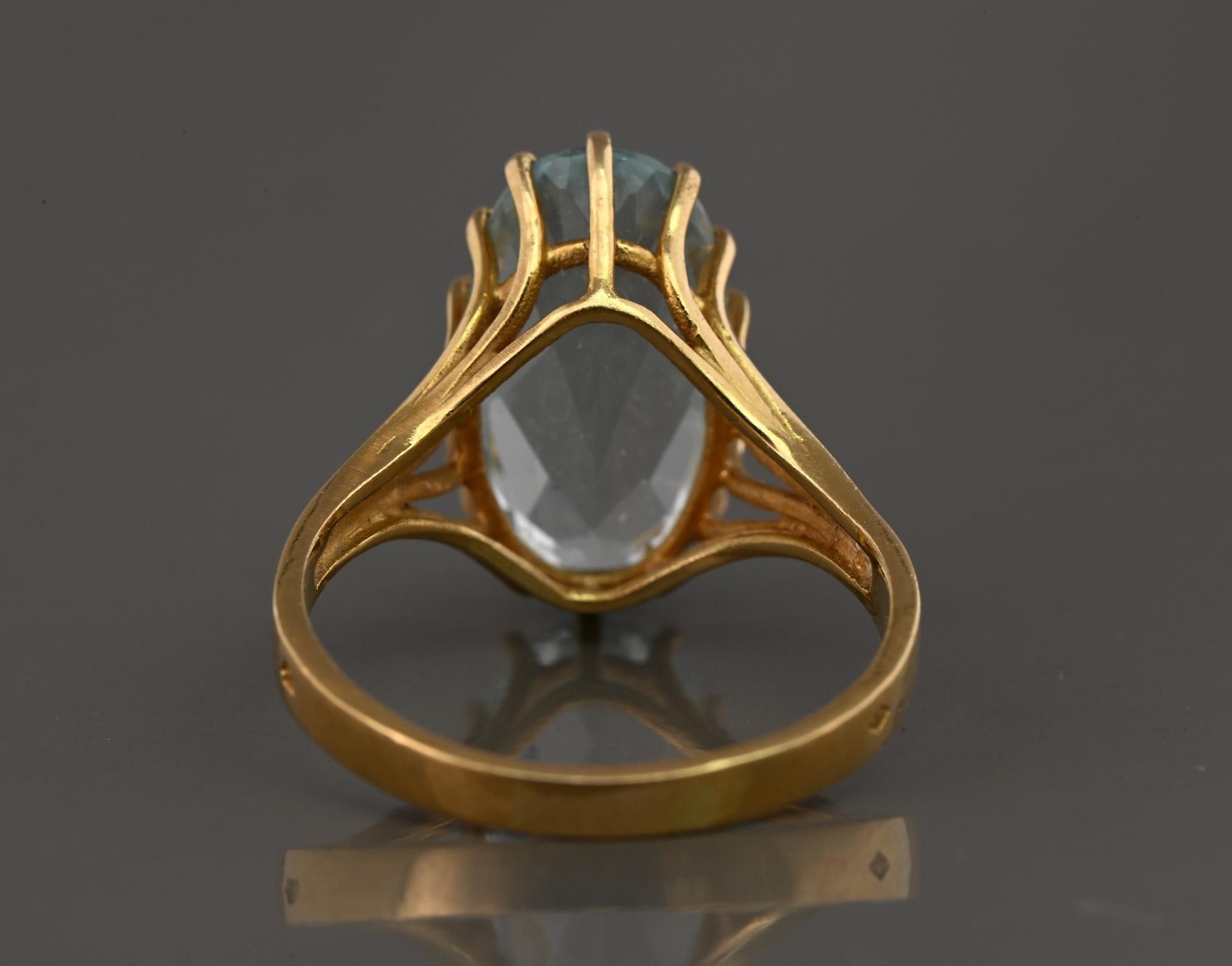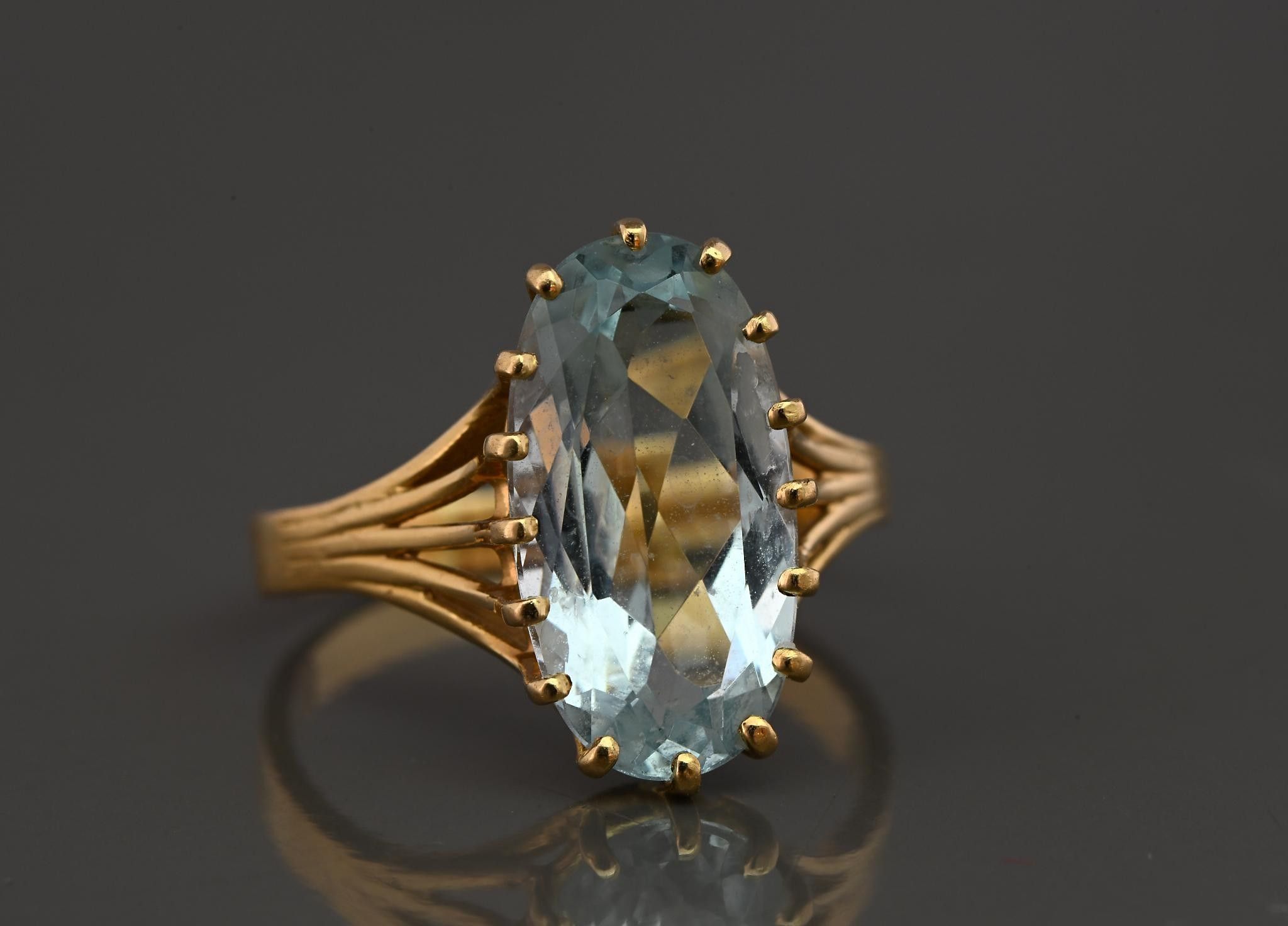 18k yellow gold ring set with an oval aquamarine. Size 59/60. 5.04g.