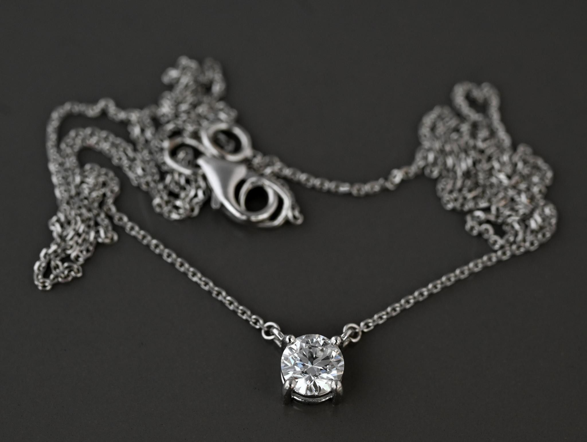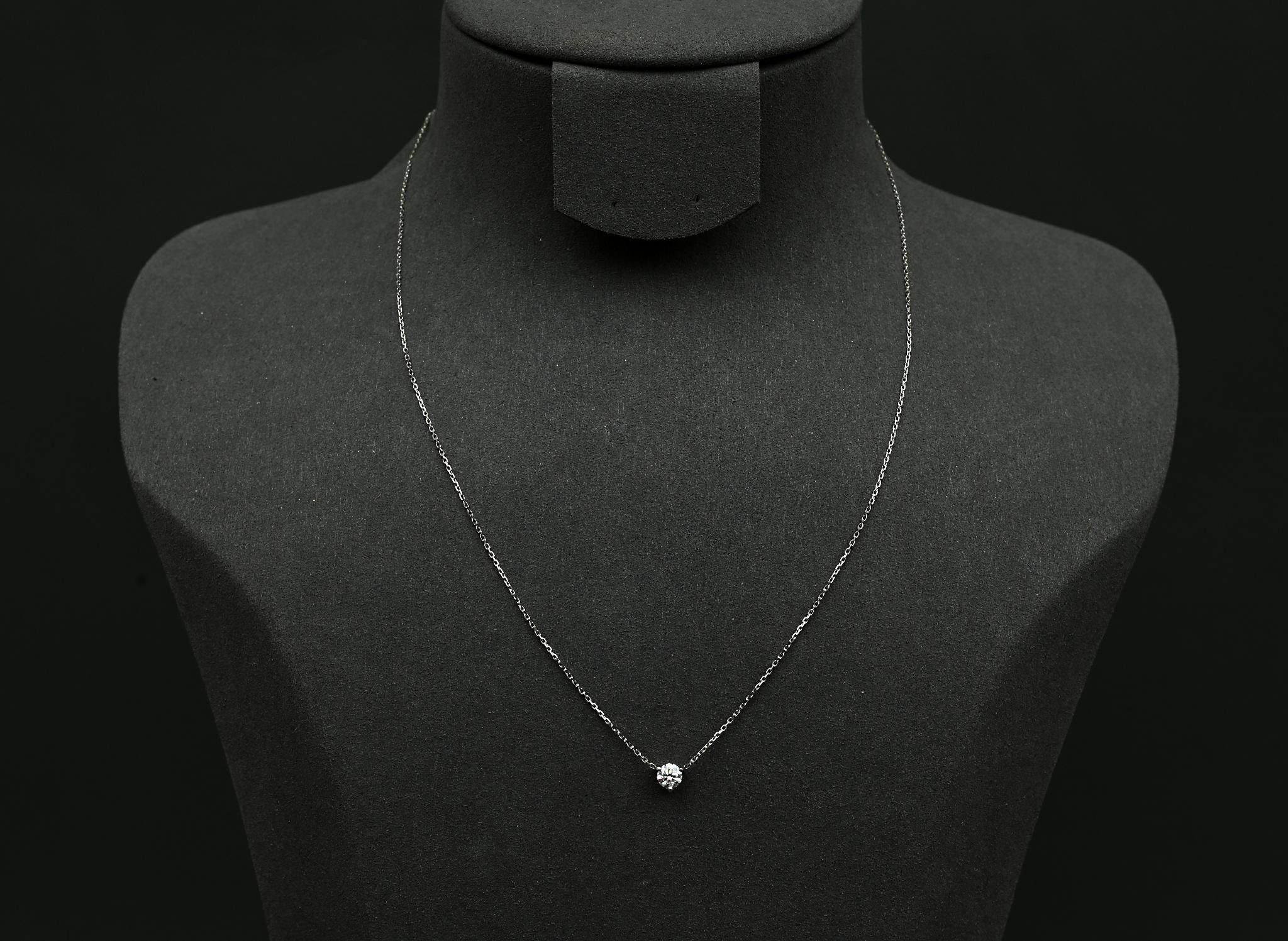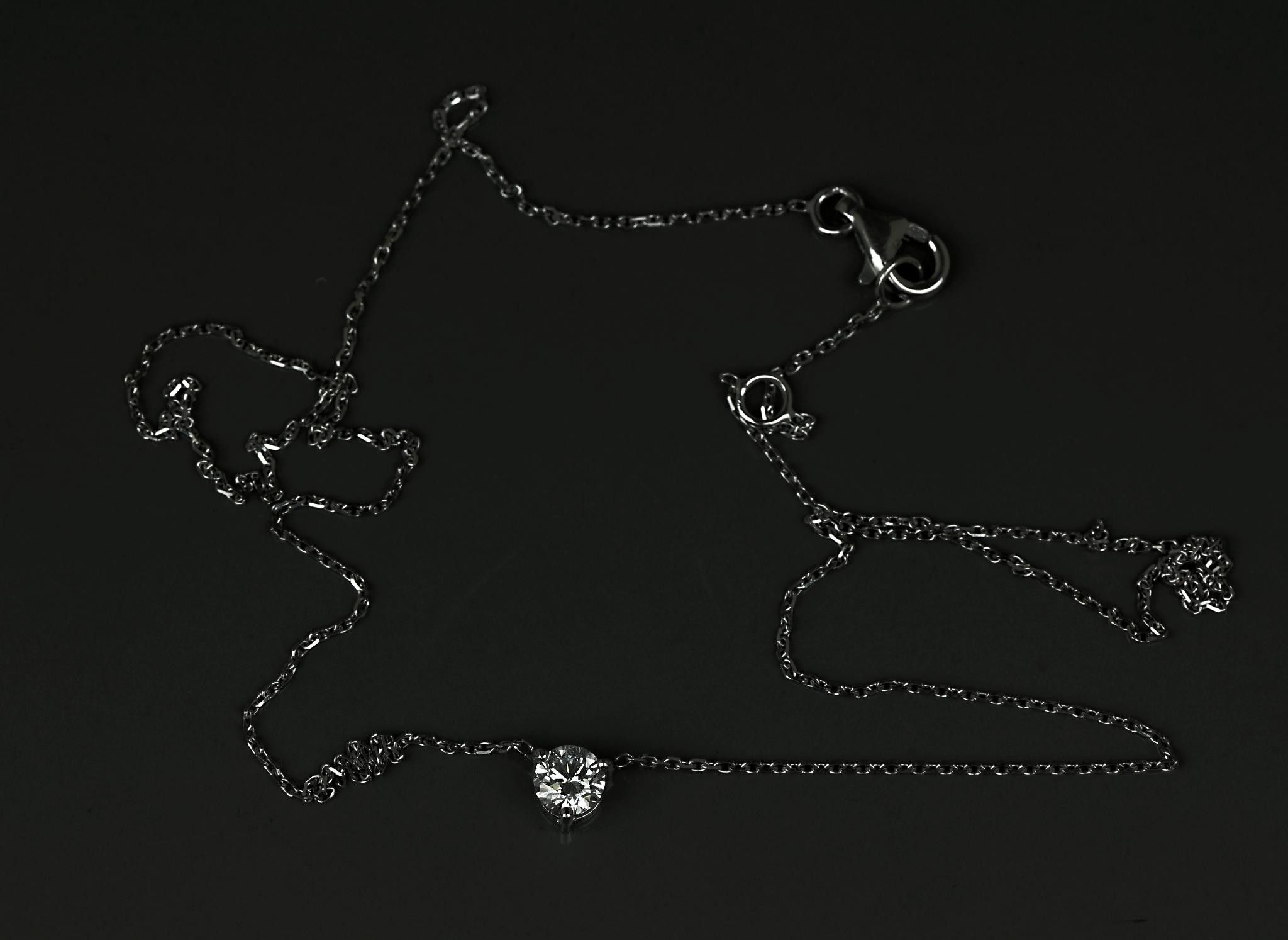Necklace in 18 k white gold set with a 0.35 carat F VS diamond. Adjustable length: 42 cm. Weight: 1.91 g