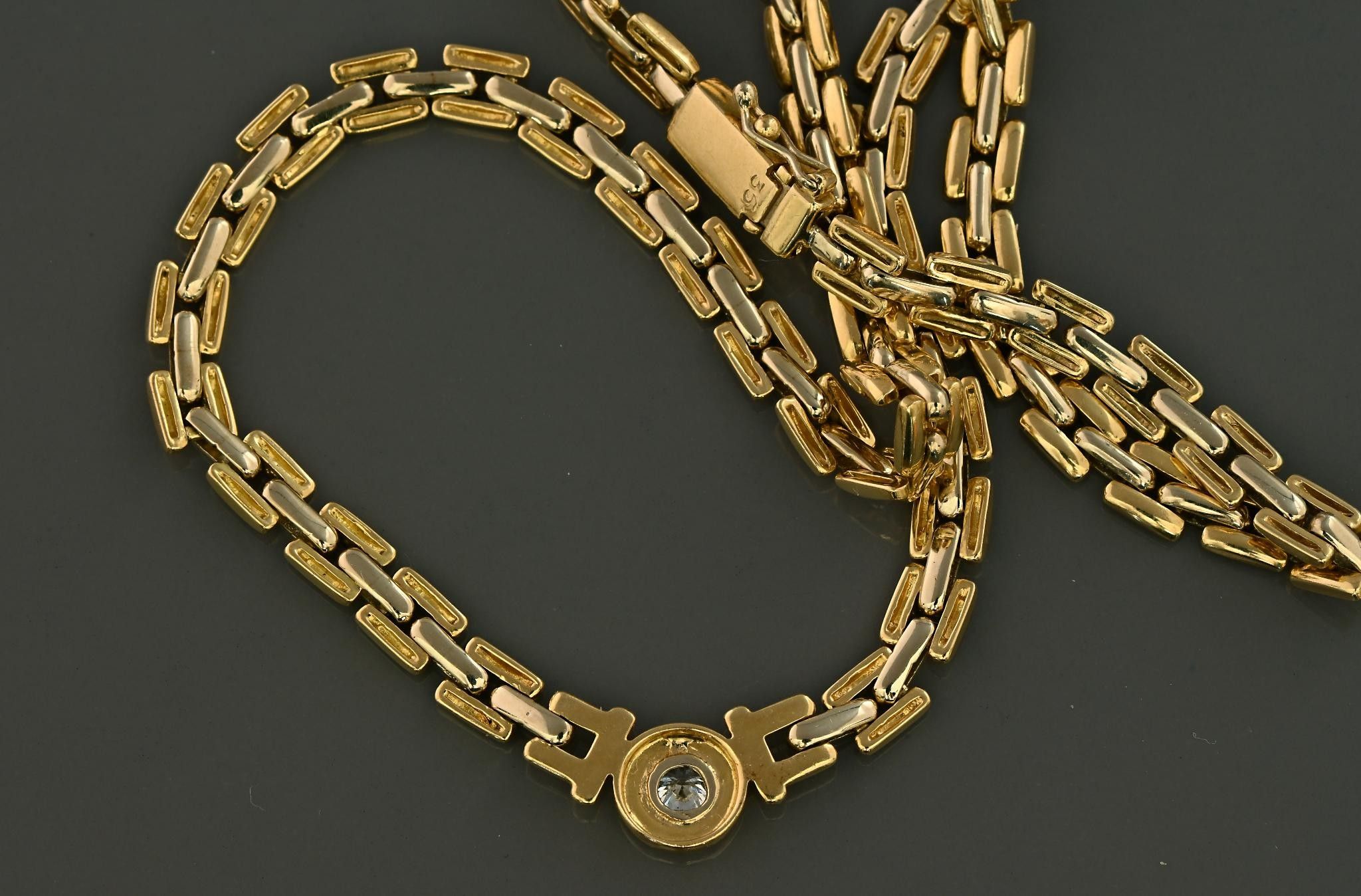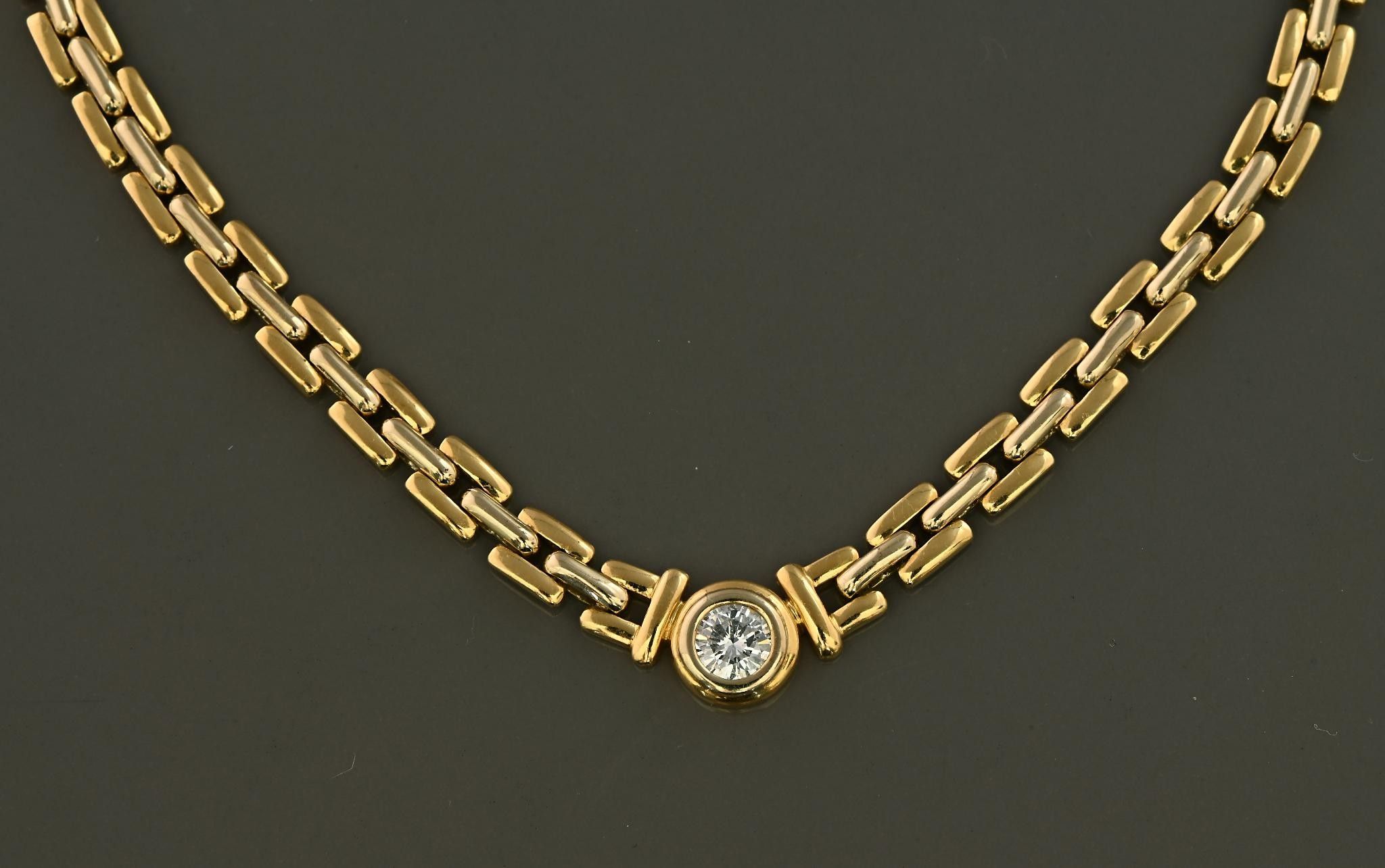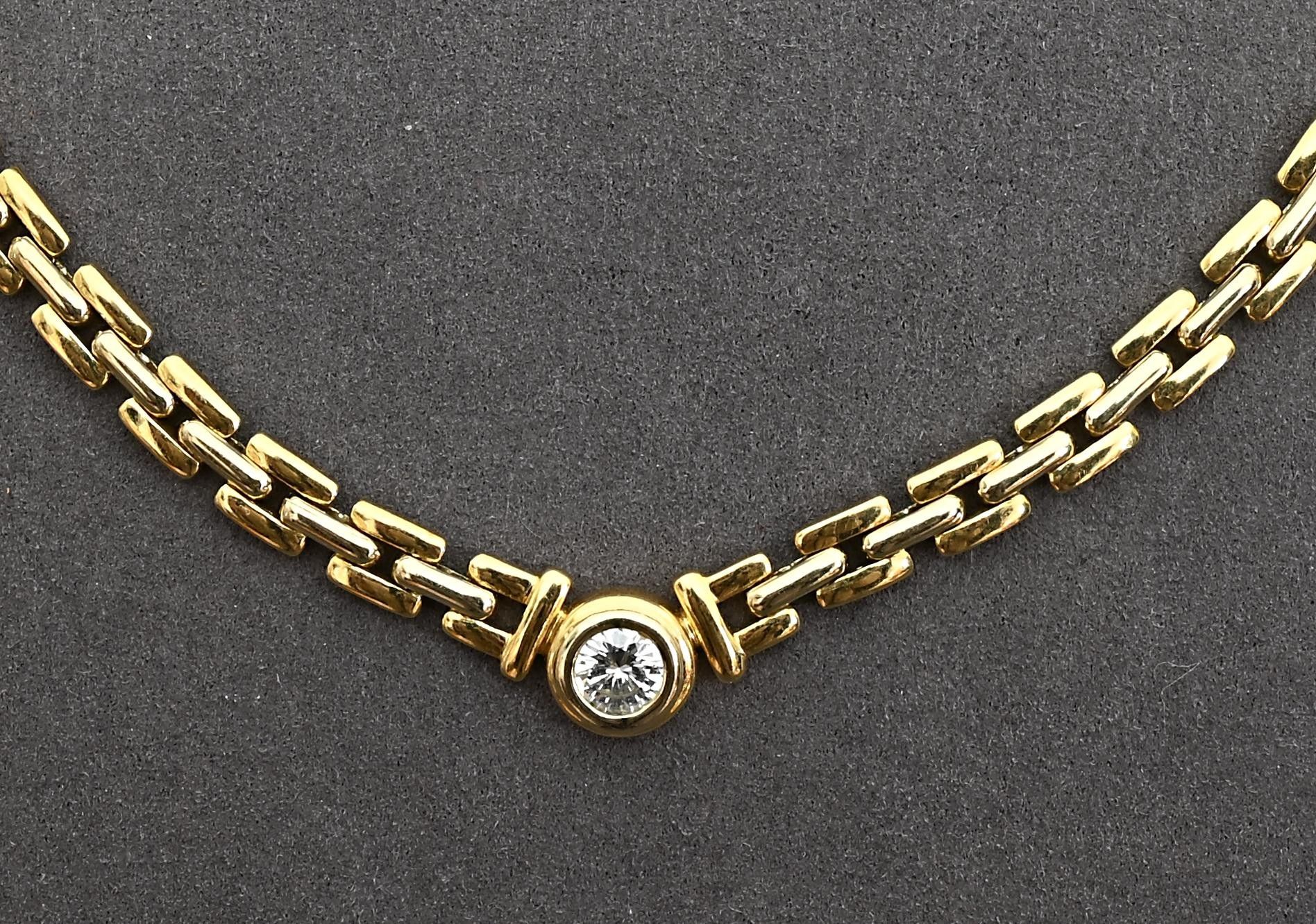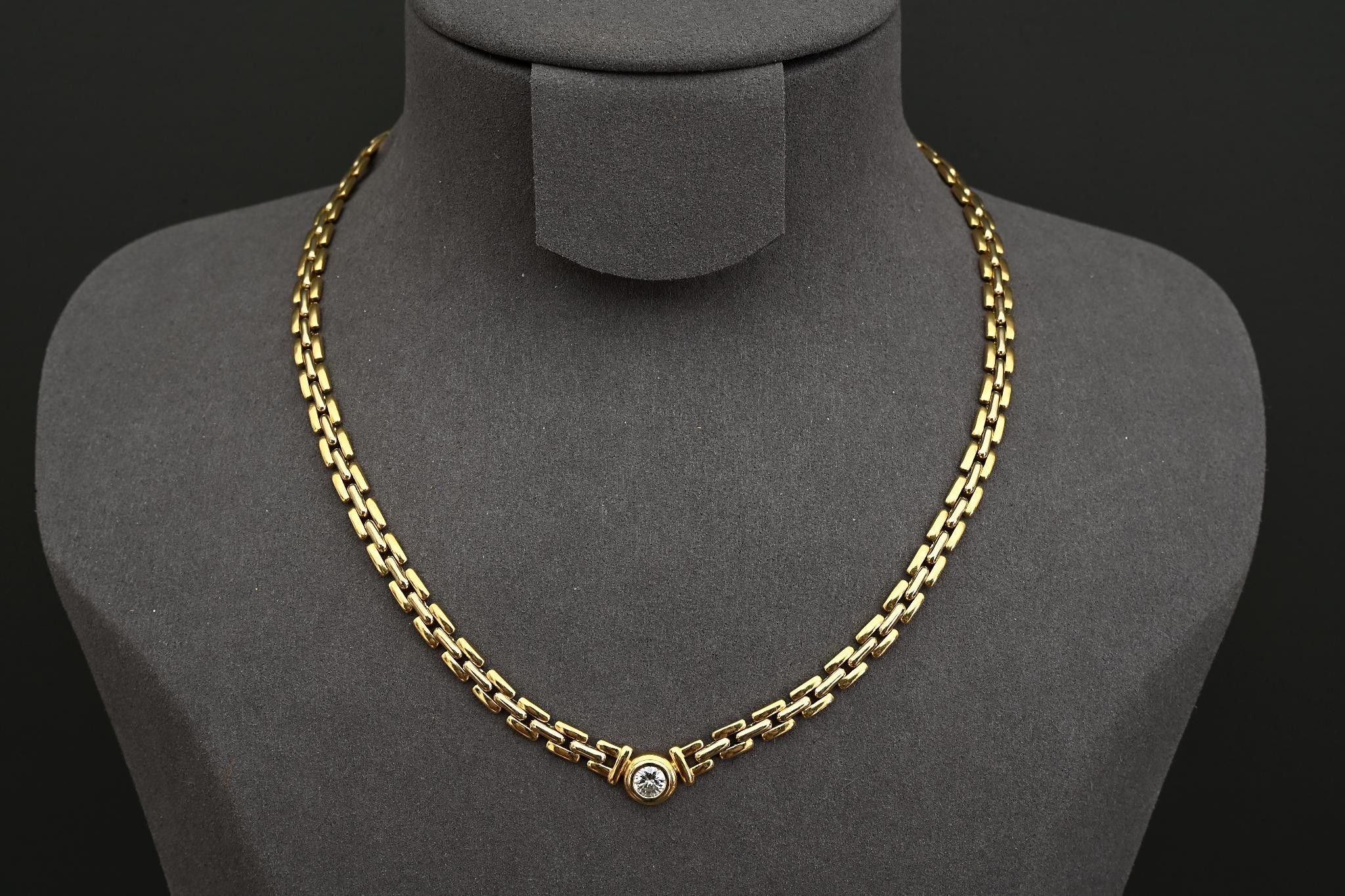 Necklace in 18K yellow gold with a grain-of-rice link set with a 0.35ct brilliant-cut diamond. Length 41 cm. 28.40g.