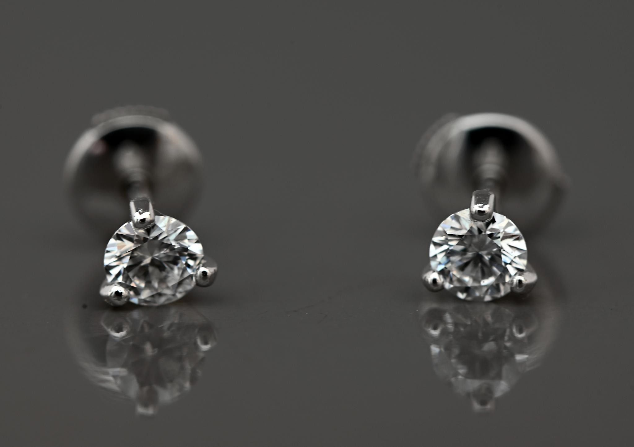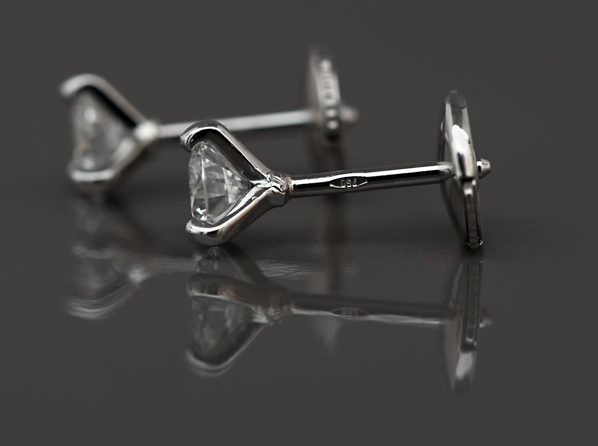 Pair of earrings in 18k white gold set with 3 claws of brilliant-cut diamonds (total 0.60 carats) F VS. Alpa system fasteners.