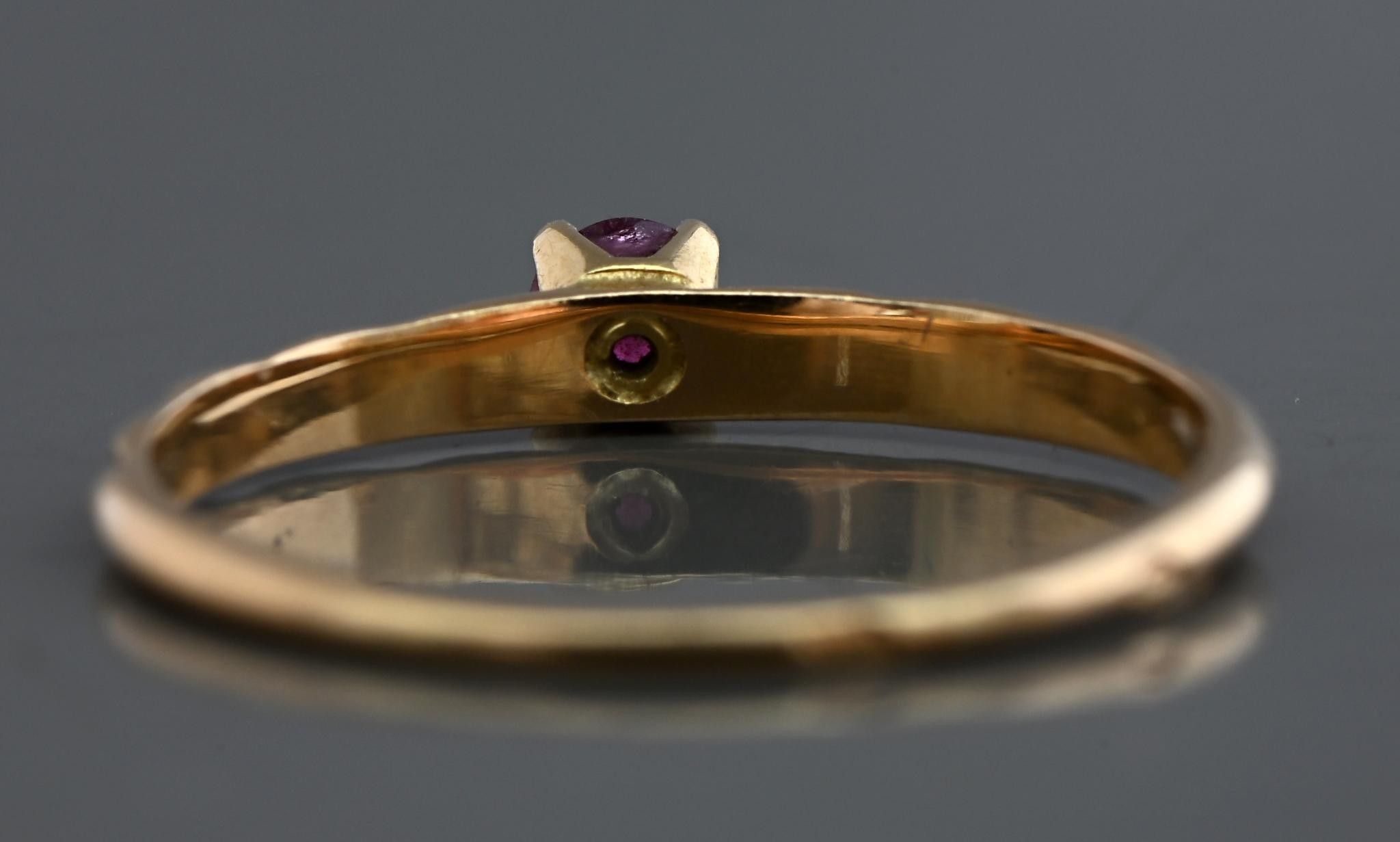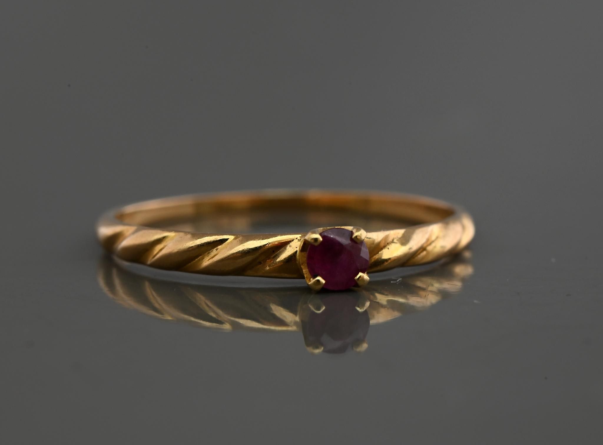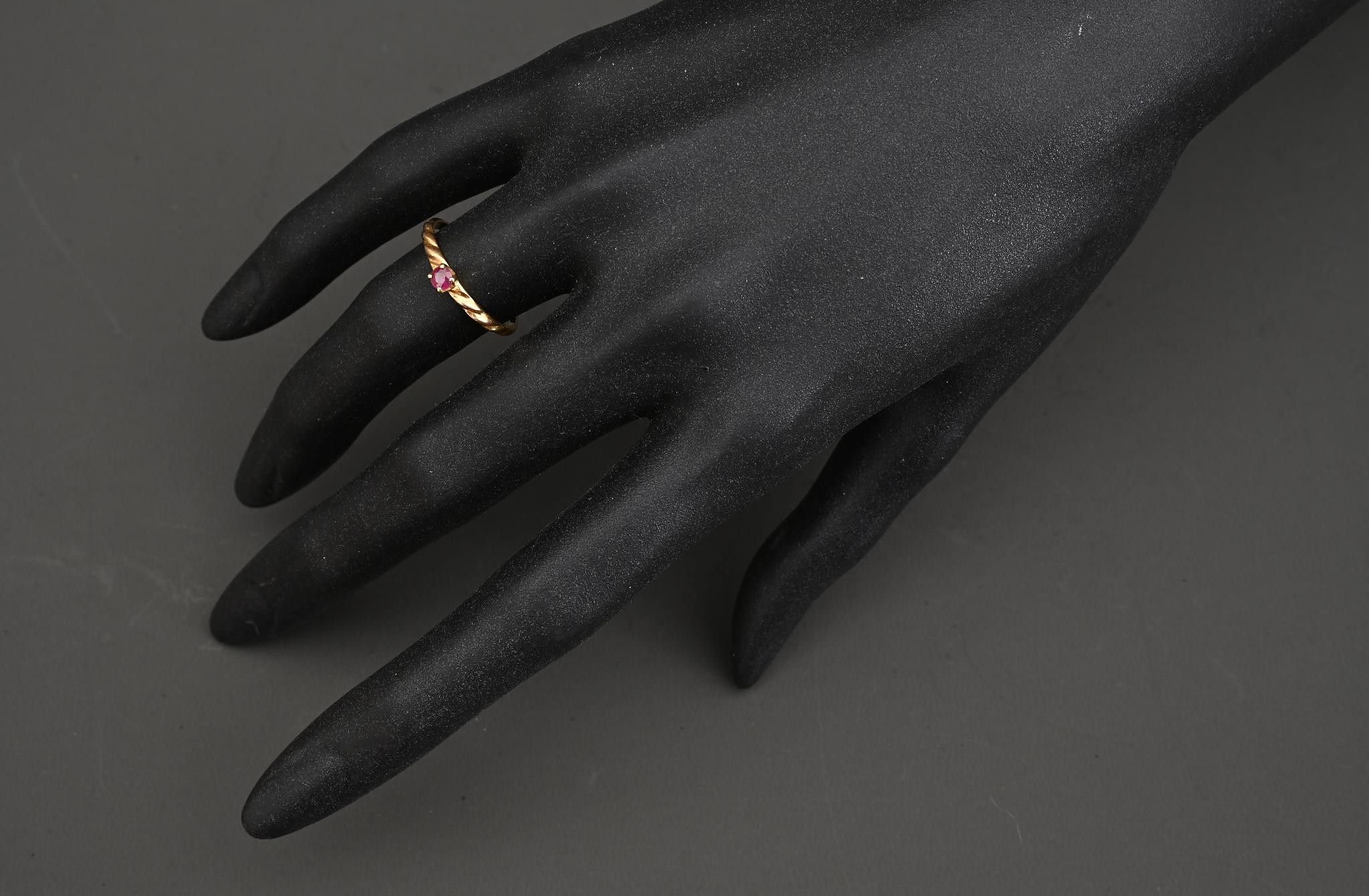 Fine ring in twisted 18k yellow gold set with a pink sapphire. T 51/52. Weight 1.1g.