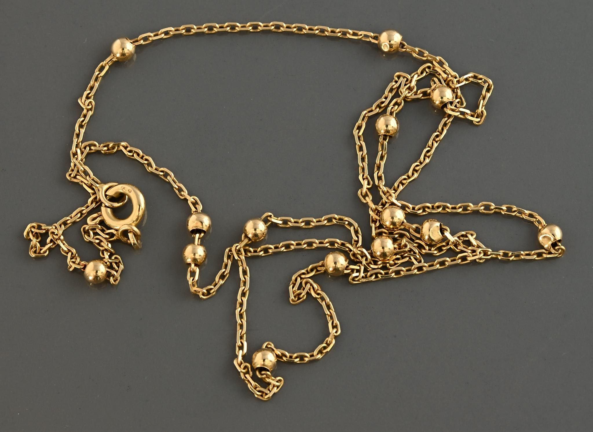 Necklace in 18k yellow gold consisting of a forçat chain embellished with 14 mobile pearls. Length 48 cm. Weight 3.9g.