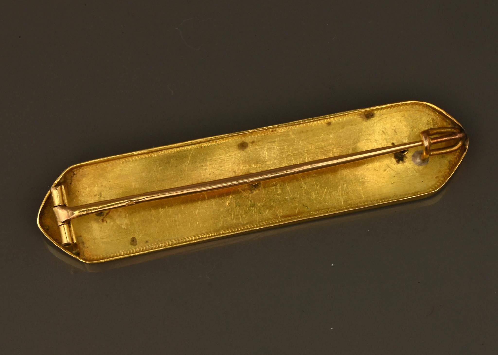 Plate brooch in 18k yellow gold in the form of a studded barrette. 62 x 14 mm. Marked with an eagle's head. 7.02g.