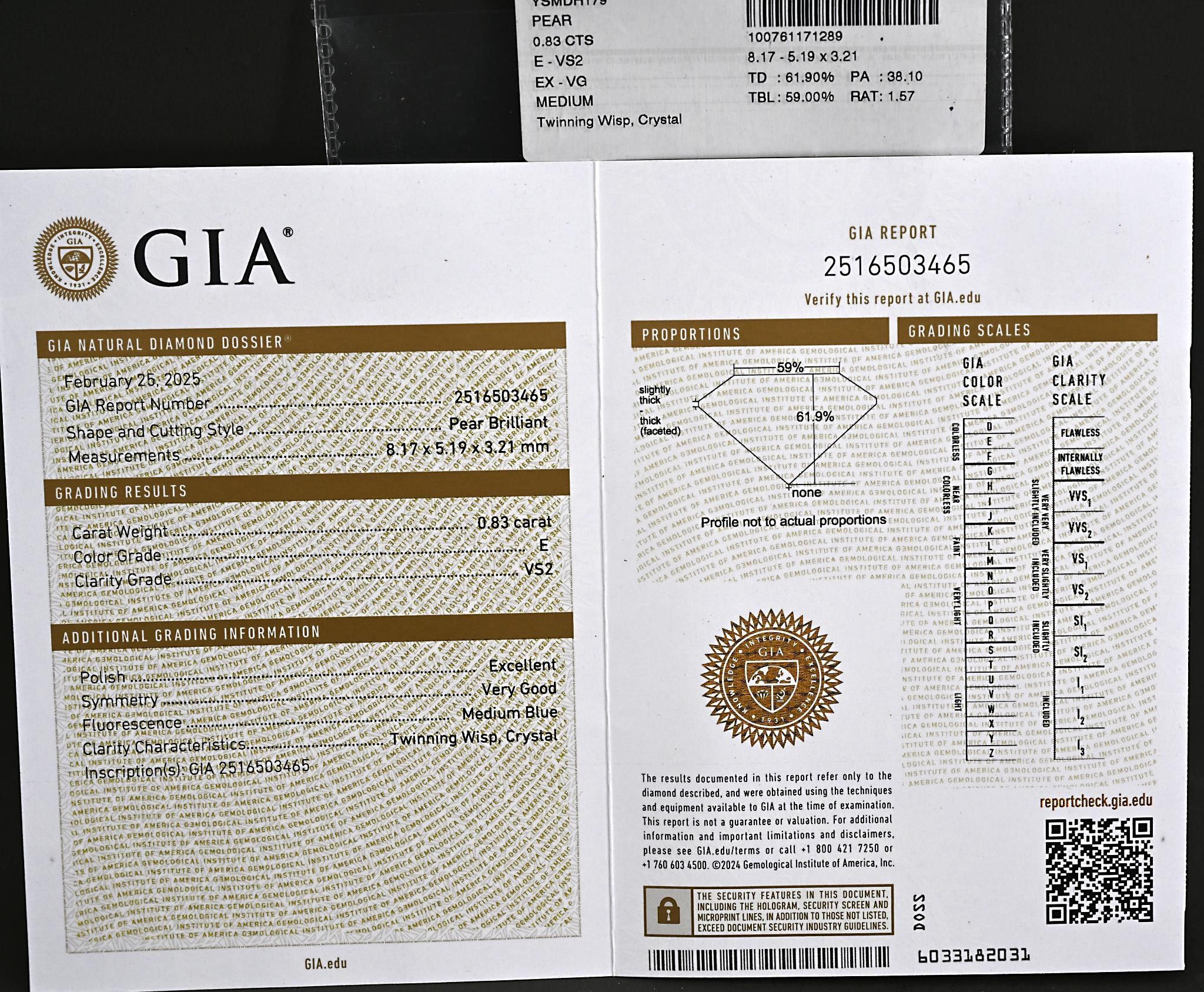 Necklace comprising a pear-shaped diamond mounted in 18k white gold with its chain. 0.83ct, E-VS2 (GIA certified) 2.4g.