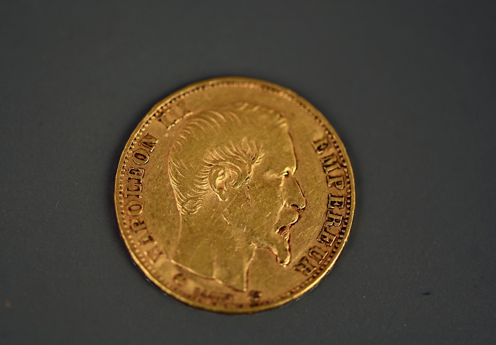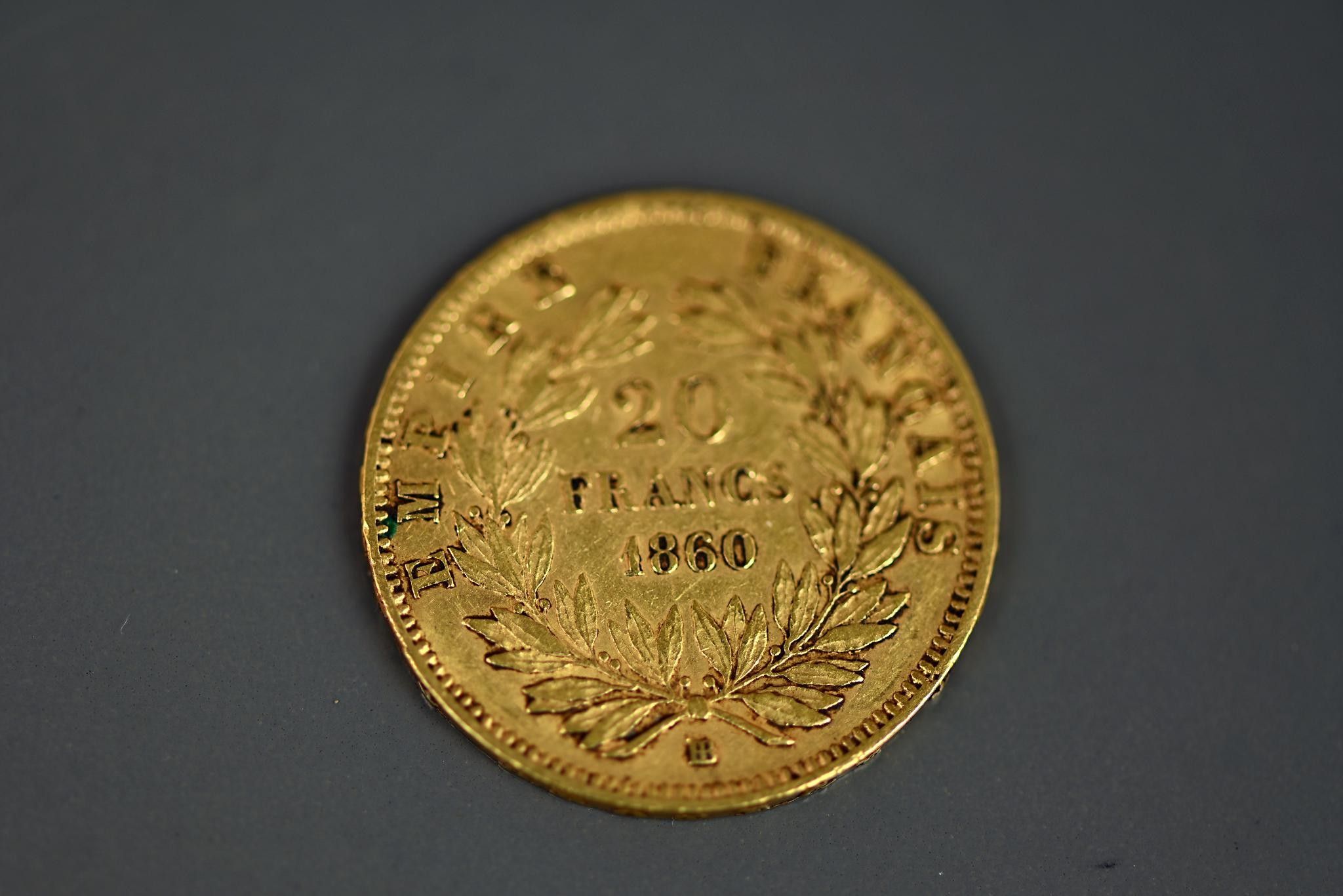 20F gold Napoleon III bare head coin, 1860 BB. Engraver: BARRE. 6,40g.