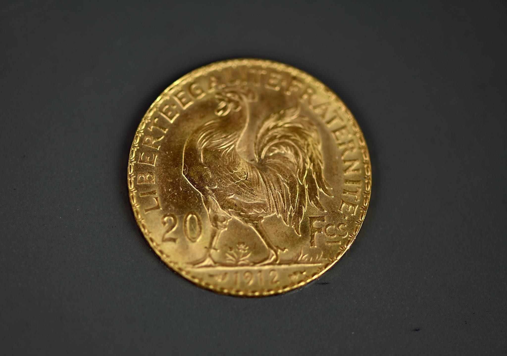 20F gold Marianne coin, 1912. Engraver: CHAPLAIN. 6,46g.