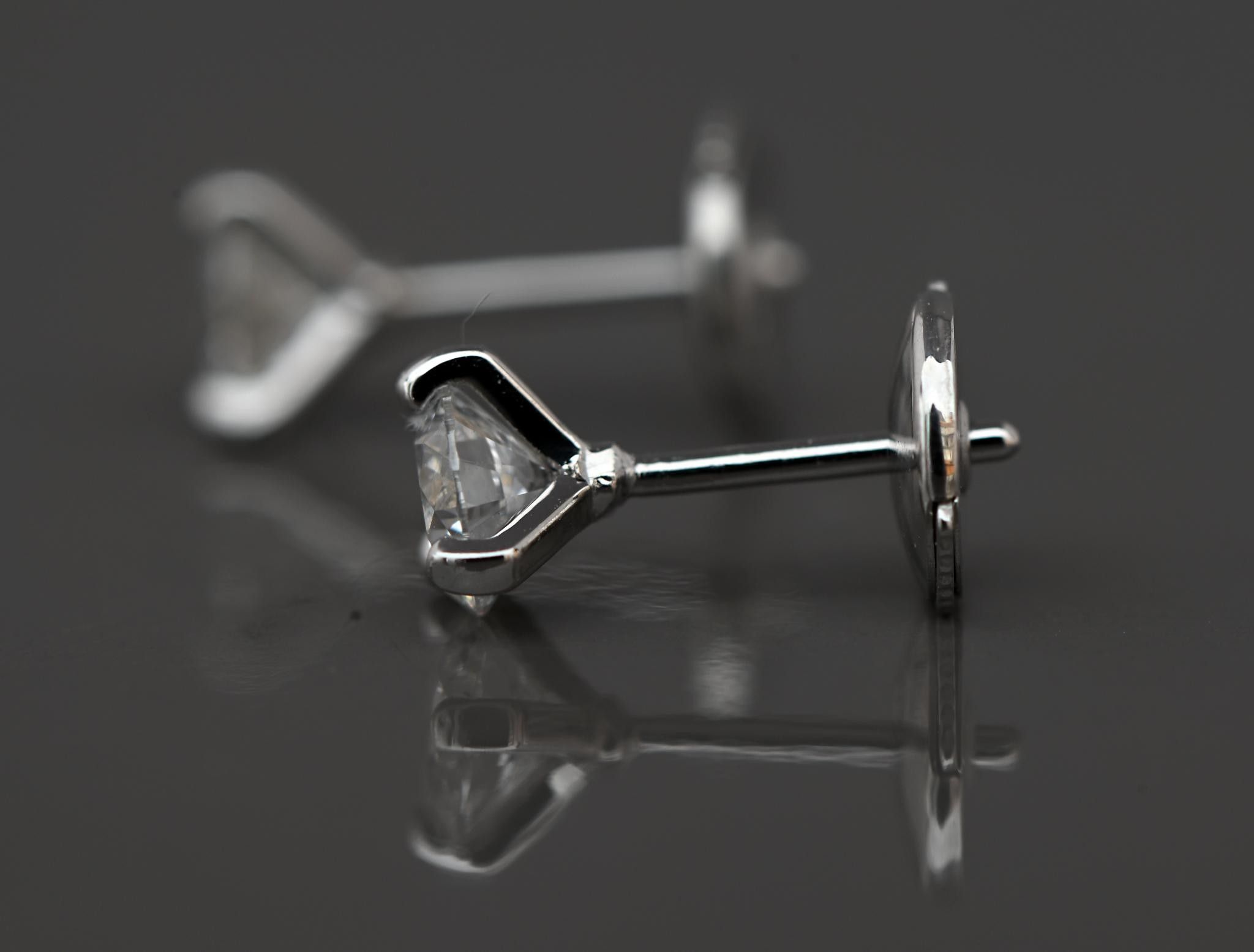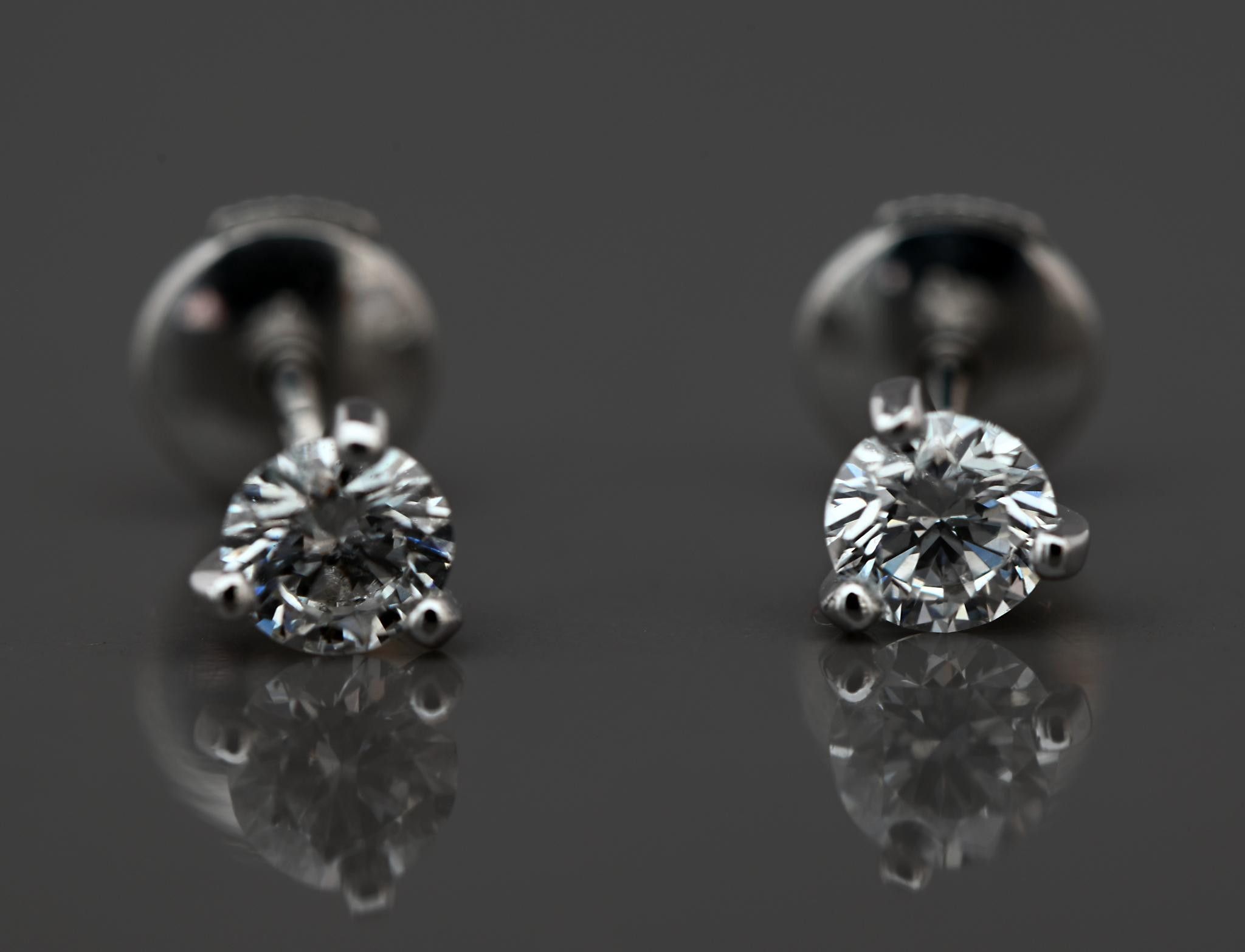 Pair of earrings in 18k white gold set with 3 claws of brilliant-cut diamonds (total 0.70 carats) F VS. Alpa system fasteners.