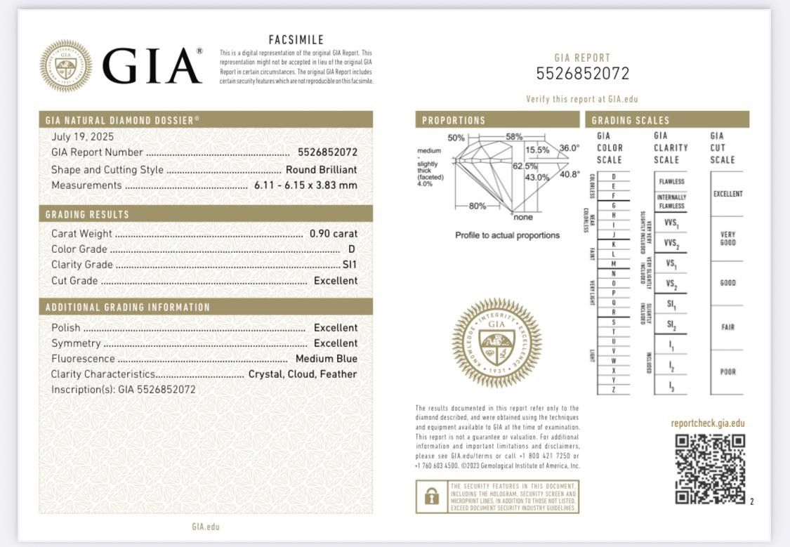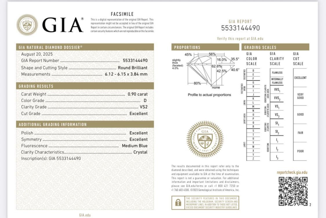 Pair of 18k white gold earrings set with diamonds totalling 1.80 carats GIA certified (0.90 carats each) in D colour, VS2 and SI1 clarity. Triple EX . Fluo Med .