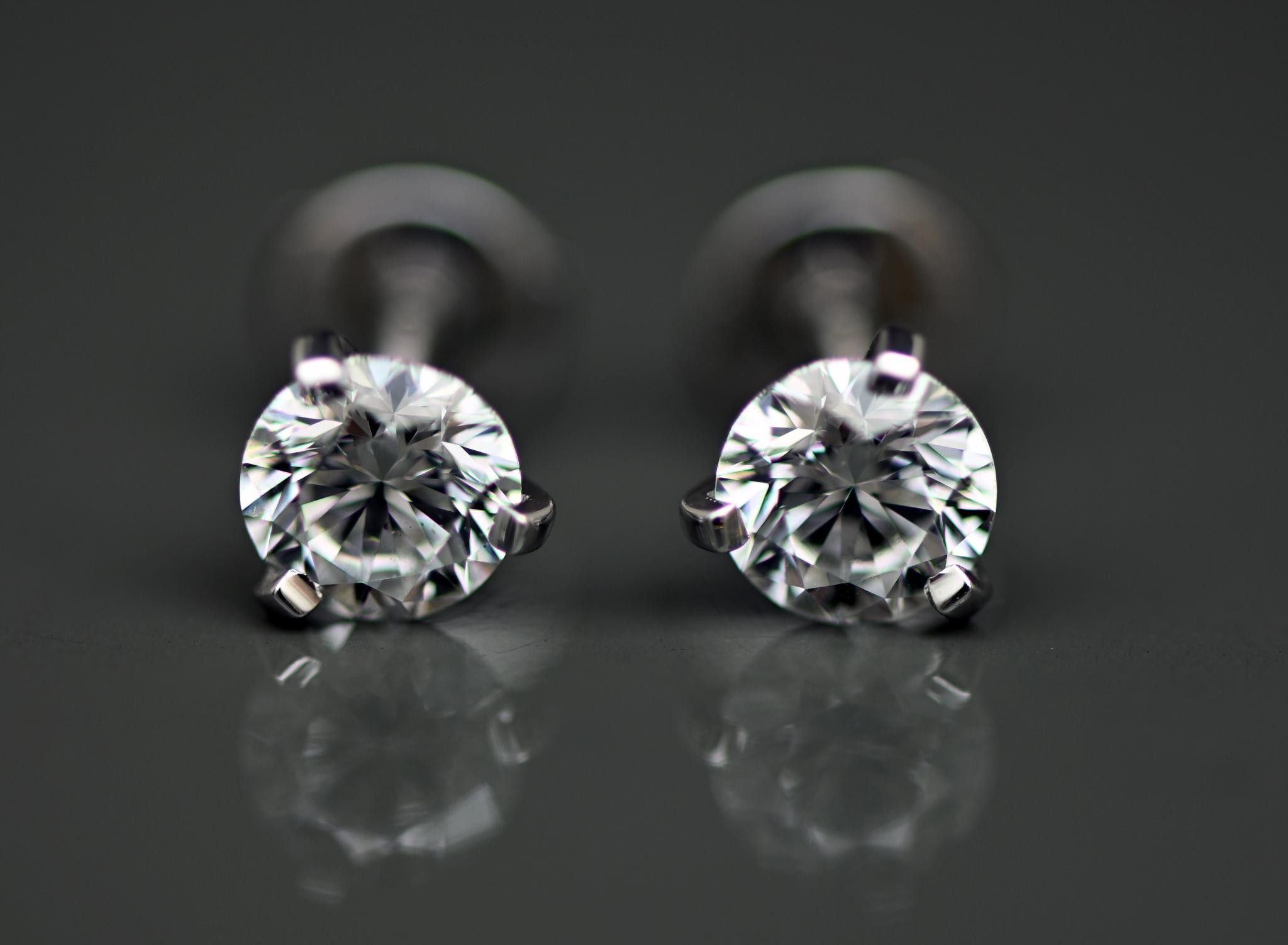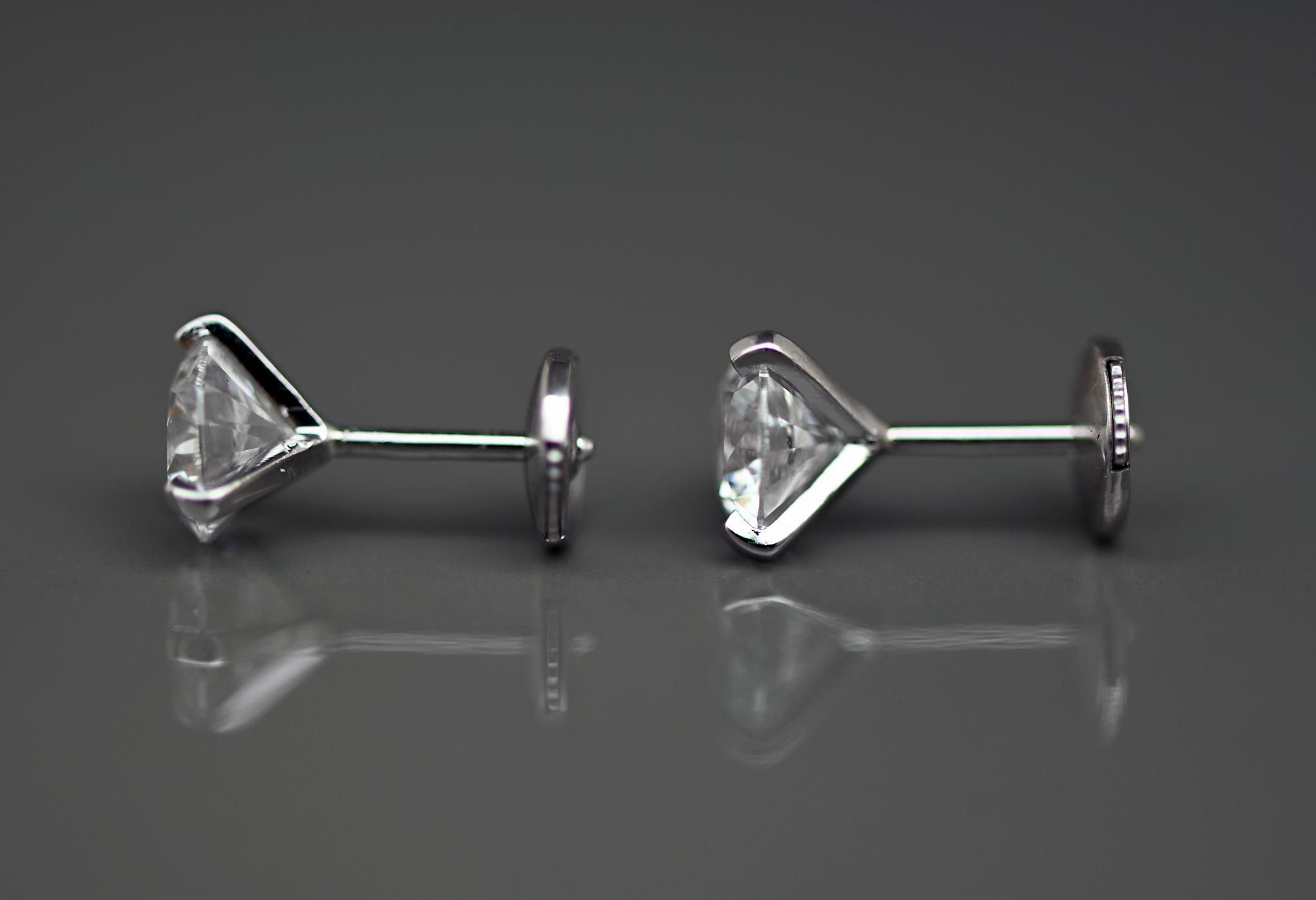 Premium Pair of 18k white gold earrings set with diamonds totalling …