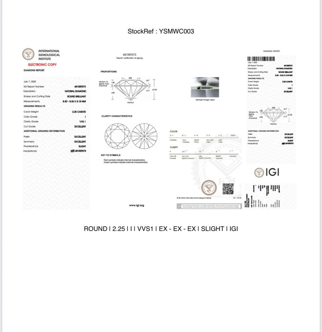 Premium 2.25 carat IGI-certified diamond (colour I VVS1) mounted in …