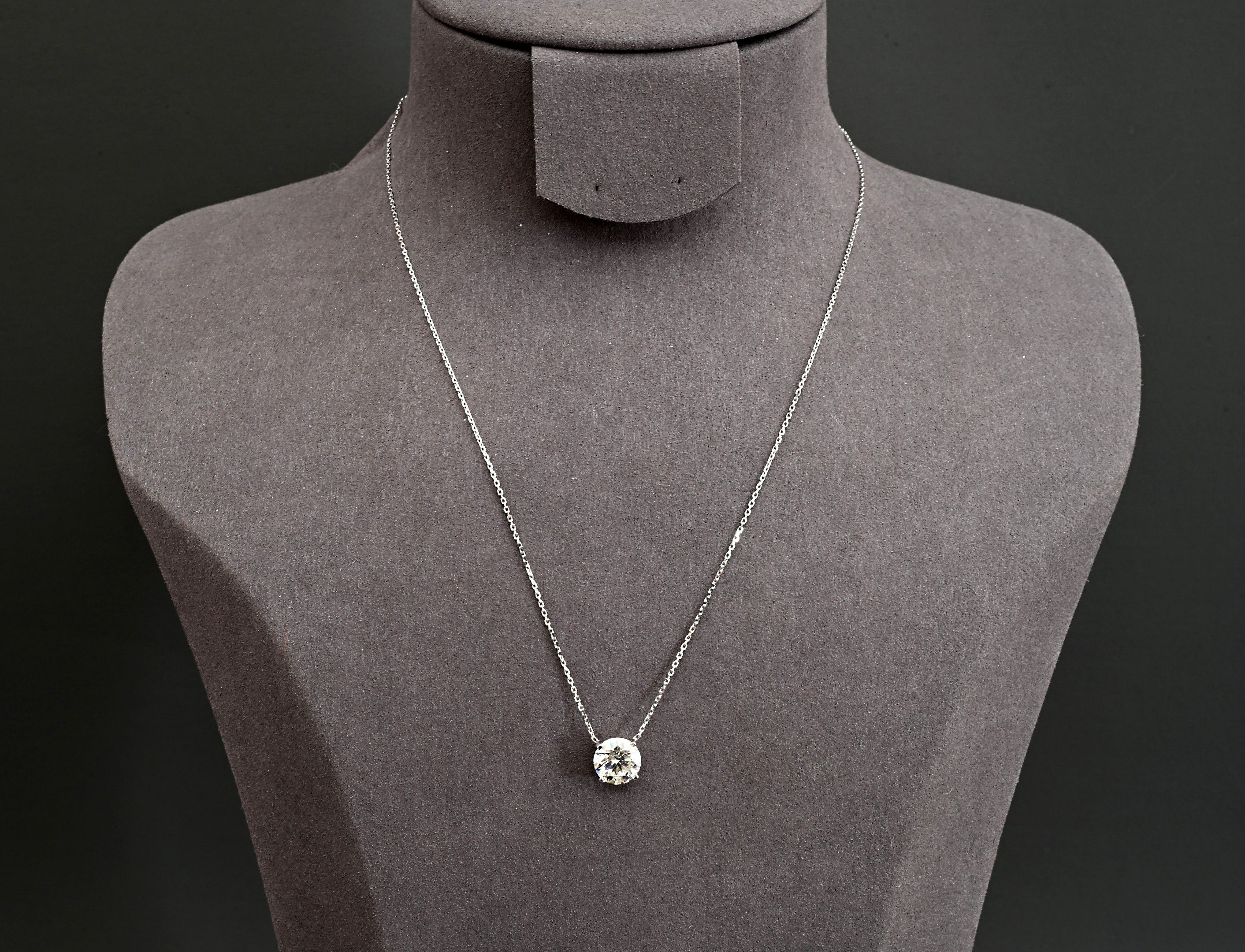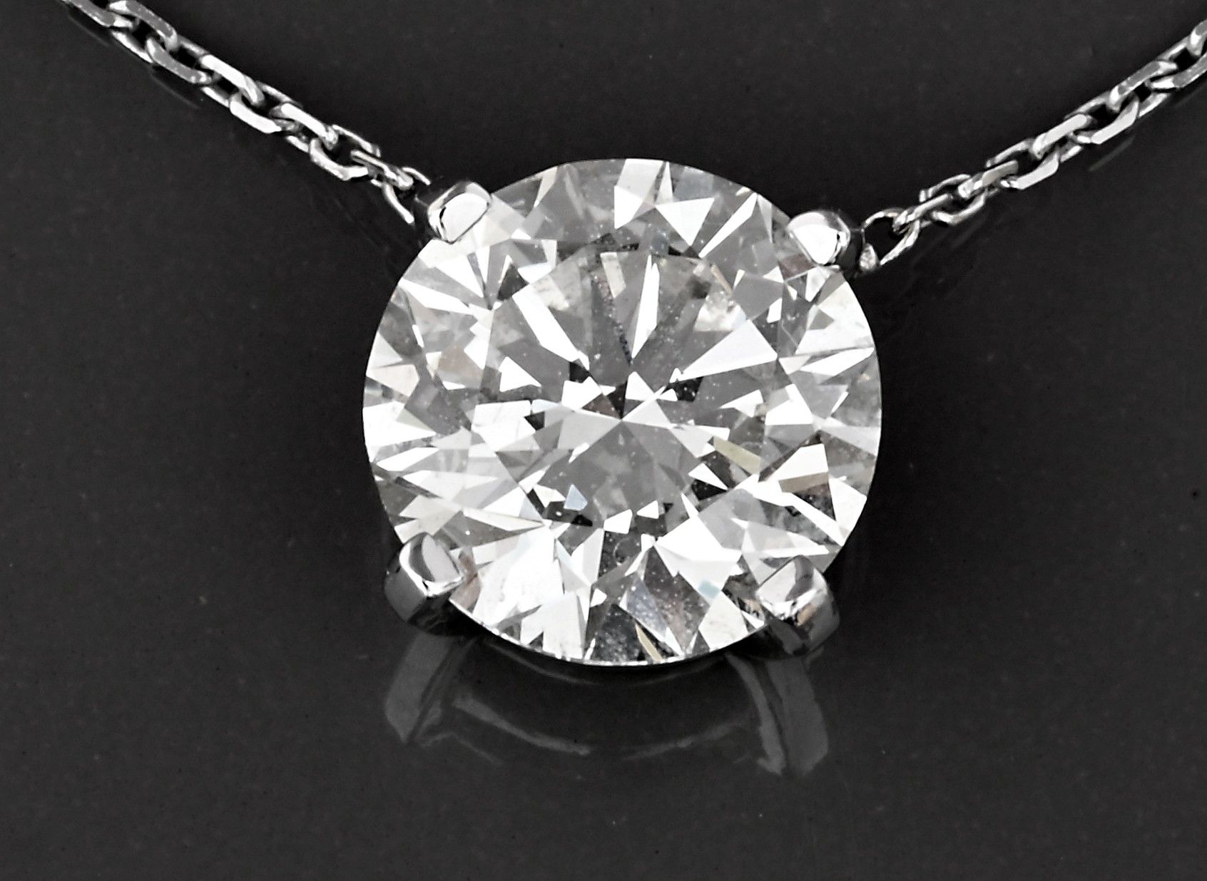 2.25 carat IGI-certified diamond (colour I VVS1) mounted in 18k white gold as a pendant, with its chain. L 38-40-42 cm. 2.40 gr