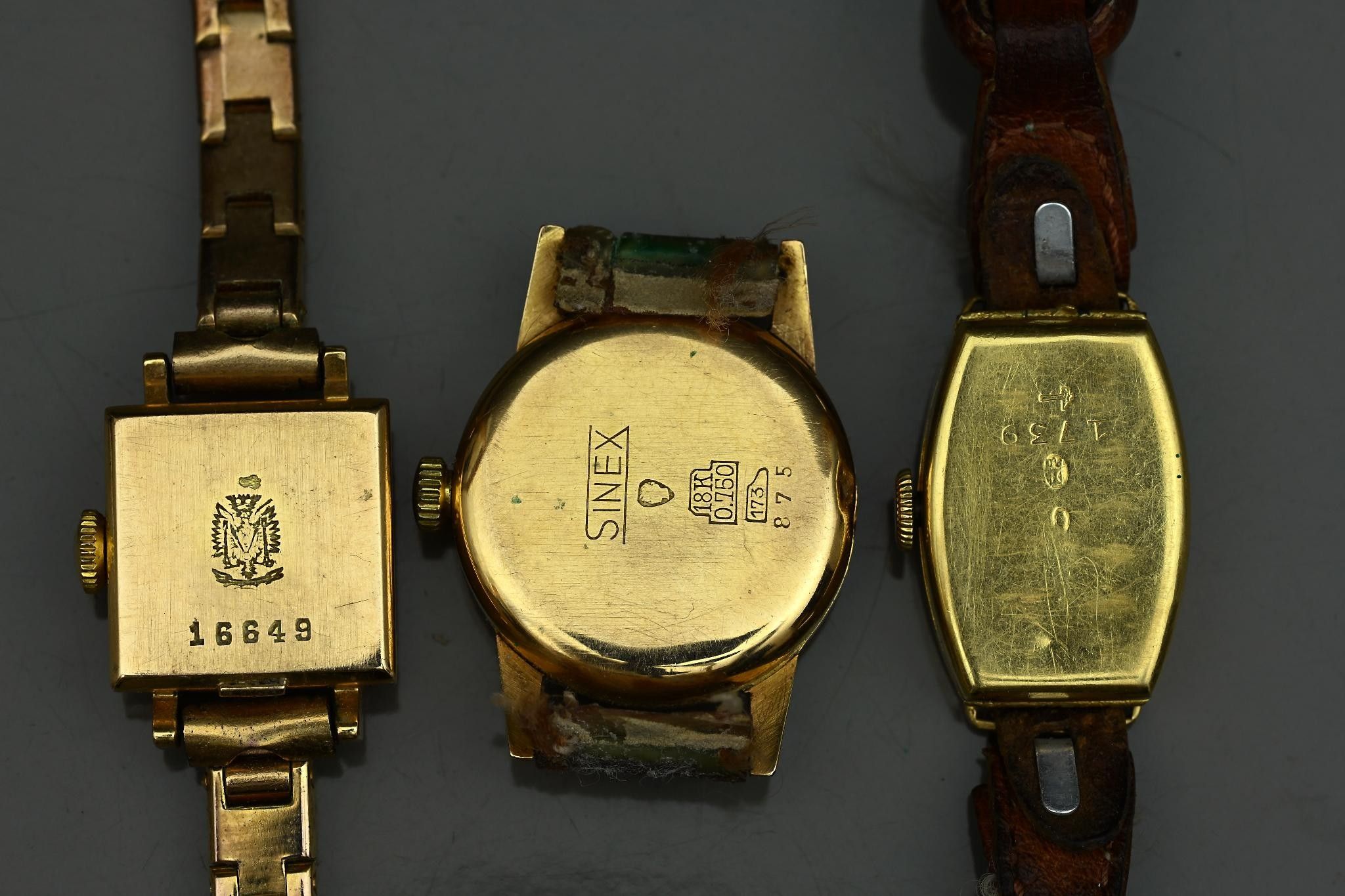 Lot of three ladies' watches in 18k gold.