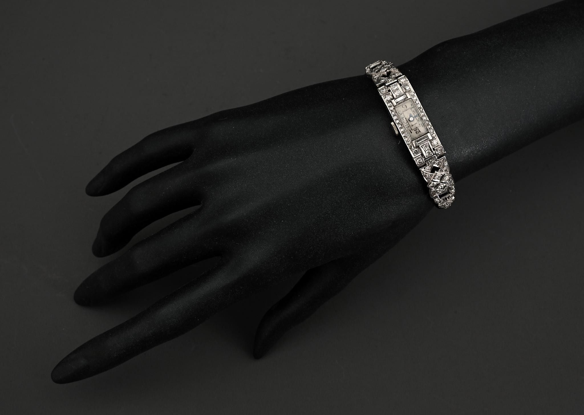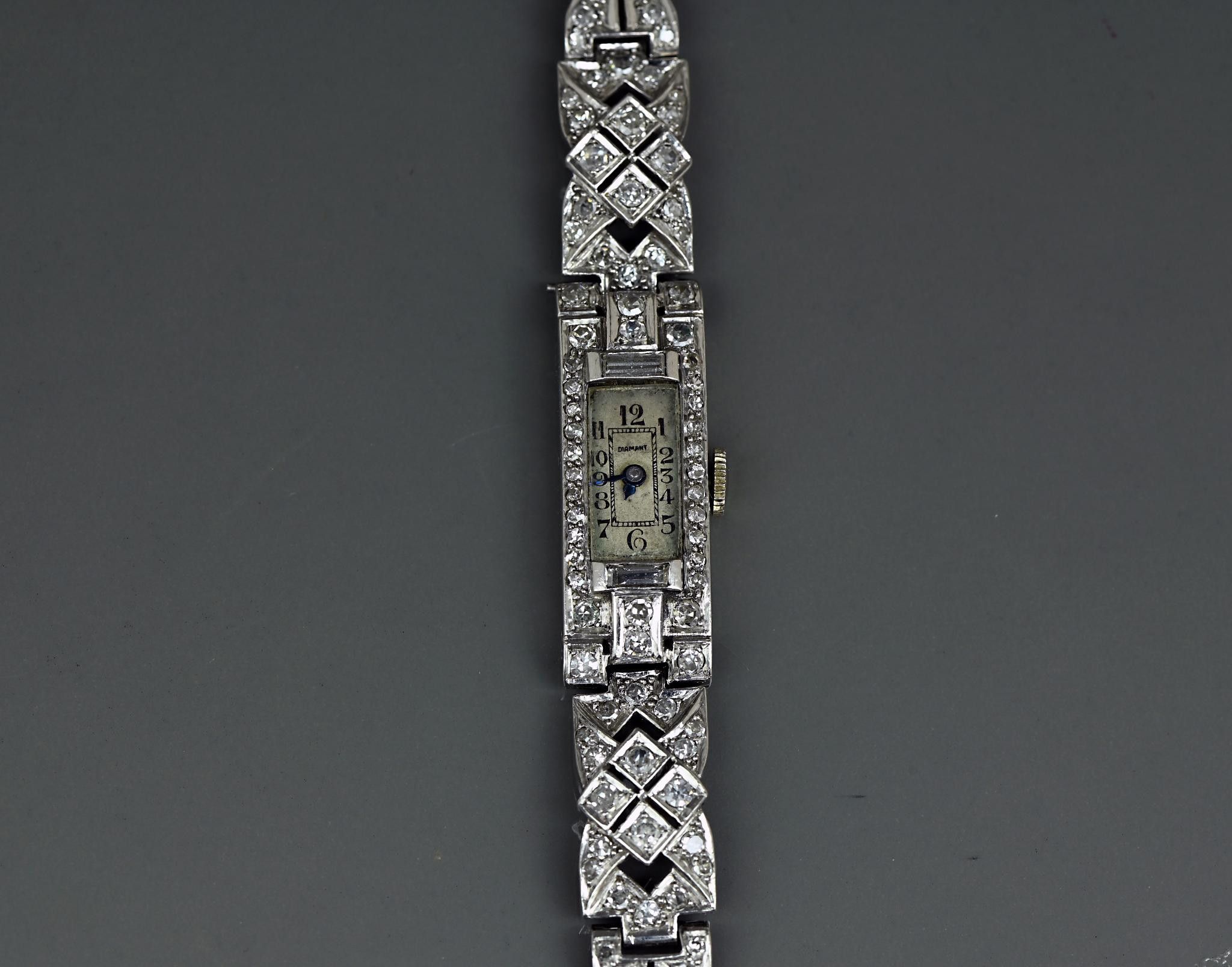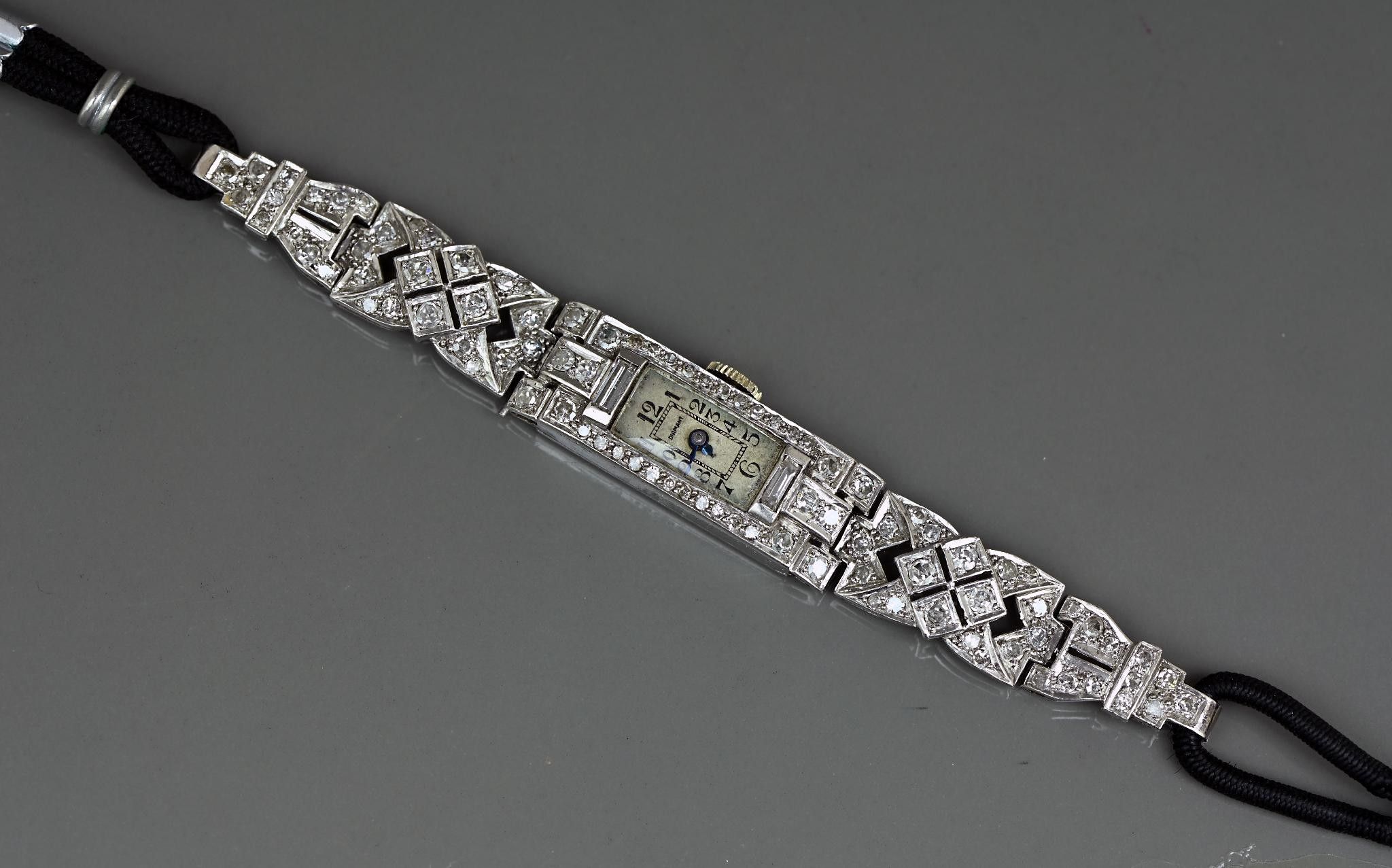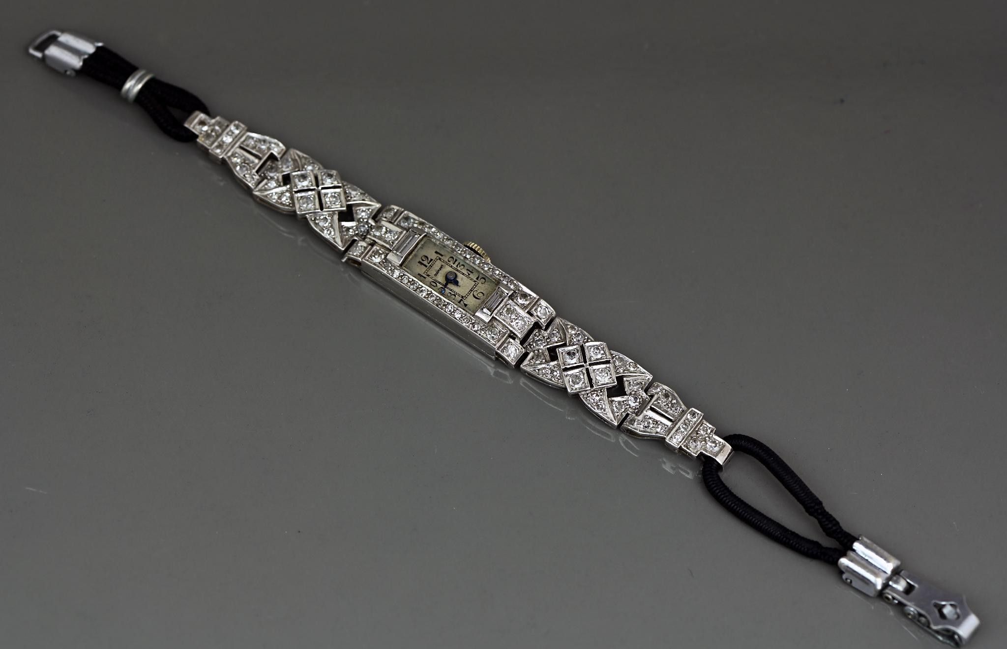Art-Deco ladies' watch in platinum set with 8/8 diamonds and…