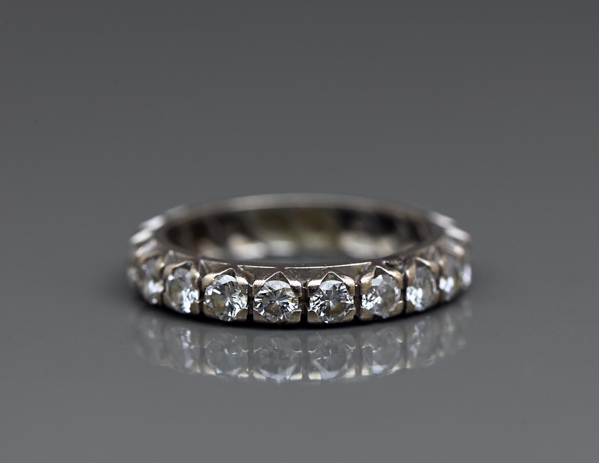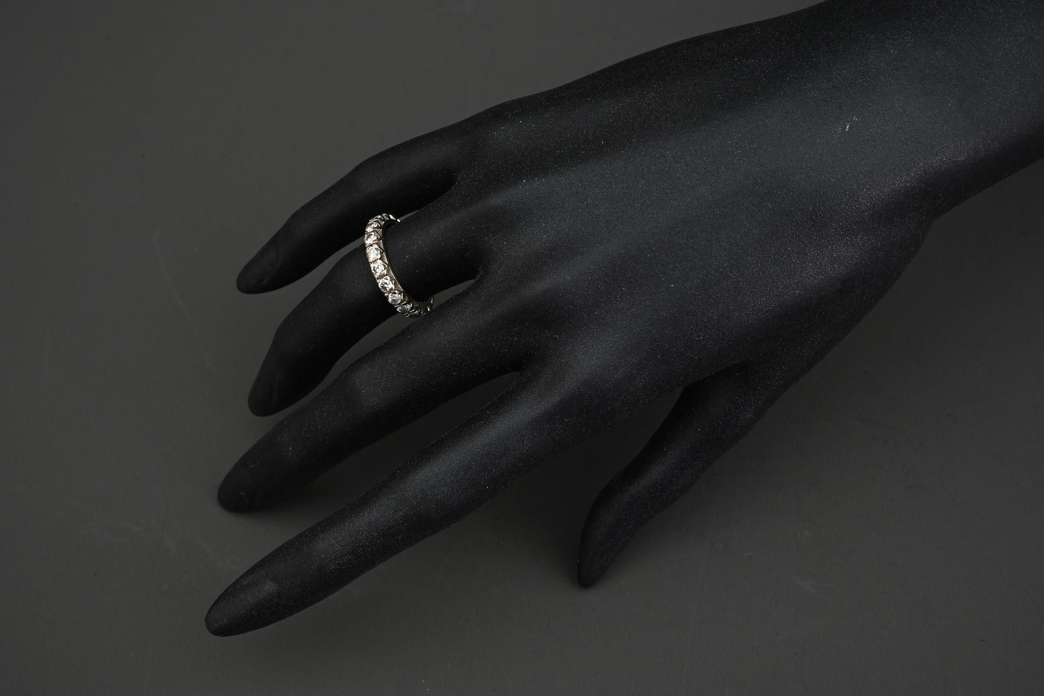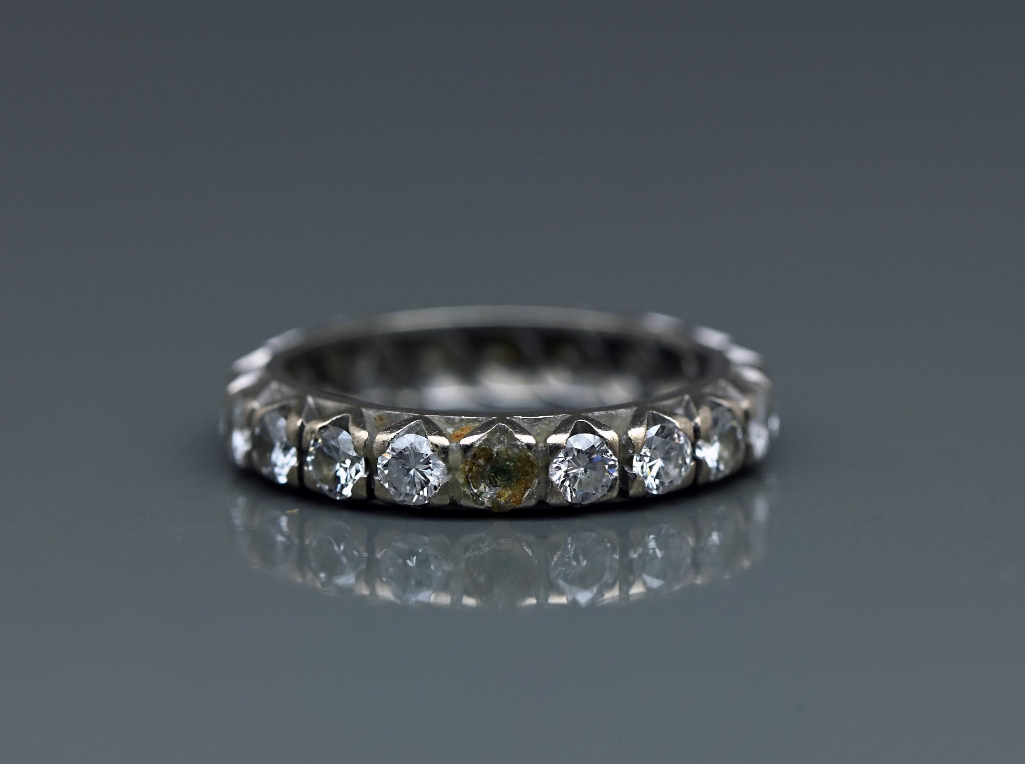 Wedding band in 18k white gold set with diamonds (approx. 1.9ct, missing 1) Size 51. Gross weight 3.4g.