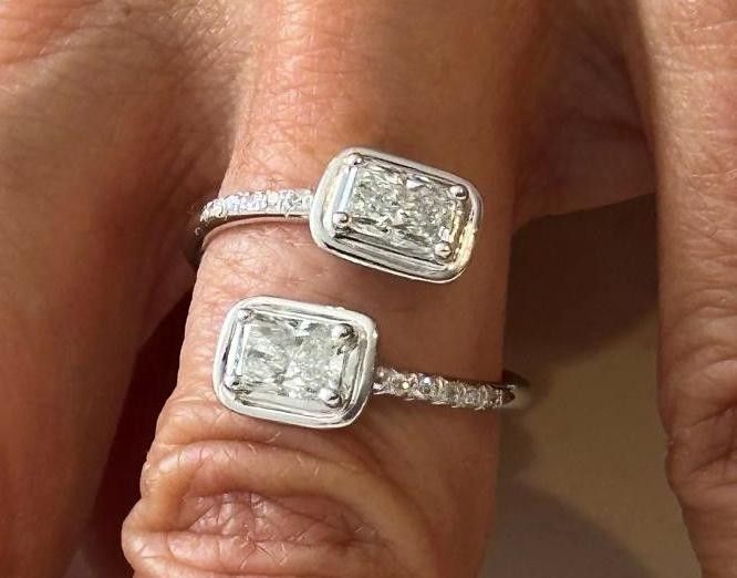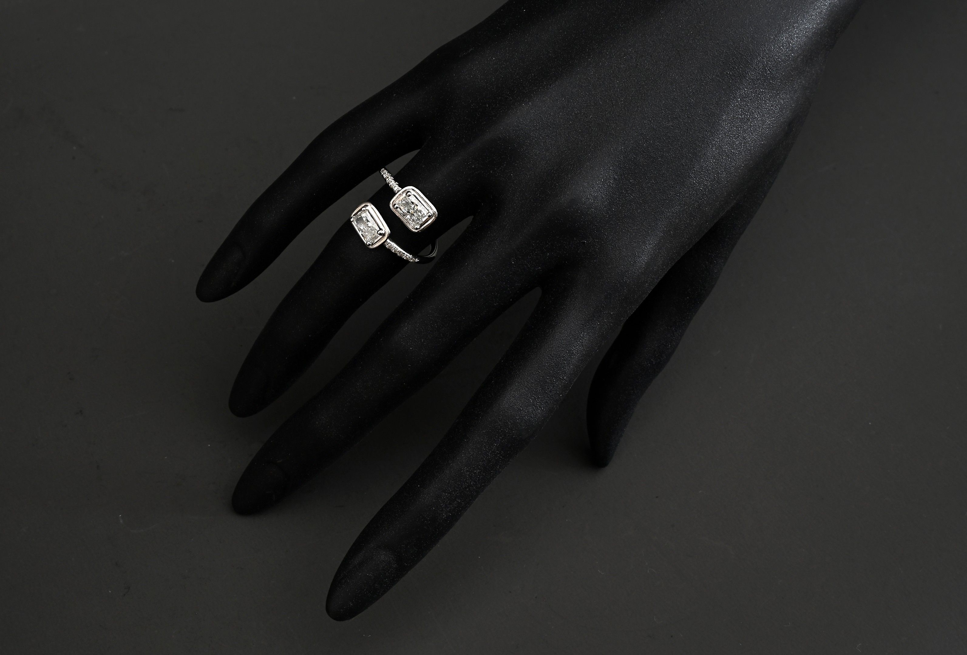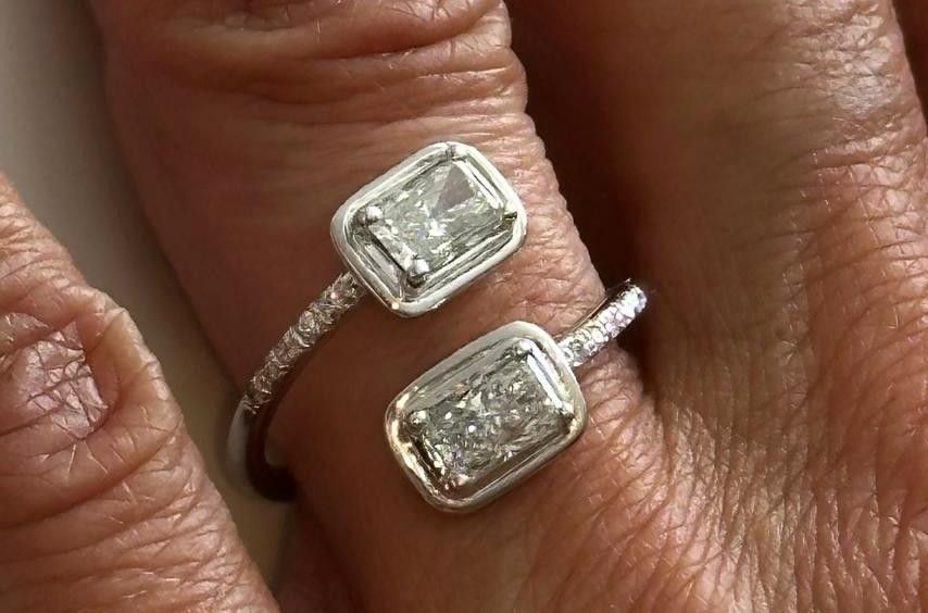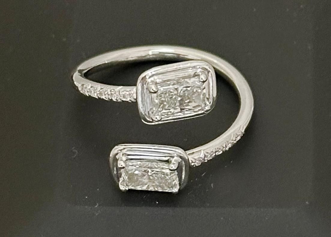 Premium toi et moi ring in white gold set with radiant-cut diamonds …