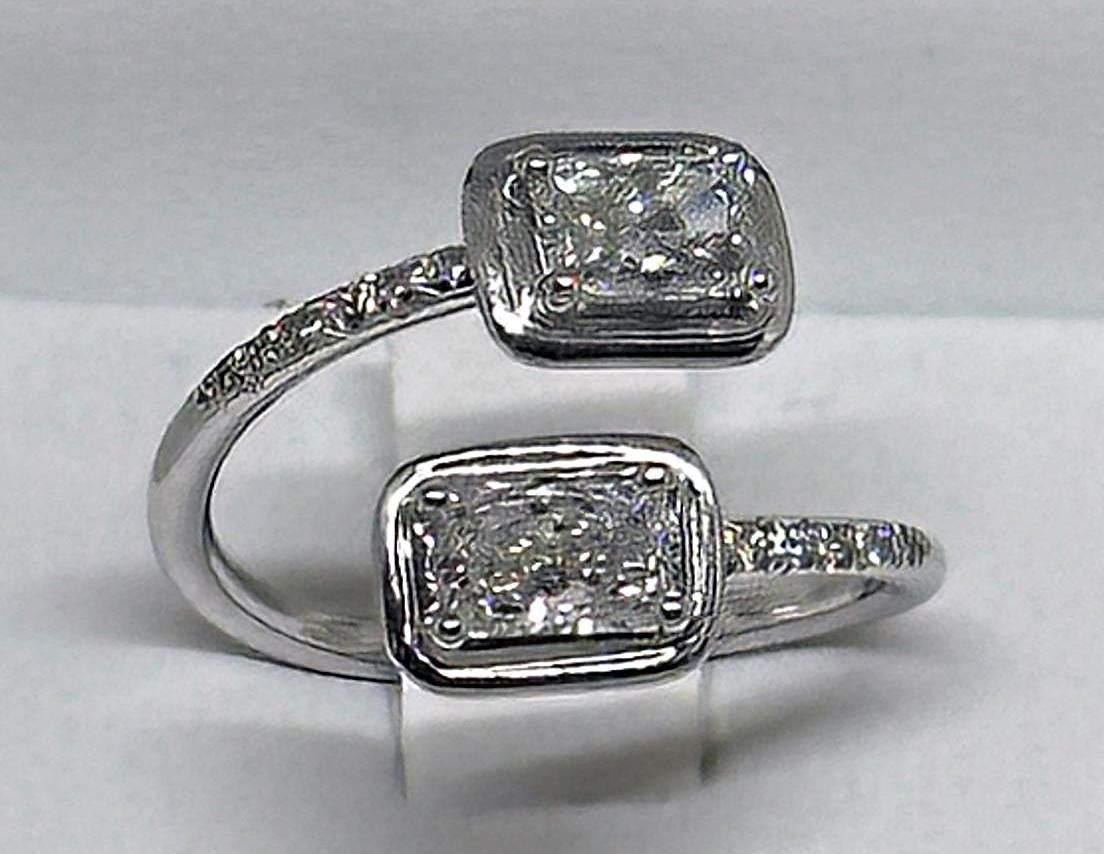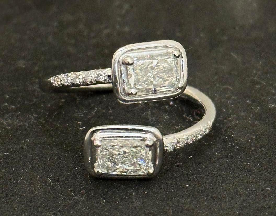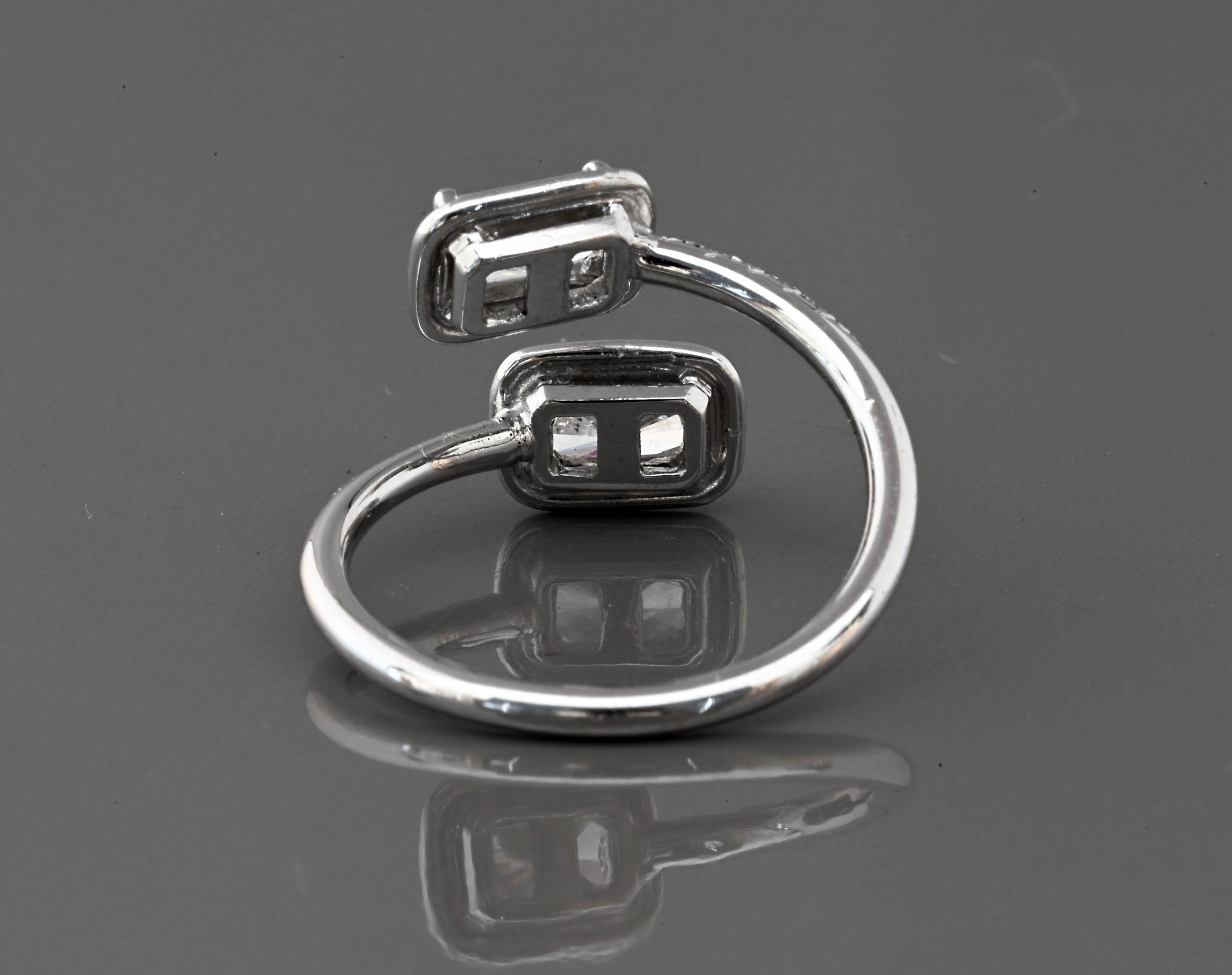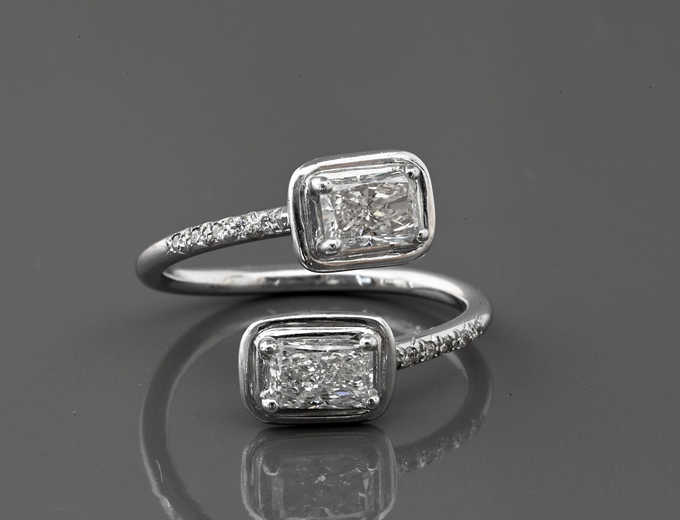 toi et moi ring in white gold set with radiant-cut diamonds weighing approximately 1.45ct (H/VS). T 54. 4.30g.