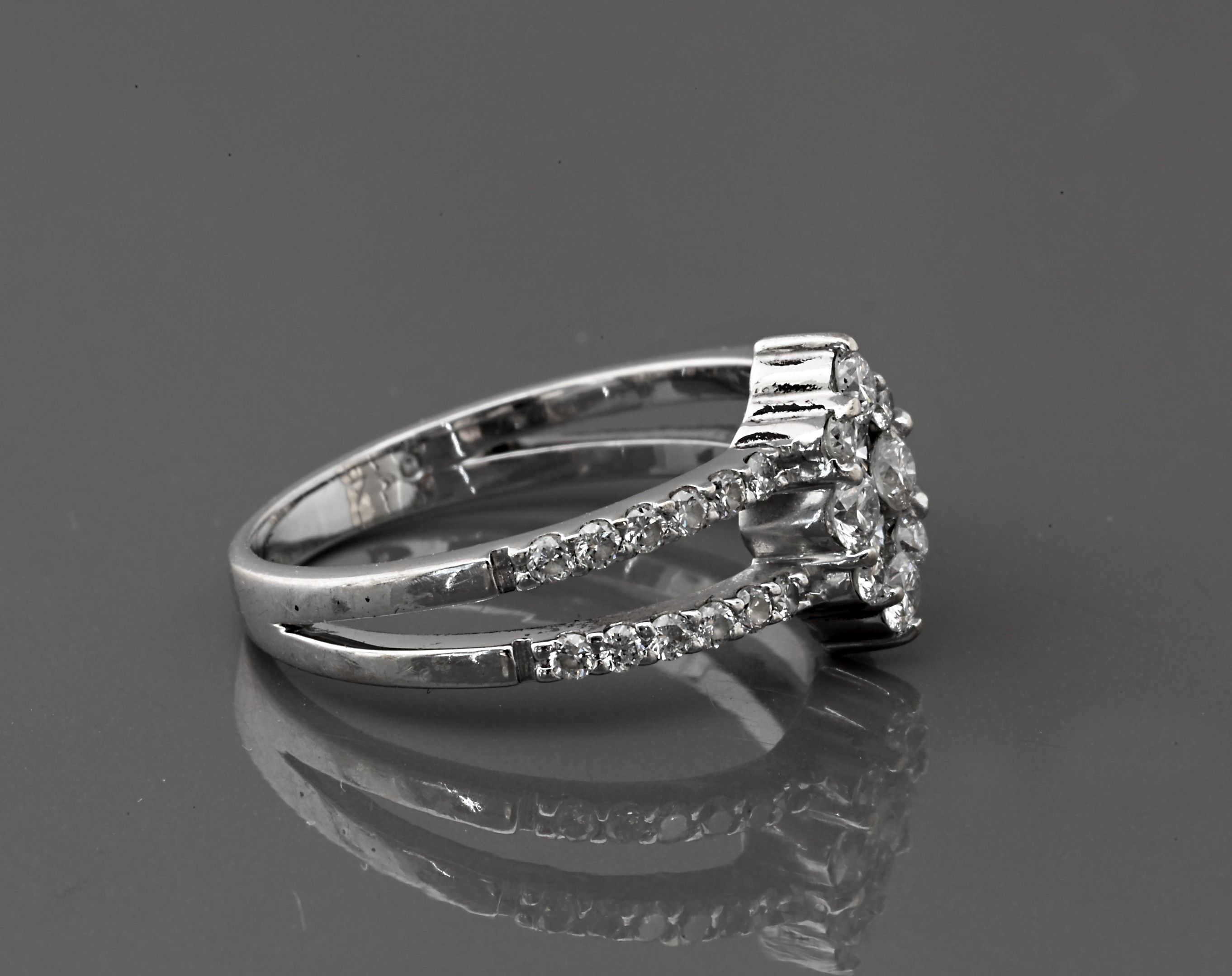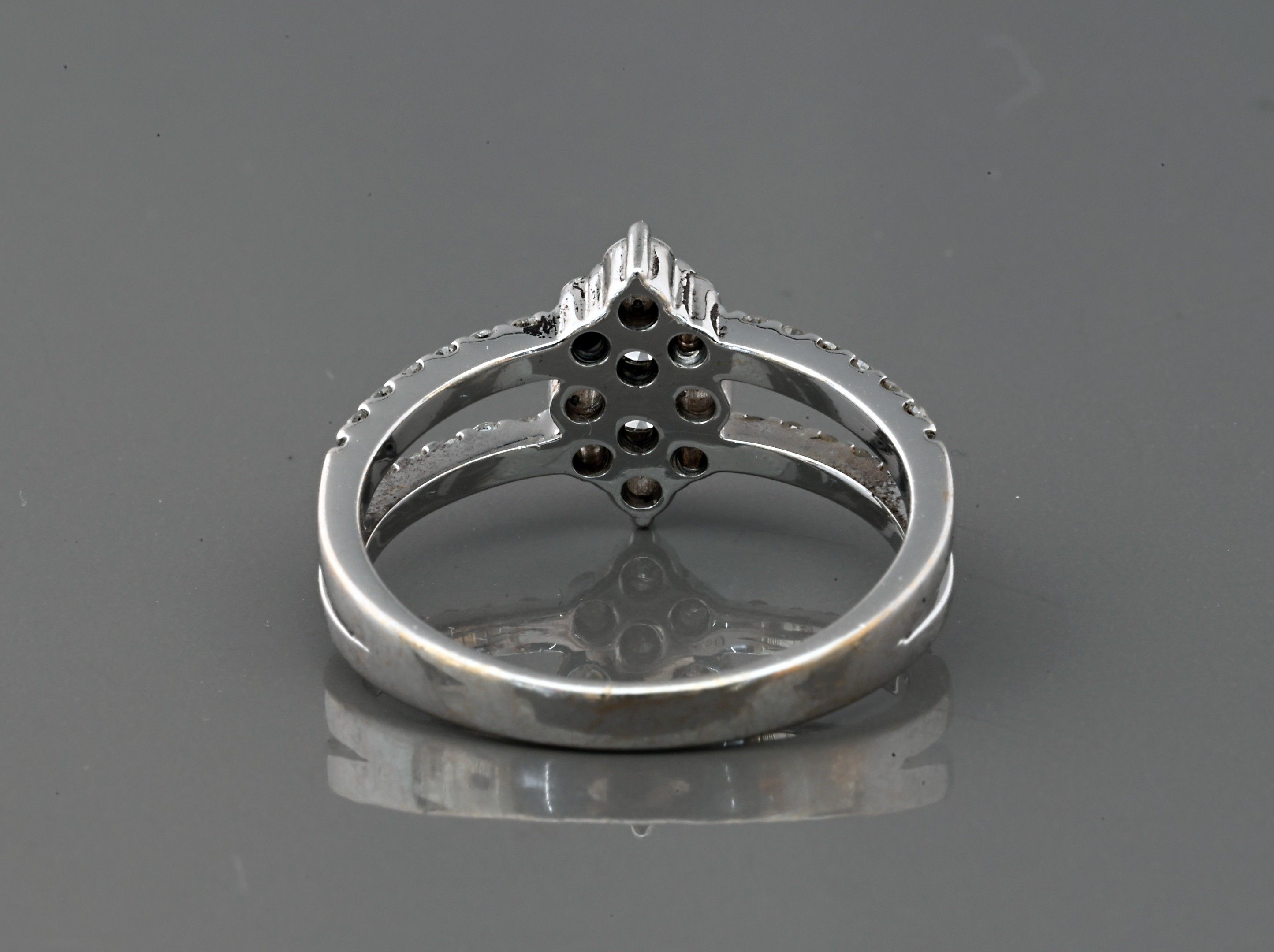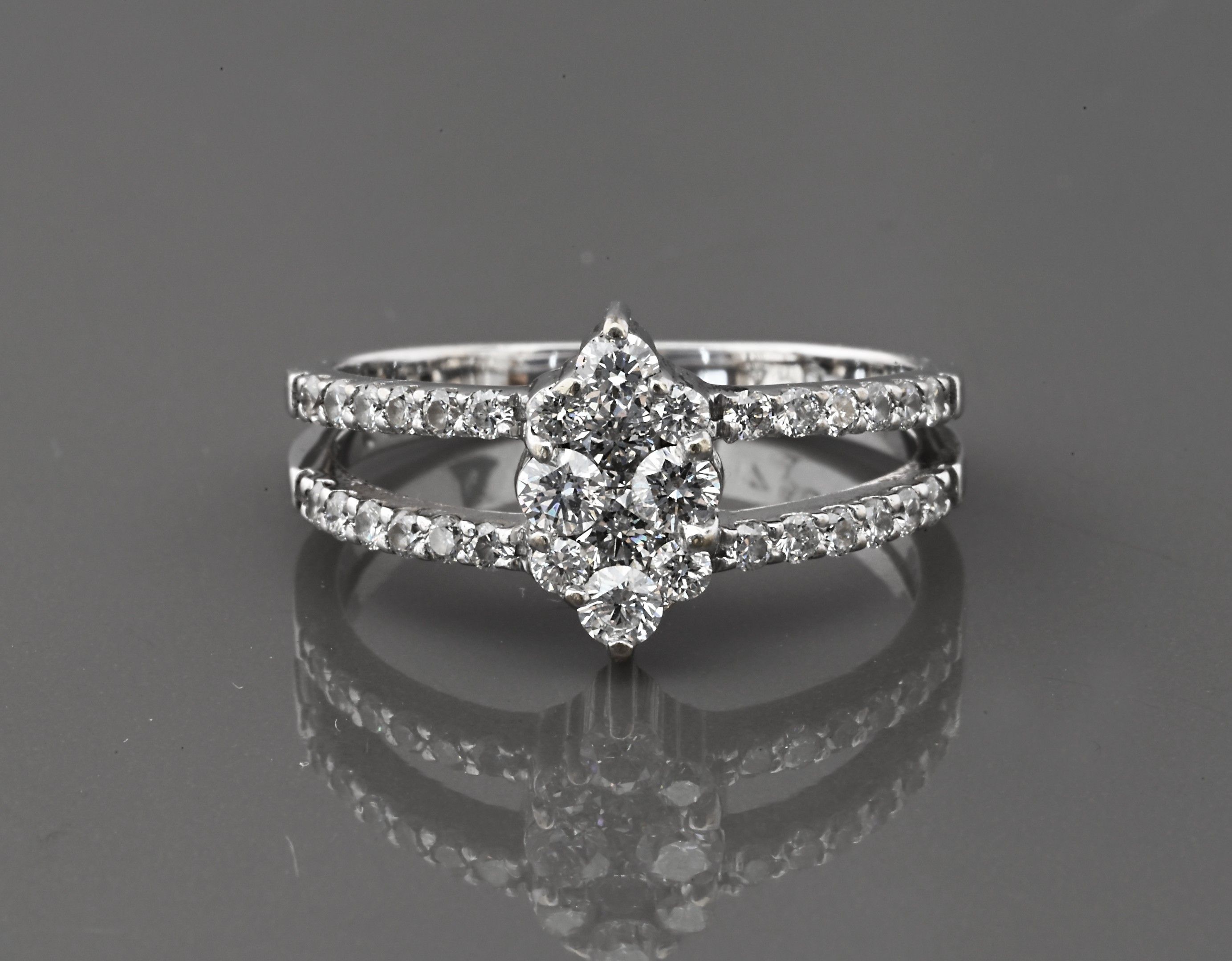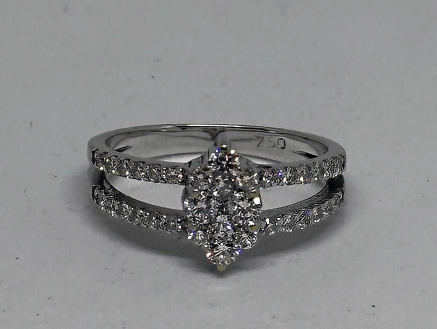 18 k white gold navette ring set with diamonds (approx. 1 ct) T 55. 4,20 g.