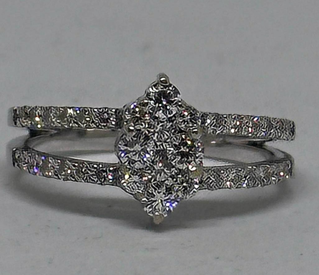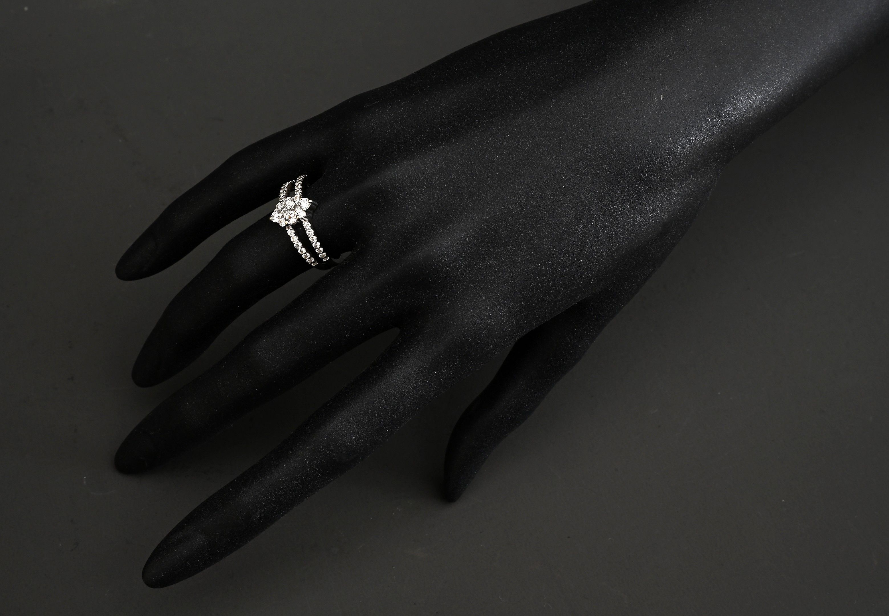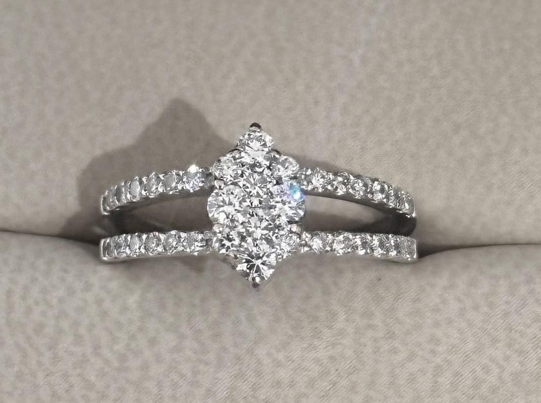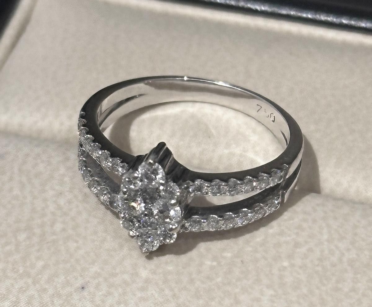 18 k white gold navette ring set with diamonds (approx. 1 ct) T 55. 4,20 g.