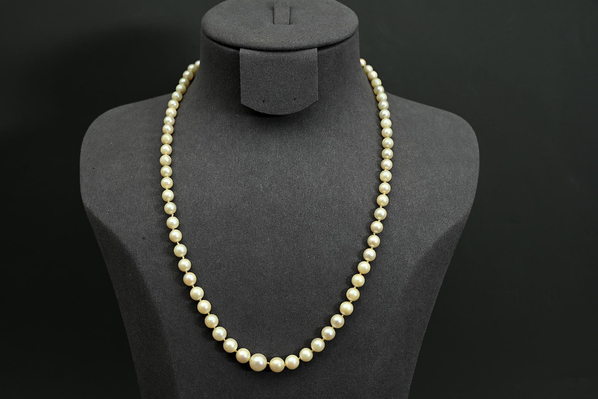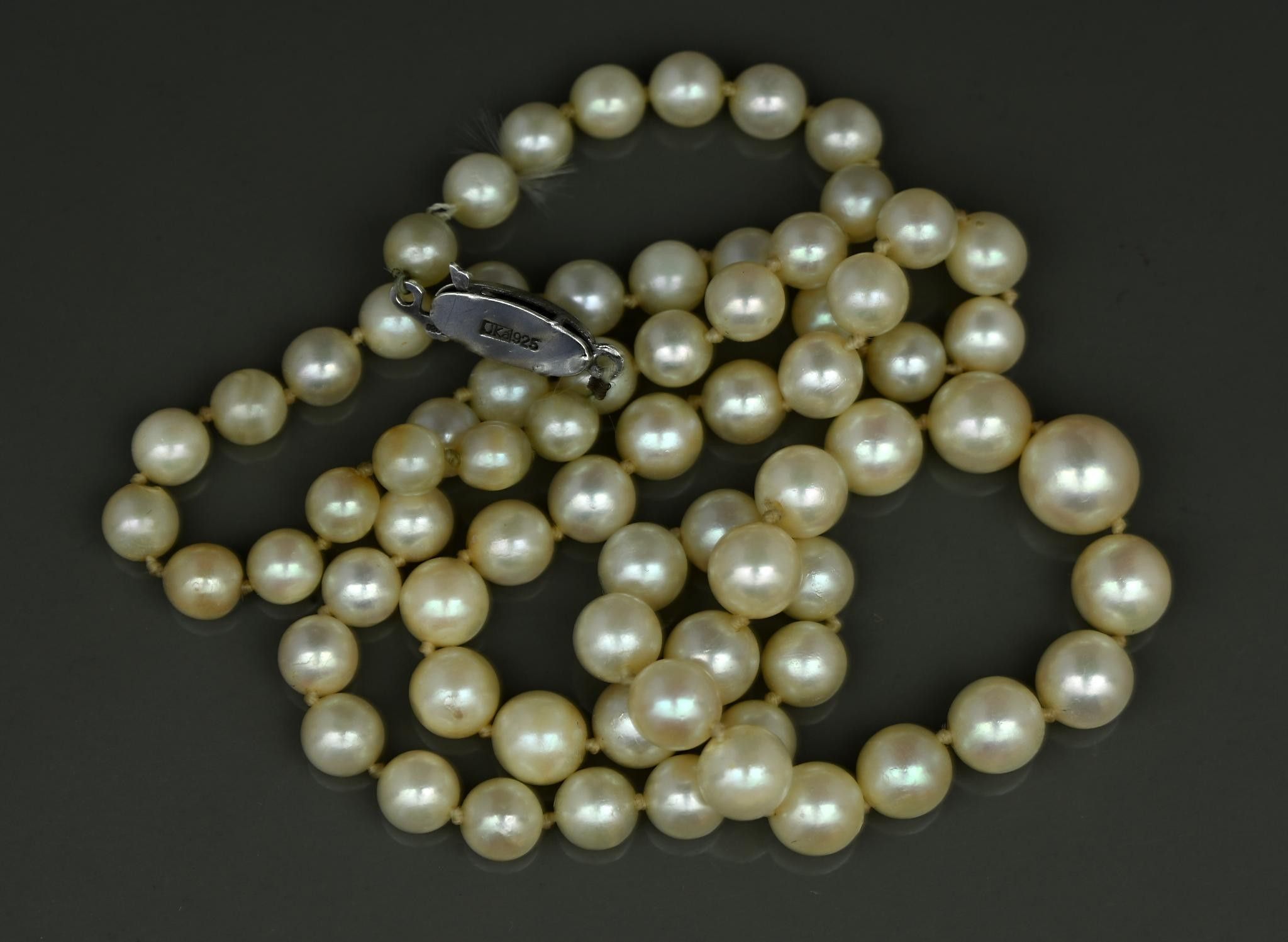 Necklace of cultured pearls, silver clasp. Length 50 cm.
