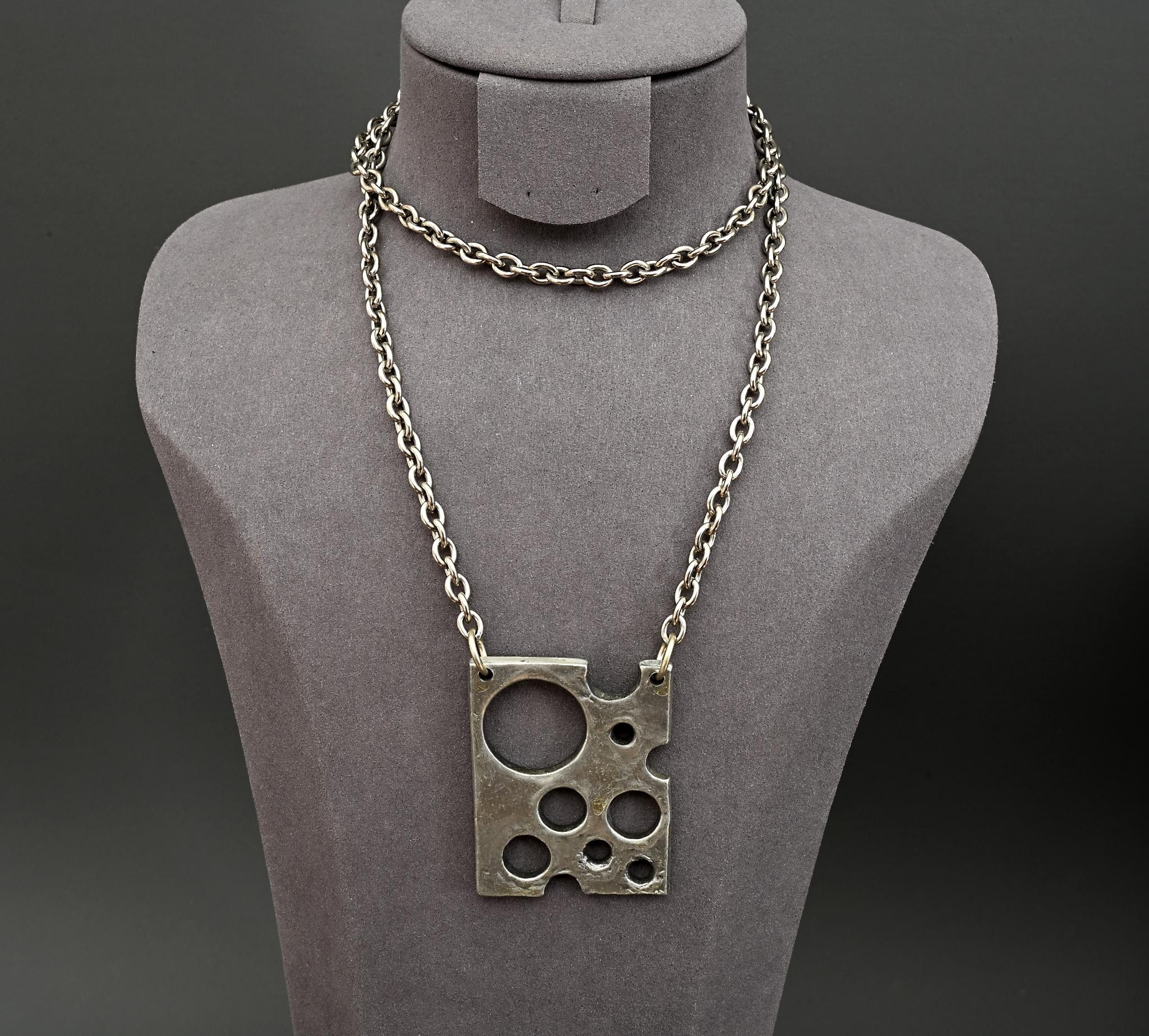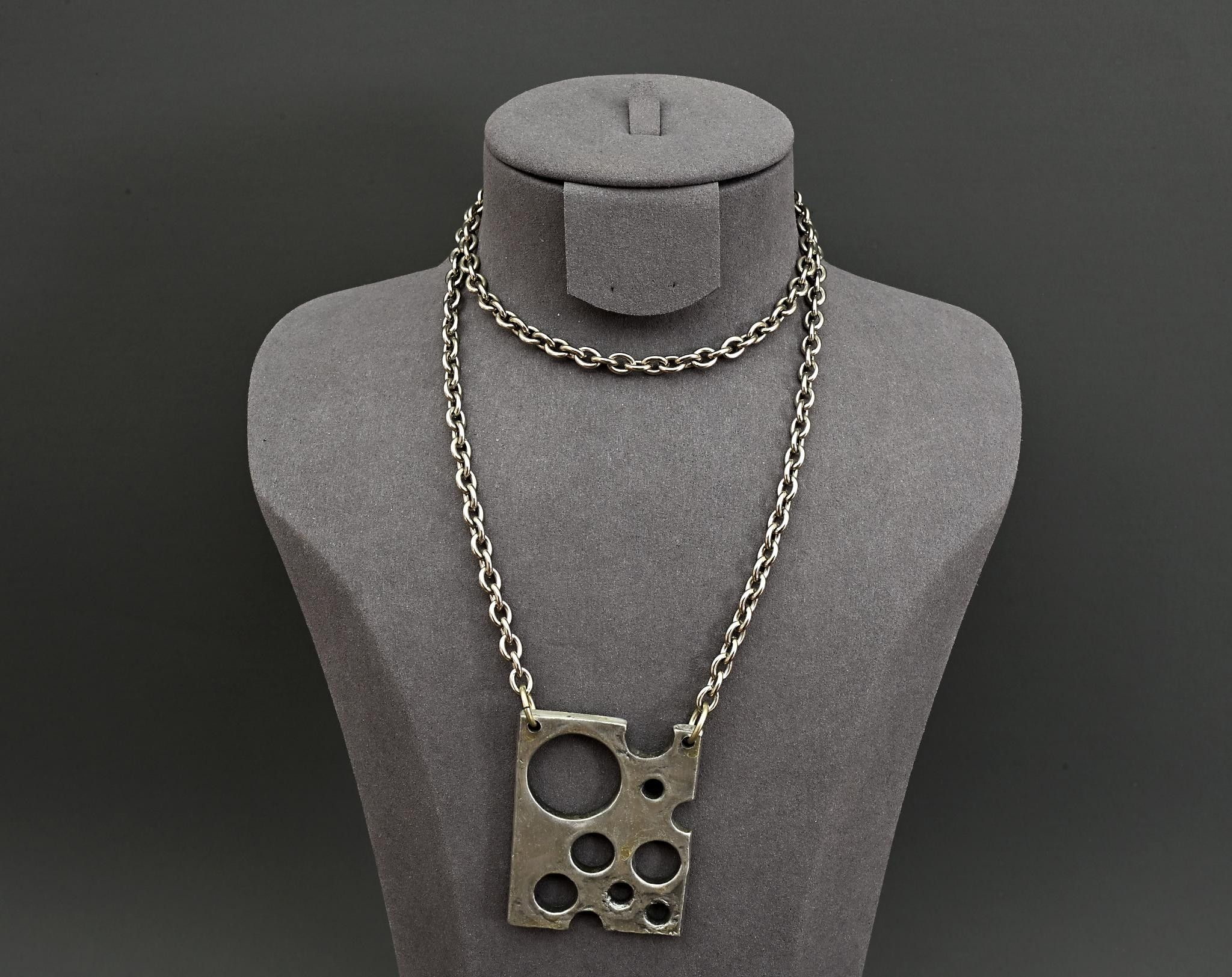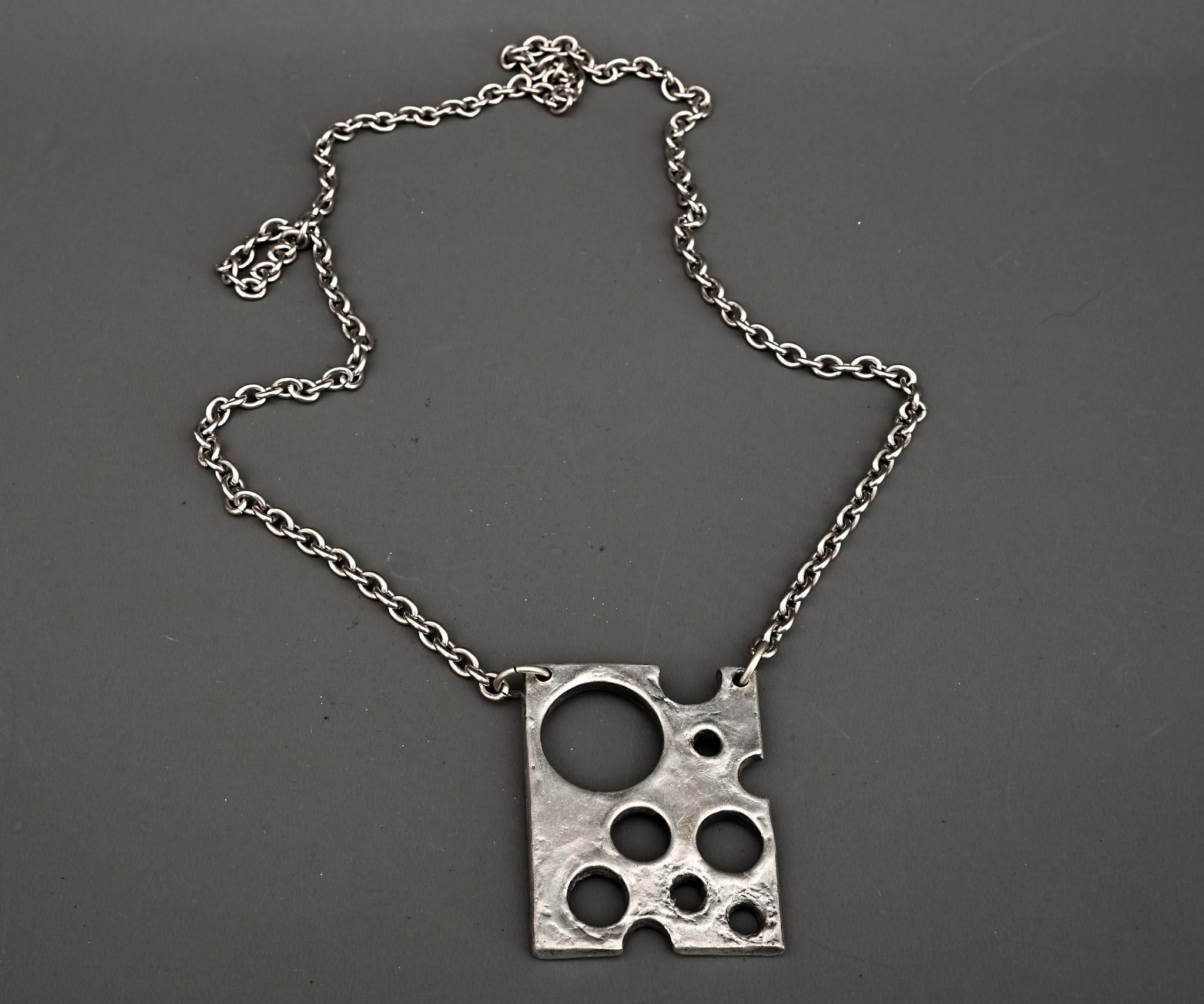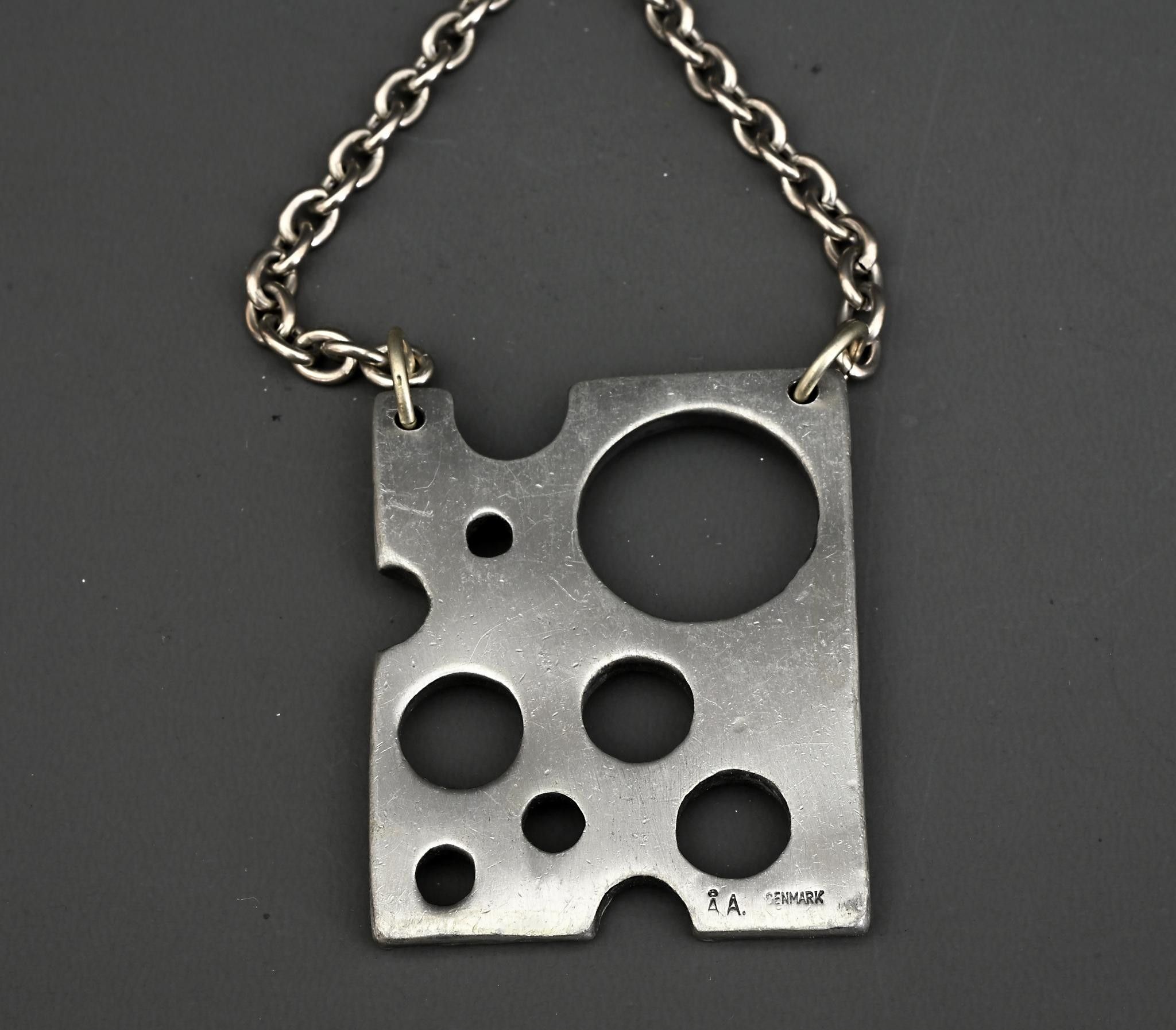 Anders ANDERSEN - Steel necklace with openwork plate marked AA Denmark. Plate 5.5 x 4.5cm. Chain length 71 cm.