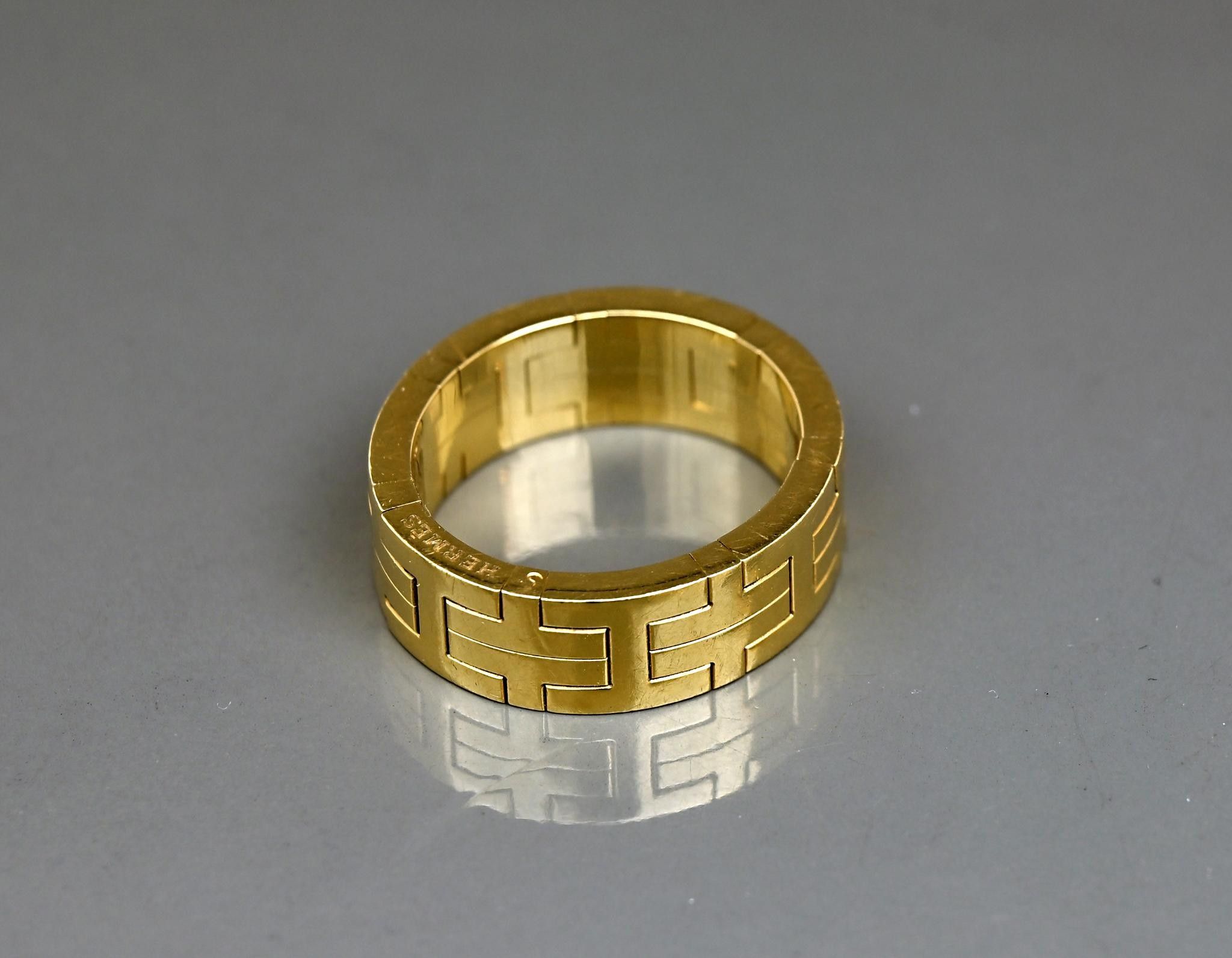 HERMES - Articulated ring in 750 yellow gold, Kilim model, interlocking H links. Signed Hermès on the edge, numbered. T58. Weight 13.36g.