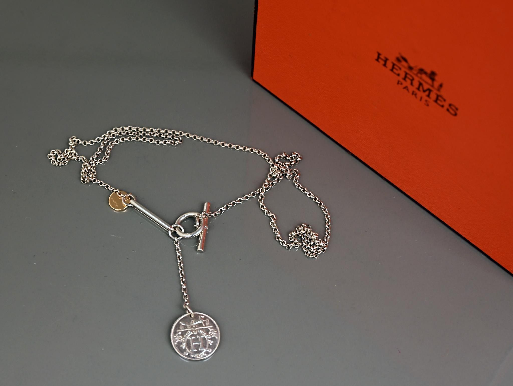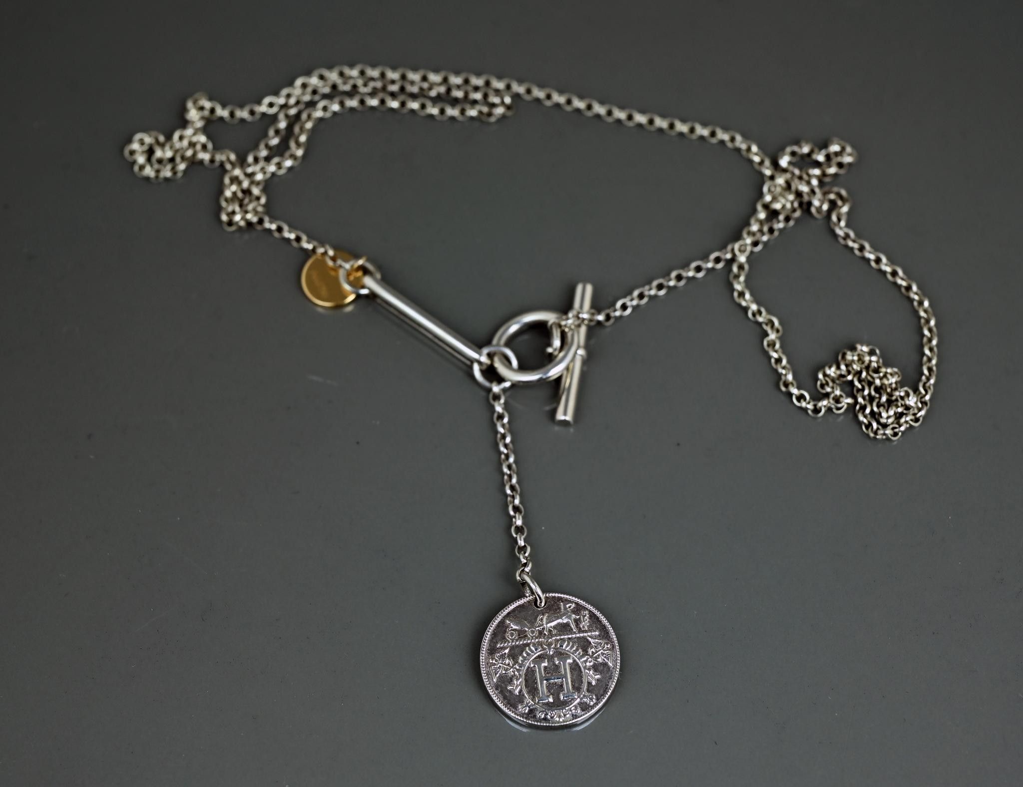 HERMES - Ex-Libris necklace in silver and 750 thousandths pi…