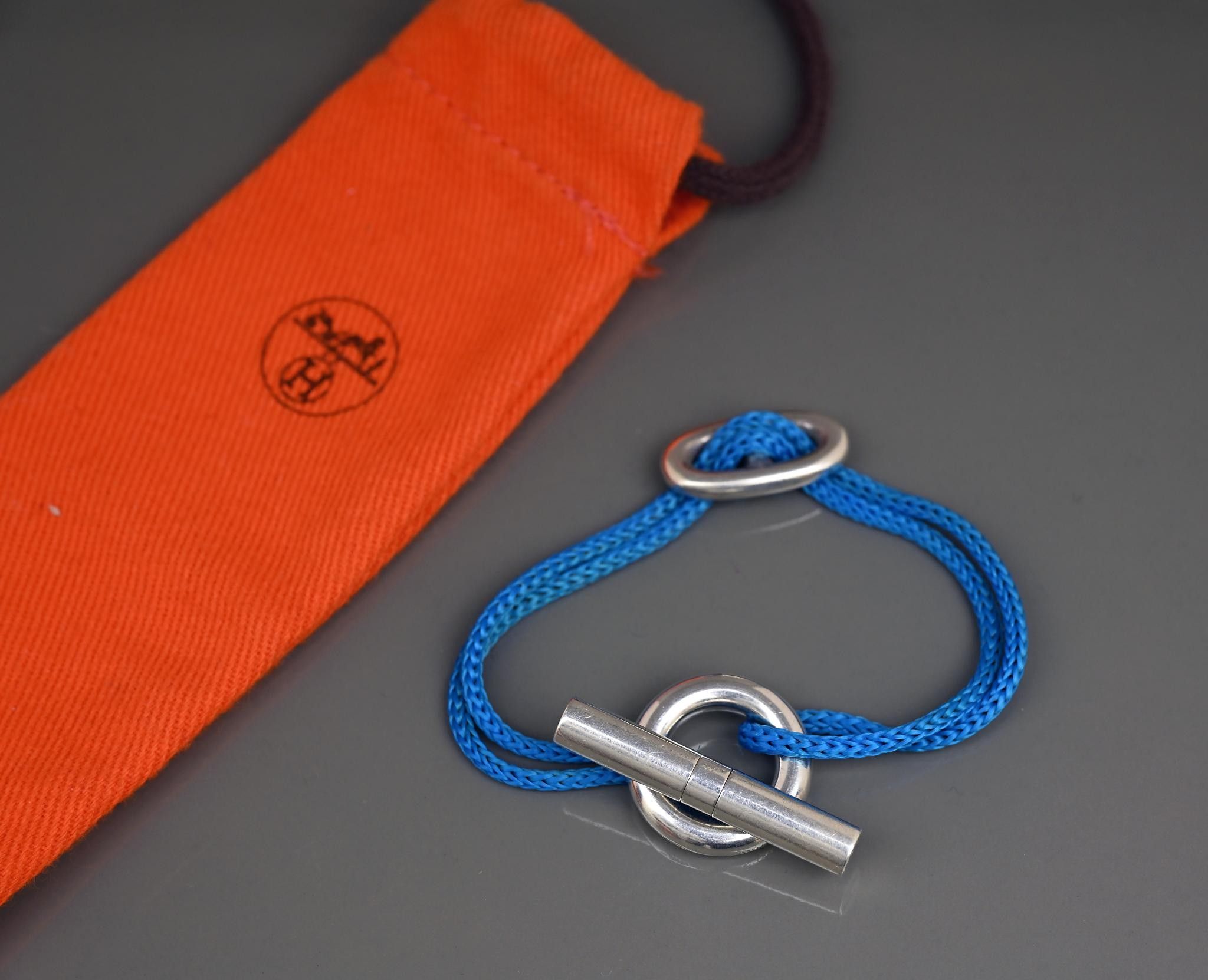 HERMES - Skipper model bracelet in 925 sterling silver and blue turquoise cord. 15.9g gross. Length 17cm. In its pouch.