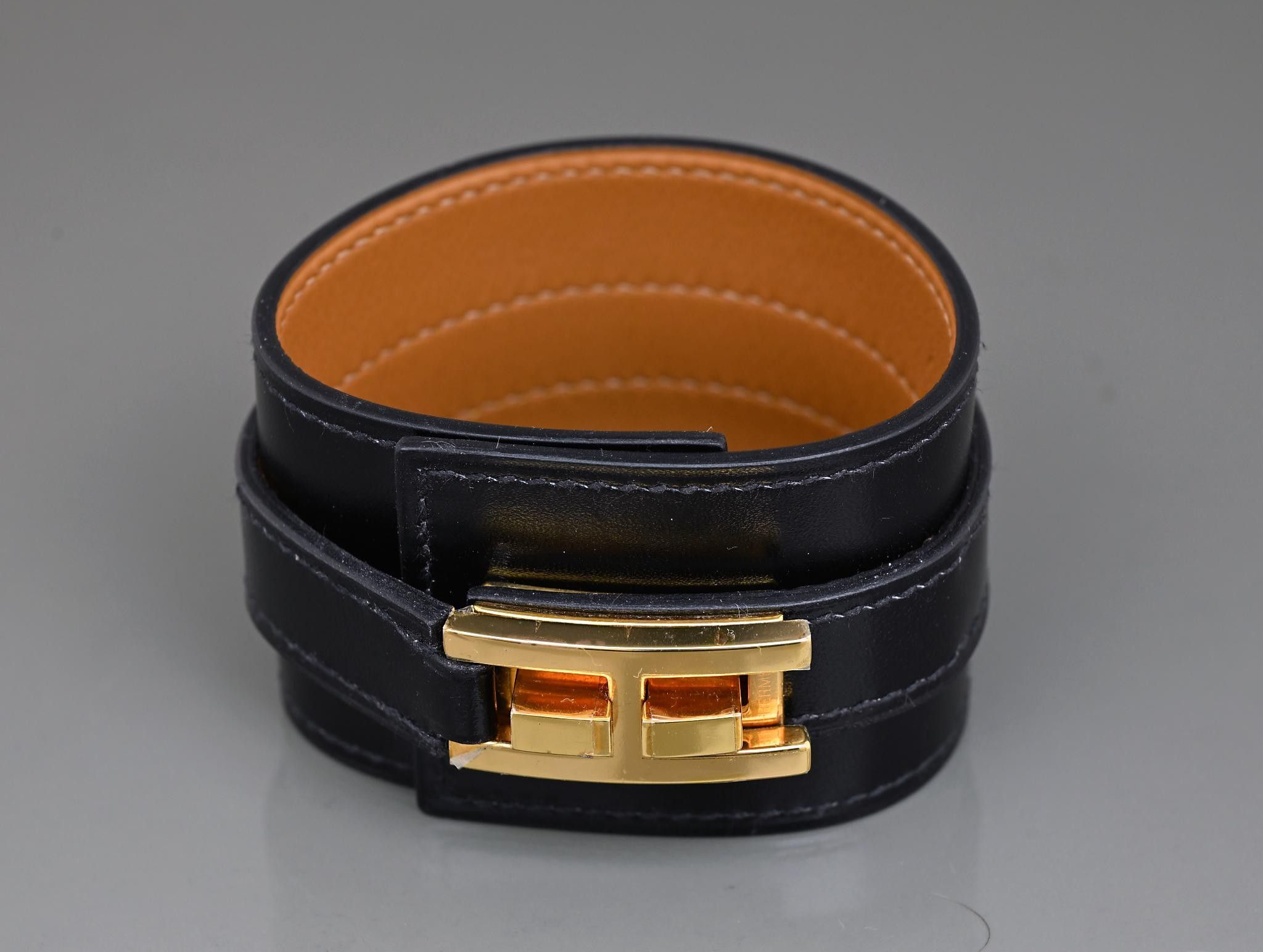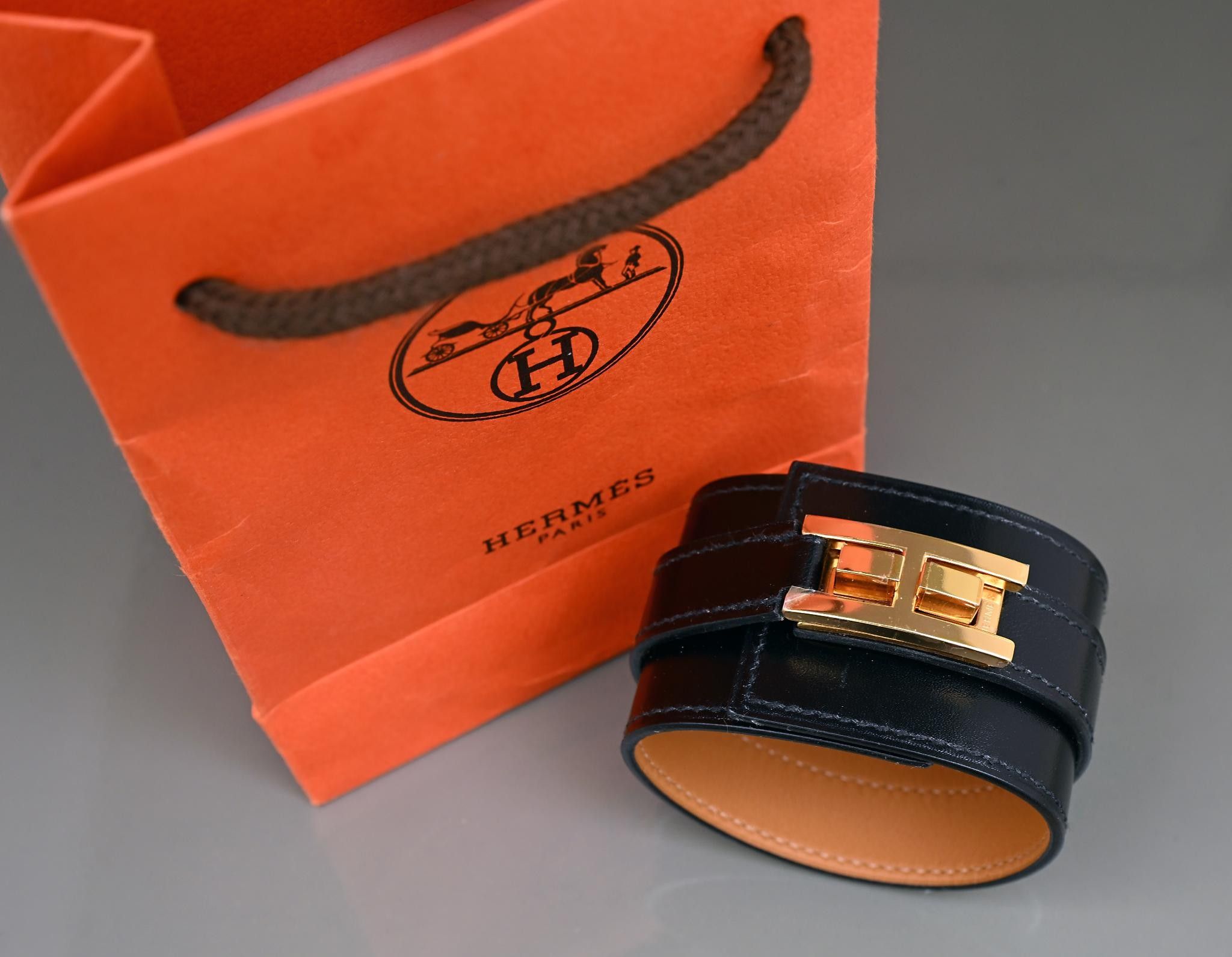 Premium HERMES PARIS - Drag cuff bracelet in black box calfskin and …