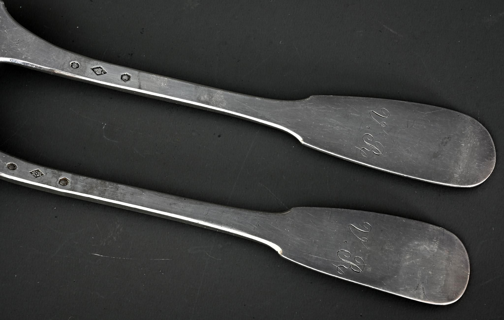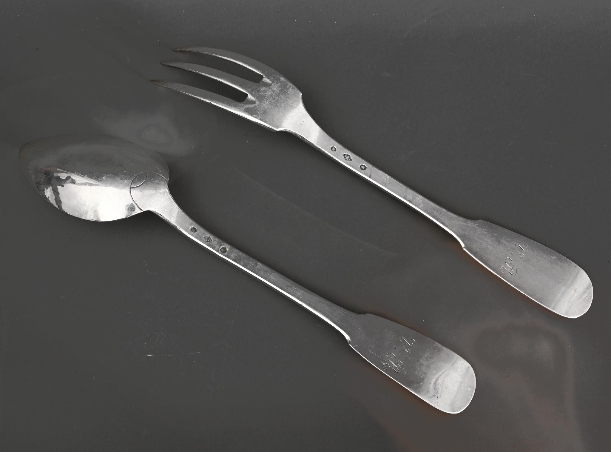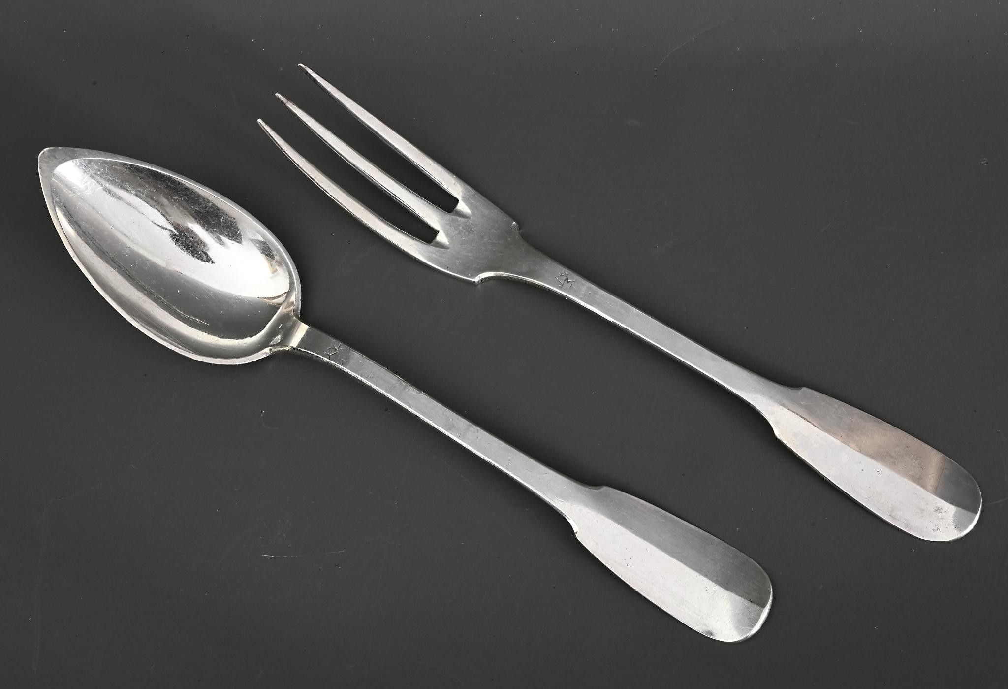 Large flatware set in 950 silver hallmarked 1818 - 1838. Cyphered V R. Length 29 cm. Weight 277g.