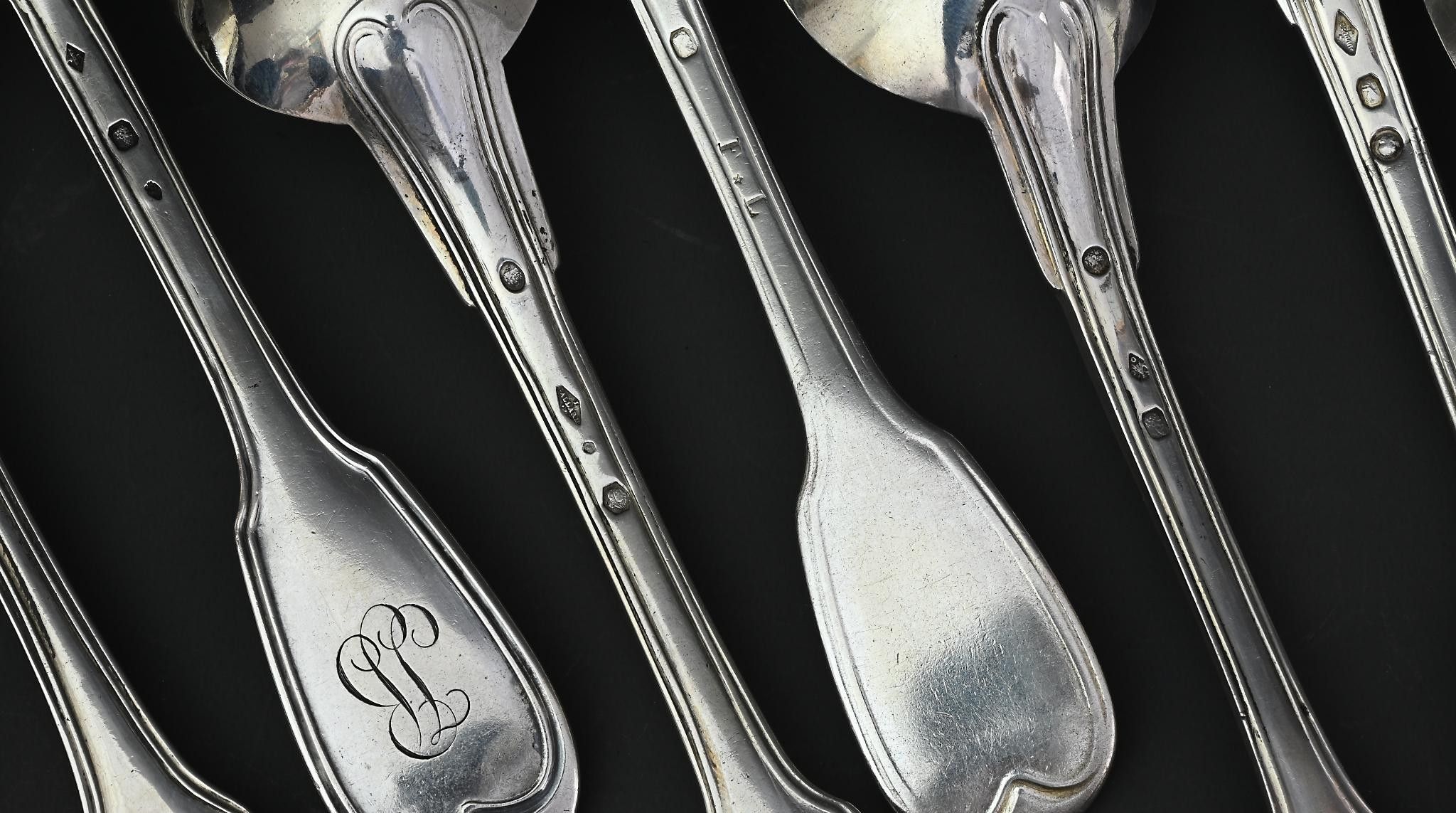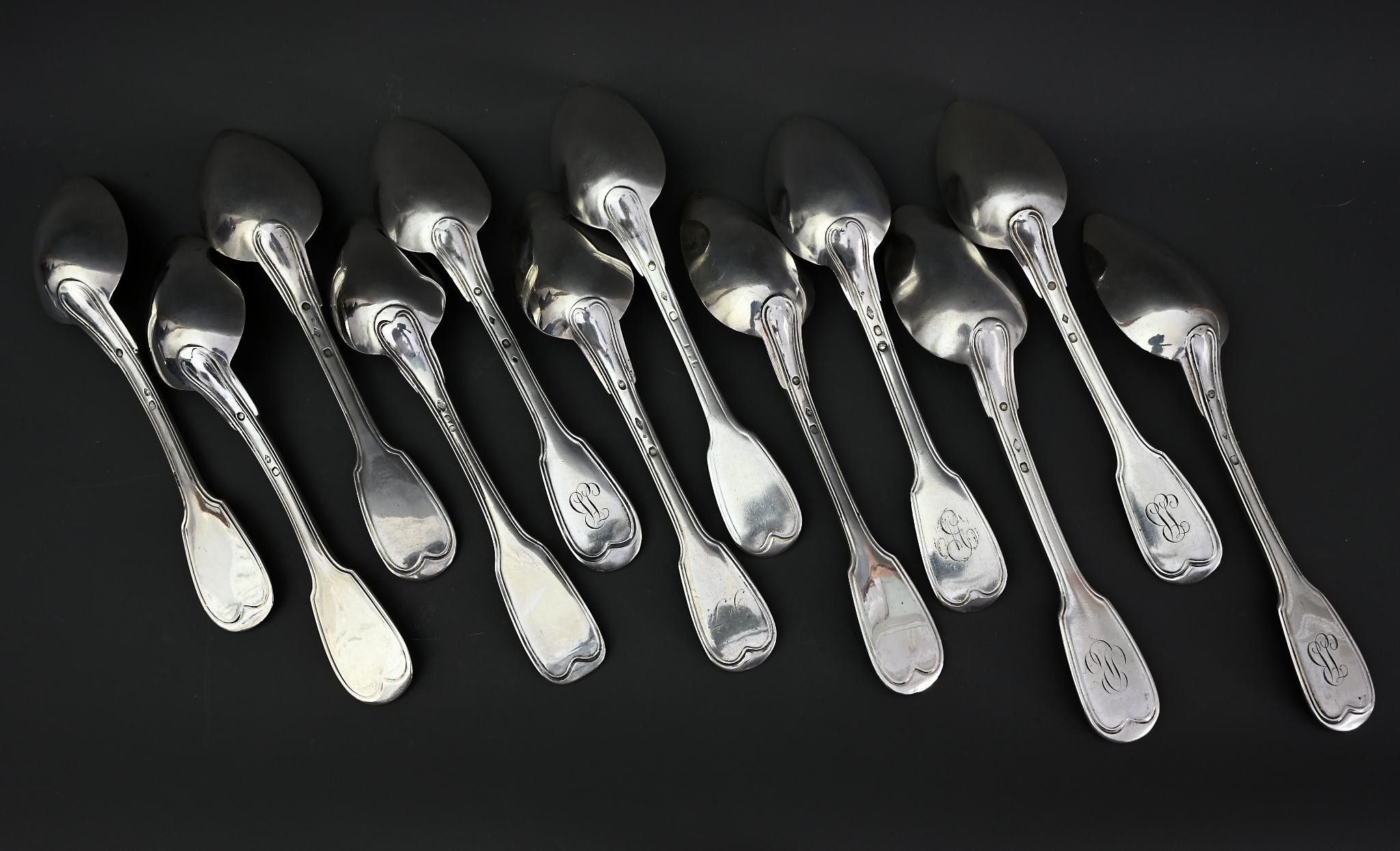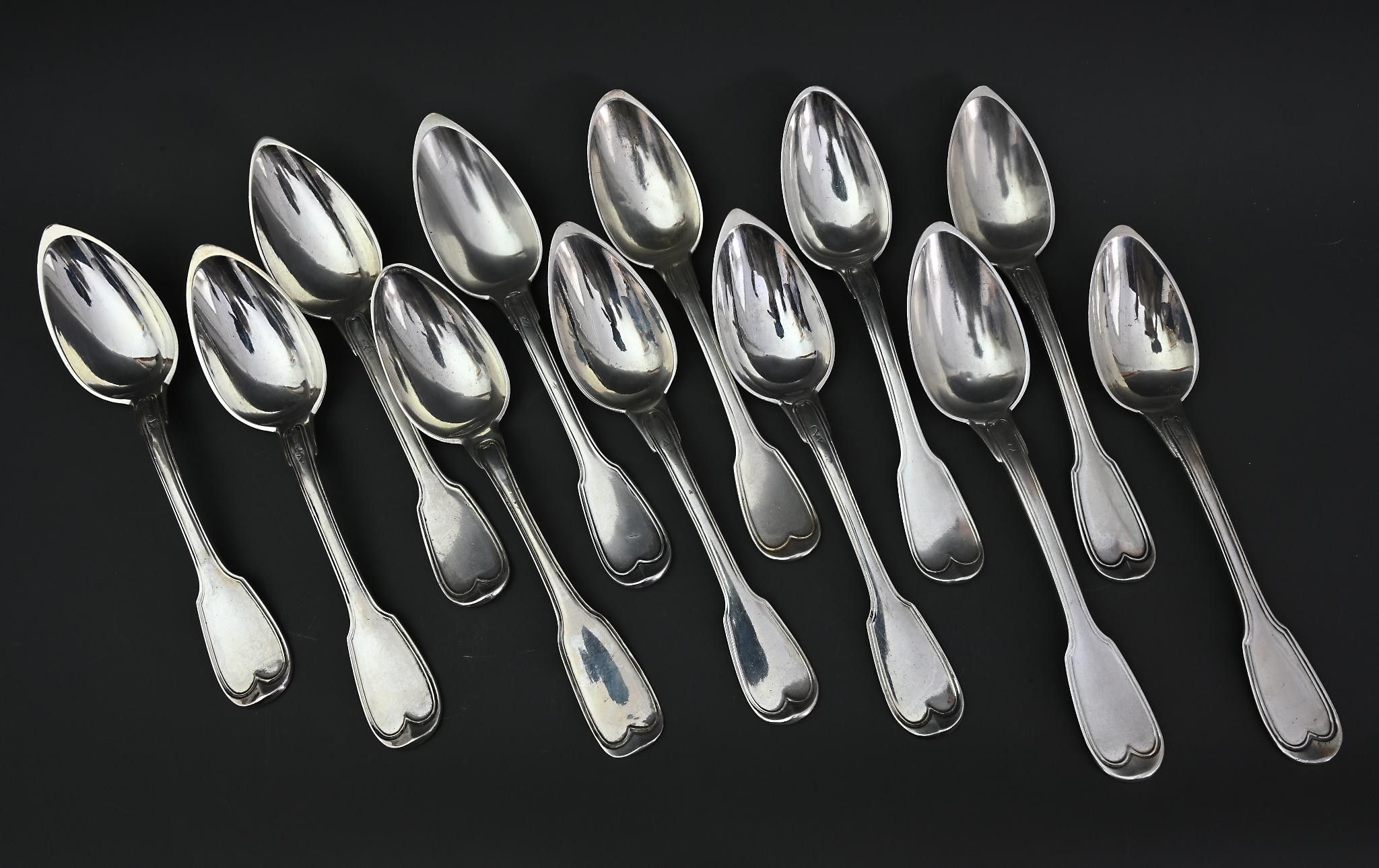 Set of 12 large Filet spoons, some engraved, Vieillard and C…