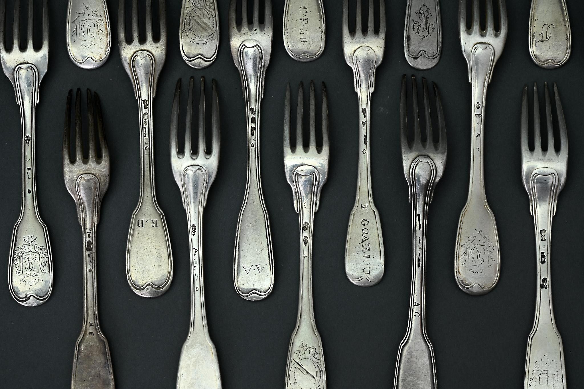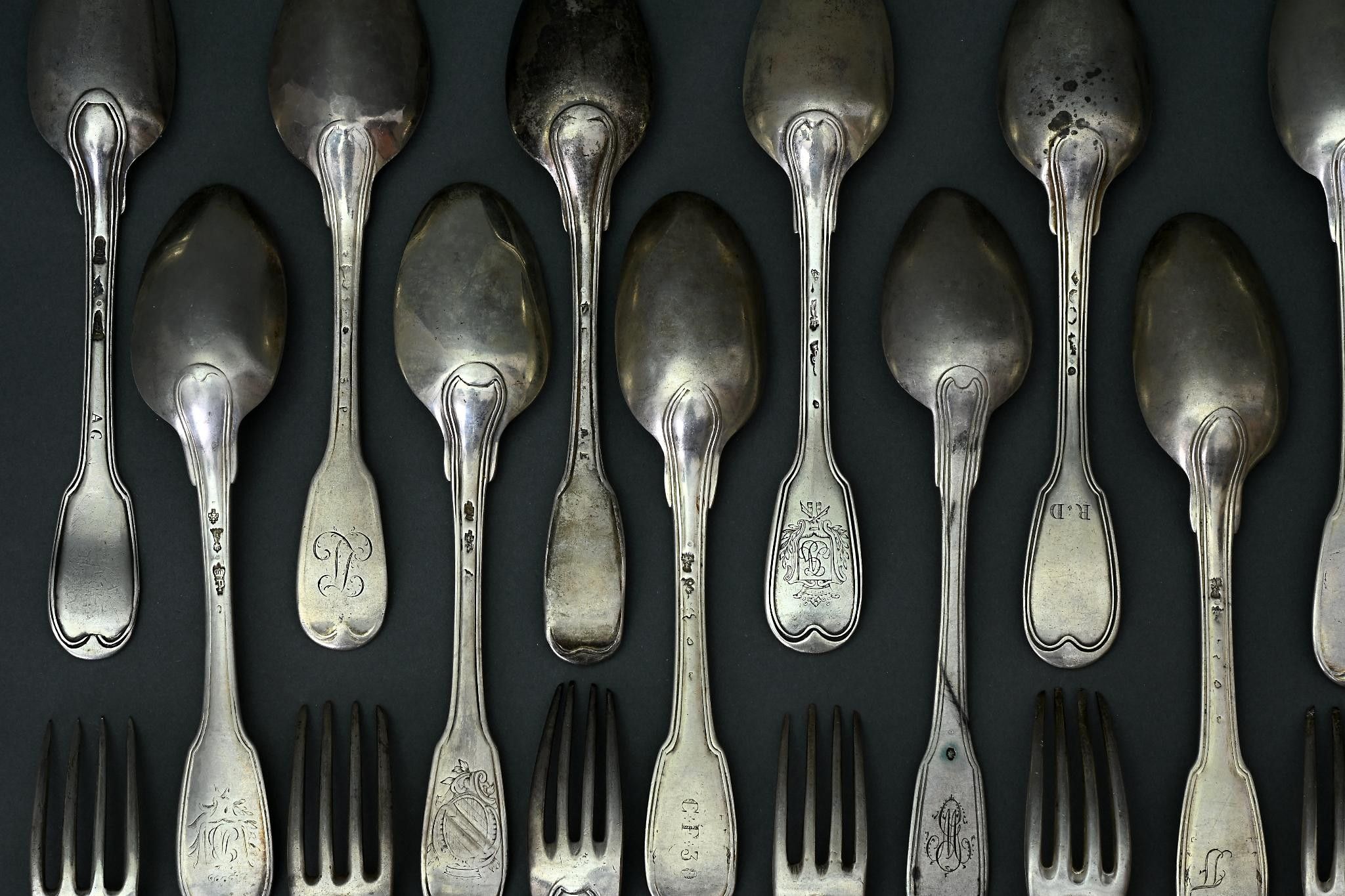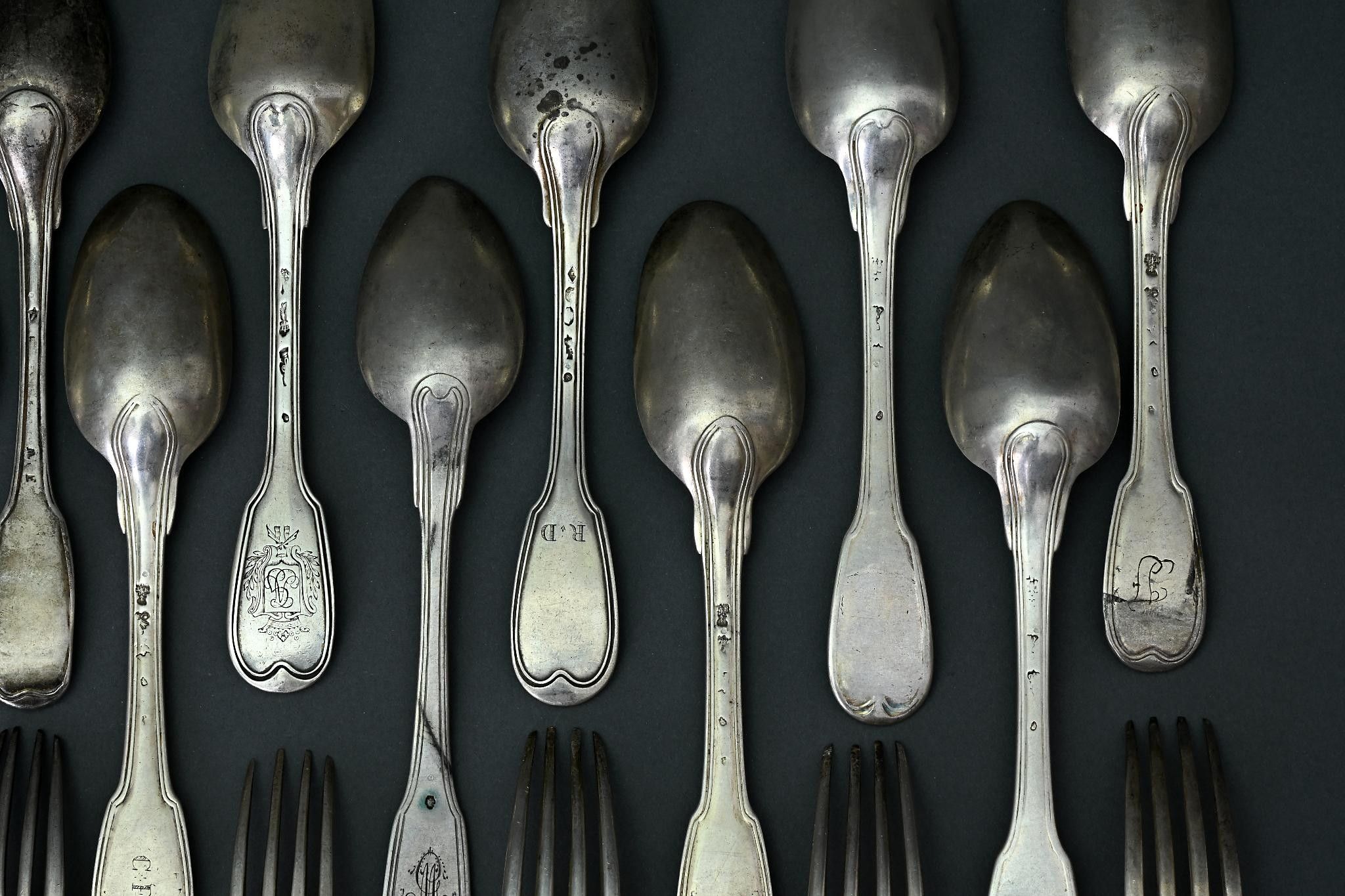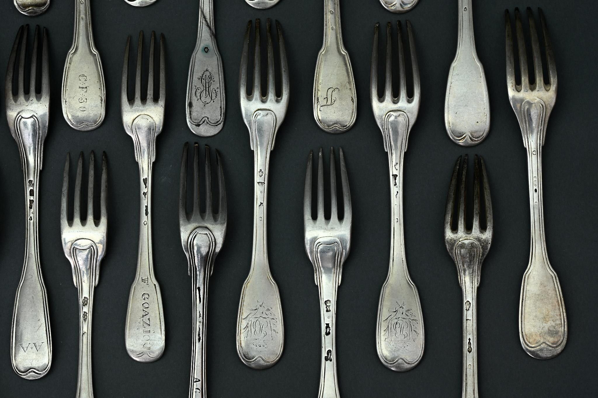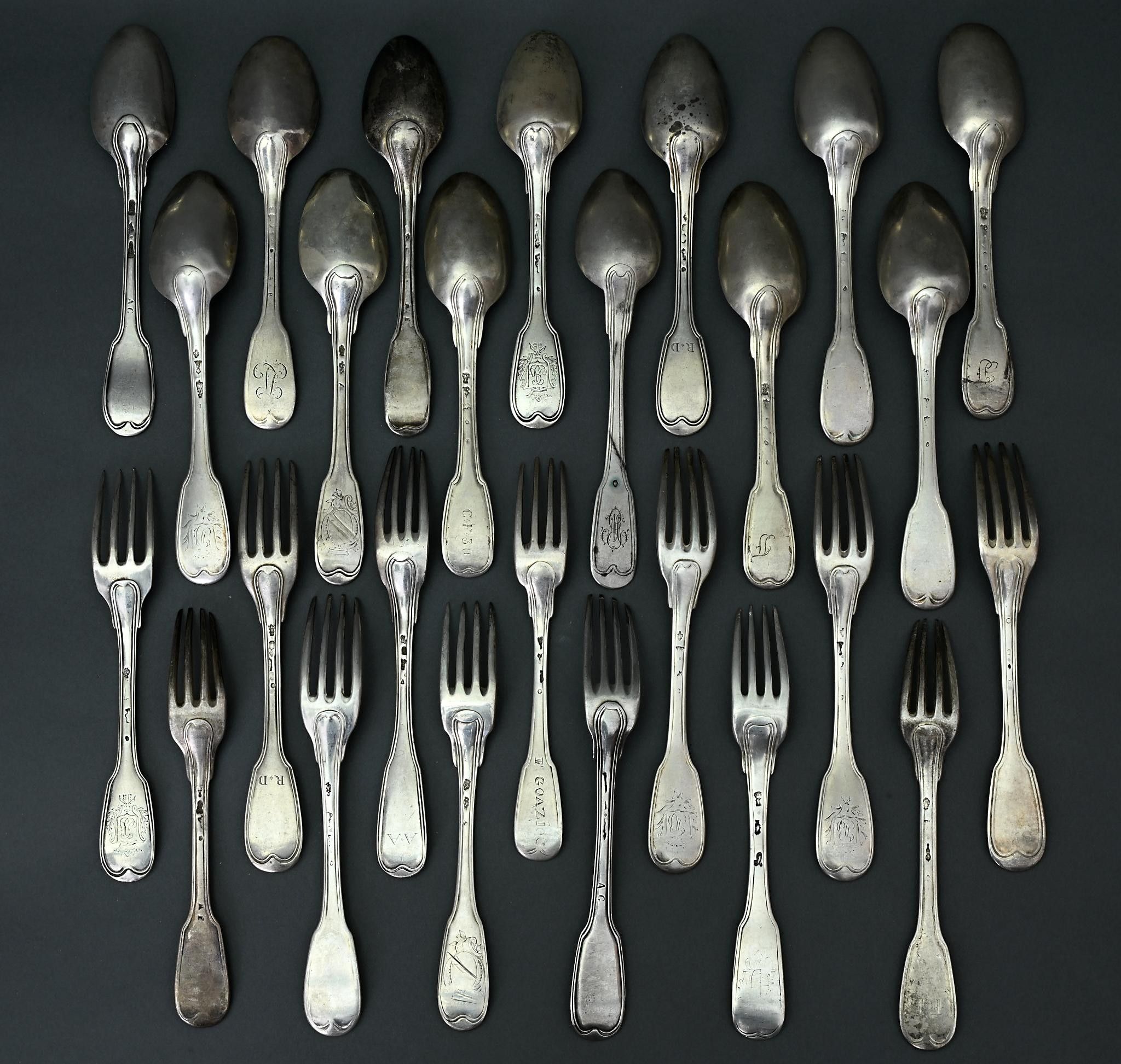 Premium A set of mismatched flatware, filet pattern, mainly Fermiers…