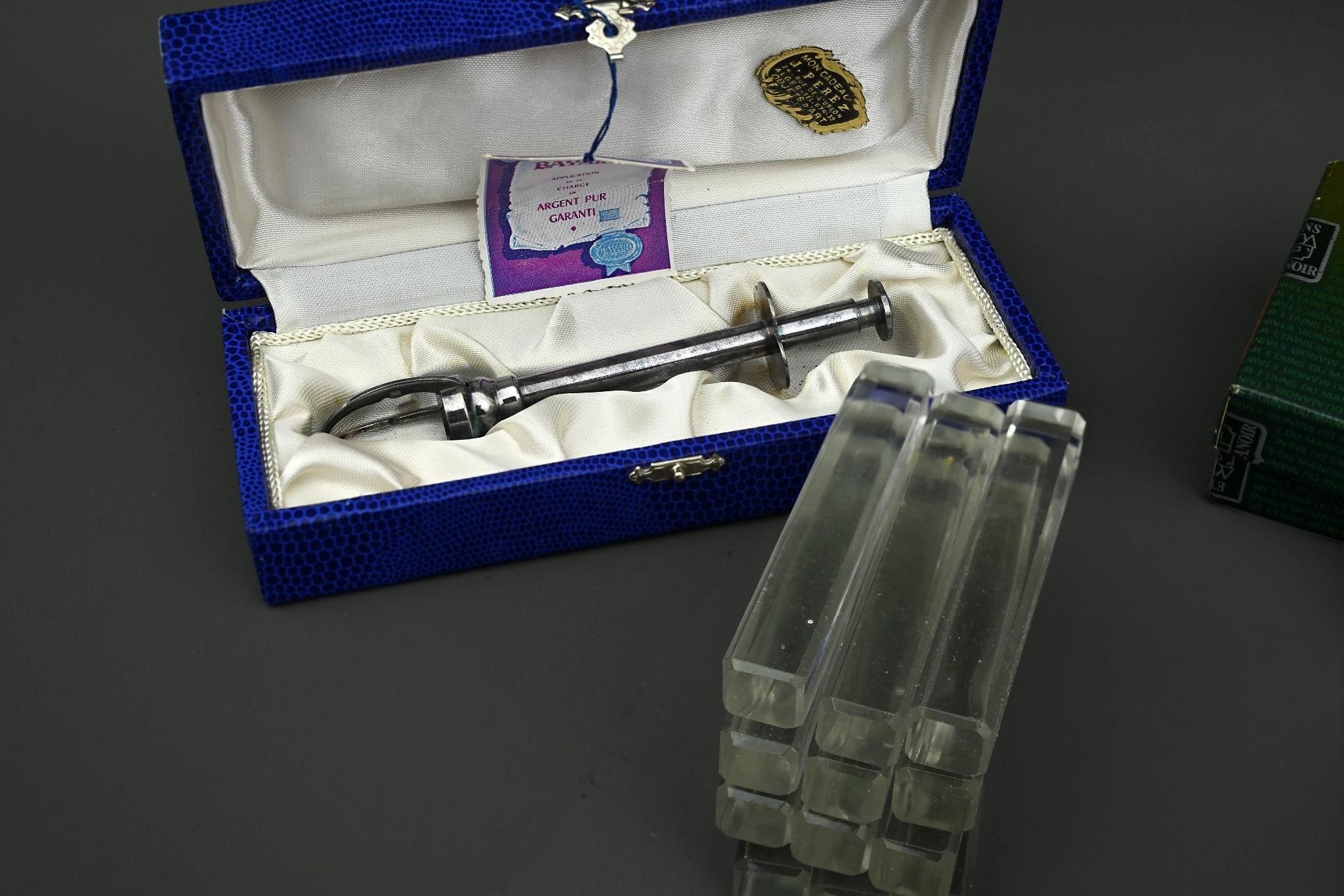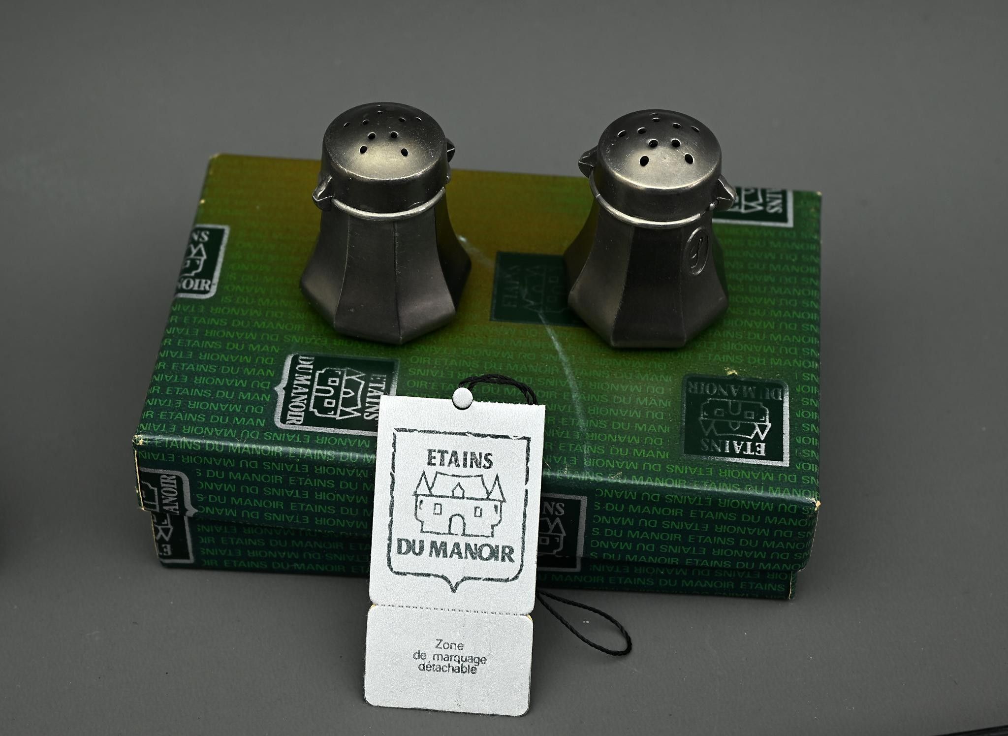 Two knife boxes, a pewter salt and pepper set and silver-pla…