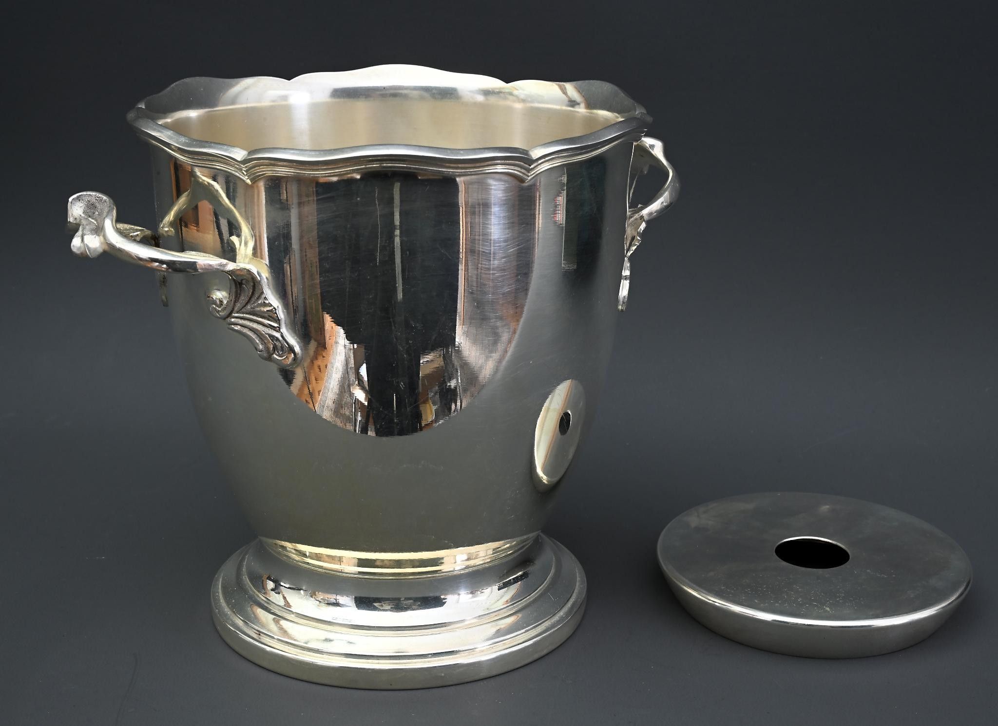 A Medici-shaped silver-plated ice-cube bucket with a poly-lo…