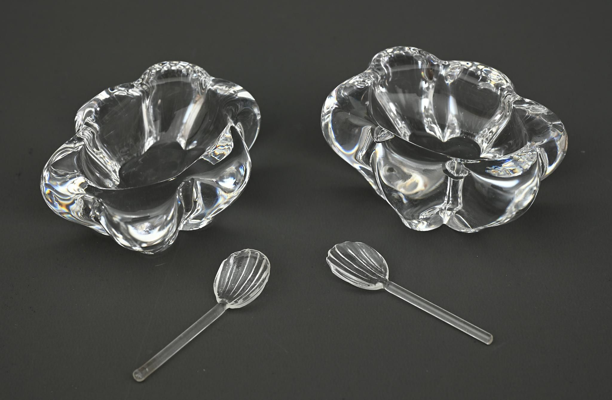 DAUM - Pair of crystal salerons signed with their glass spoo…