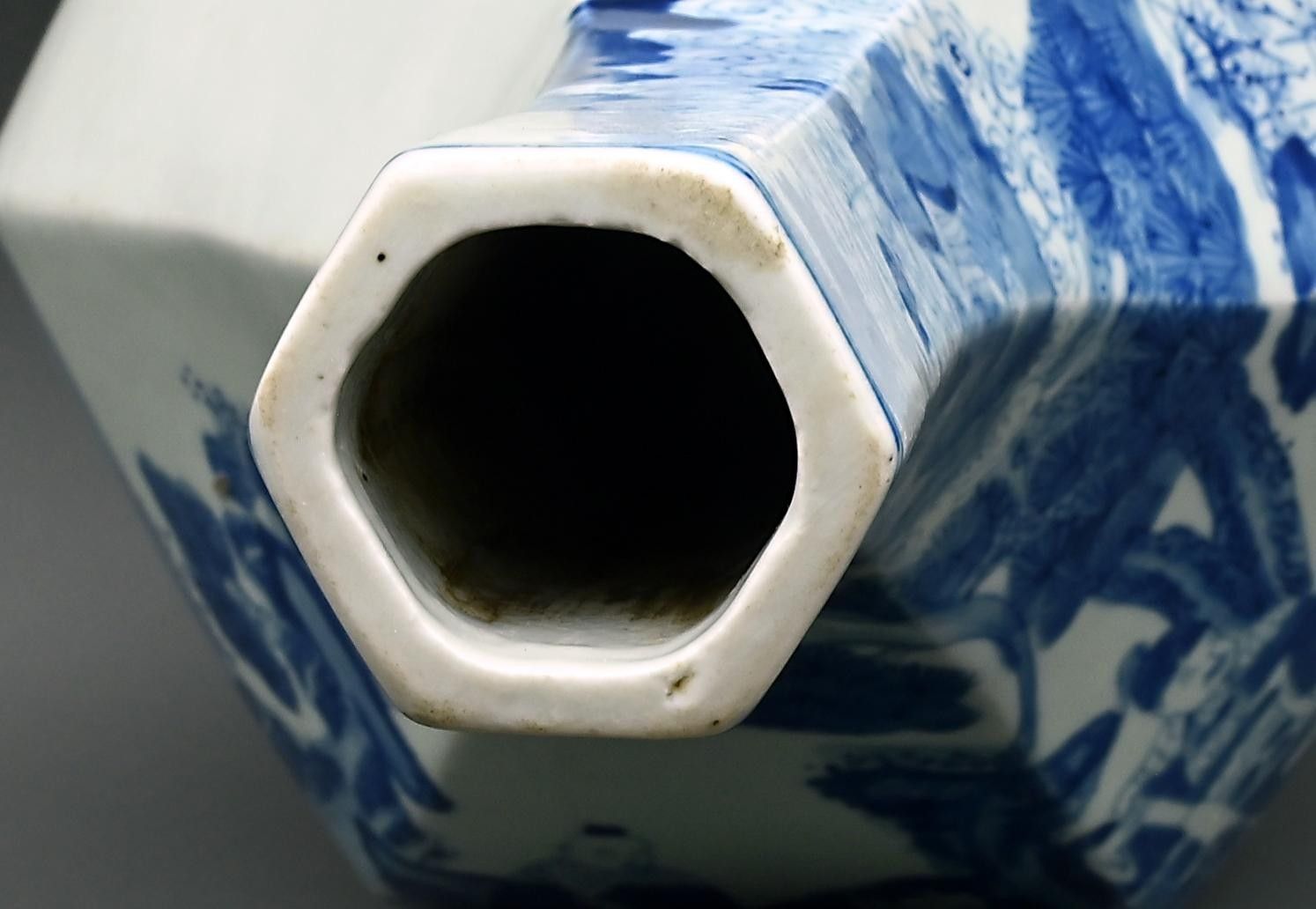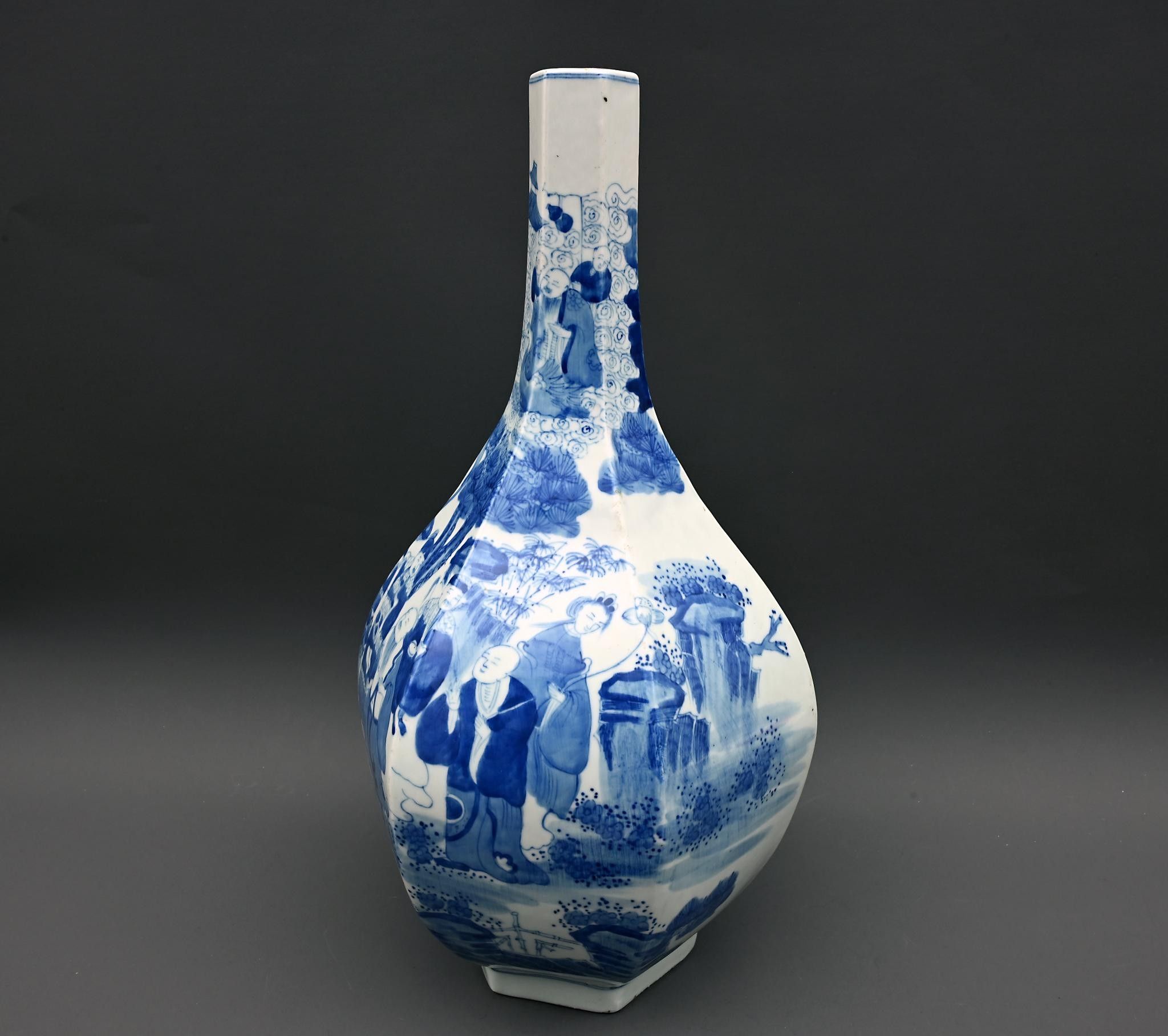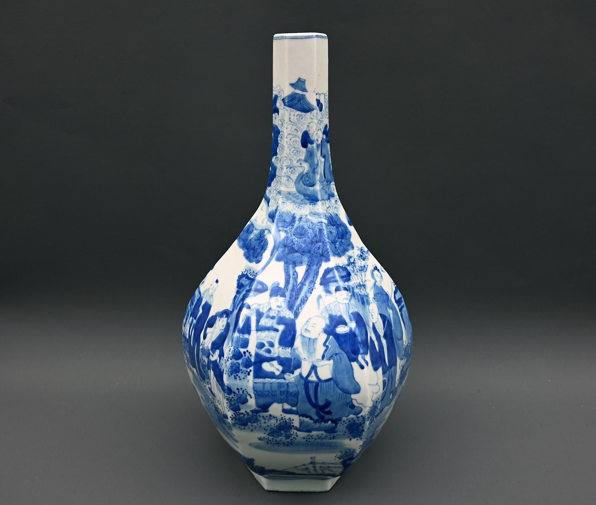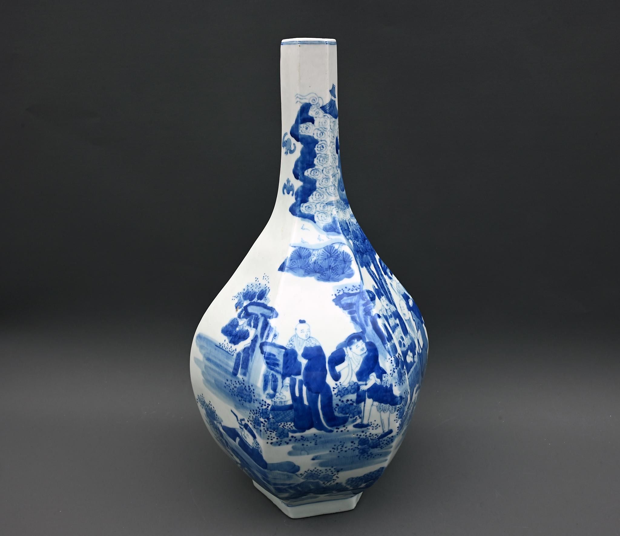 Large white-blue porcelain vase decorated with figures. China. Height: 38.5 cm.