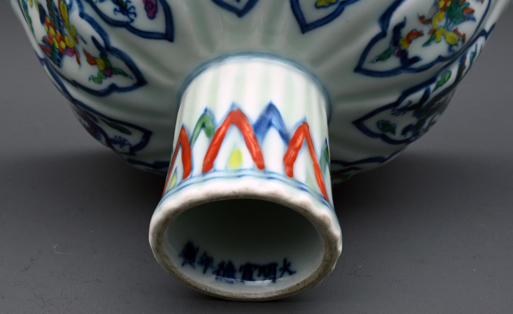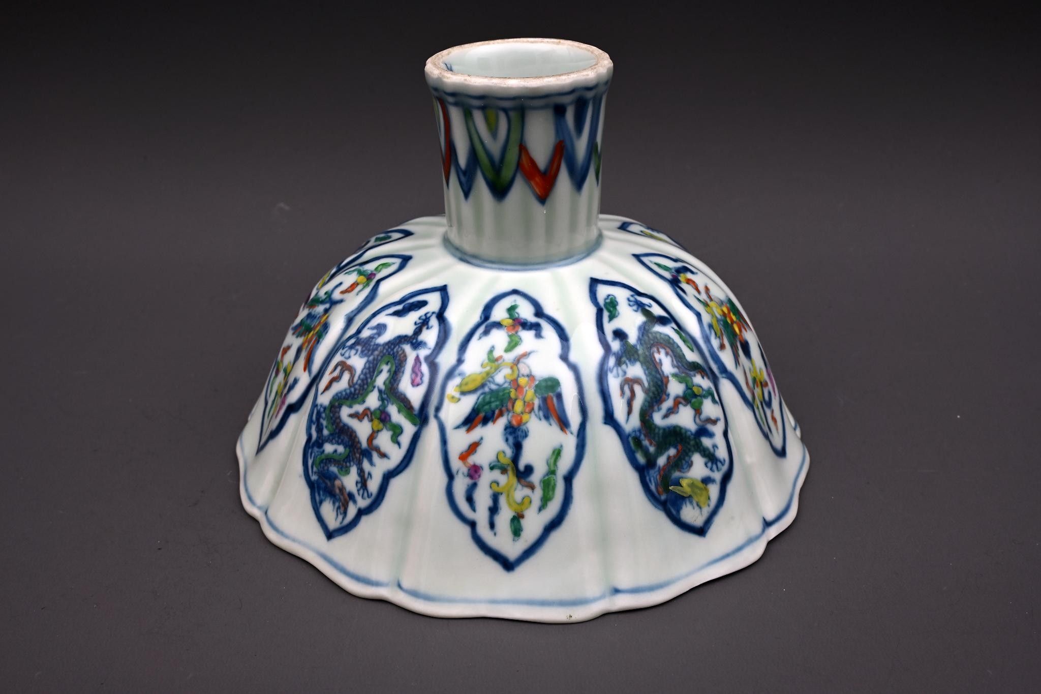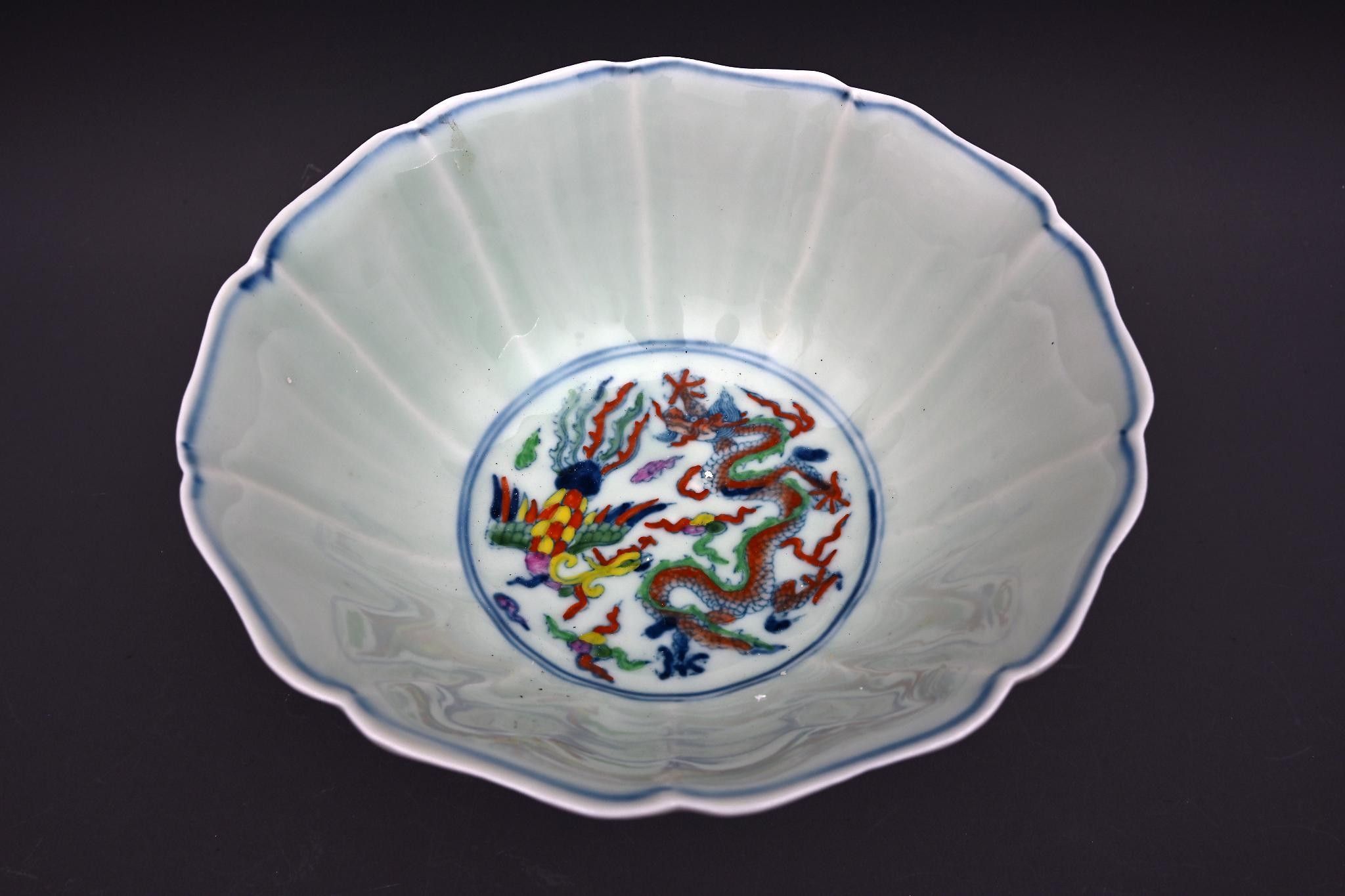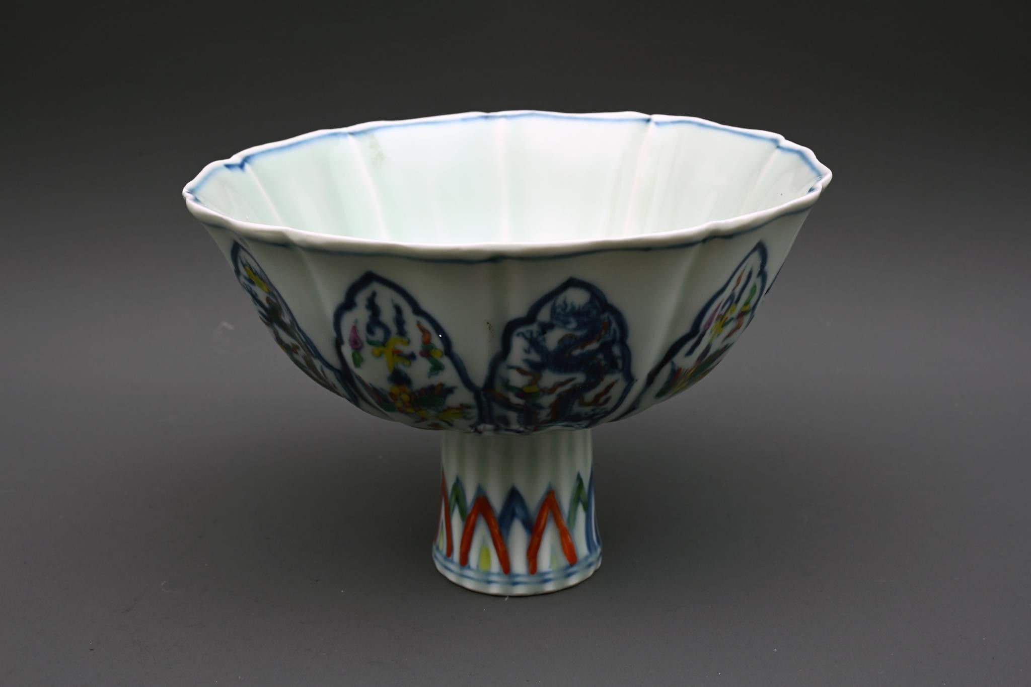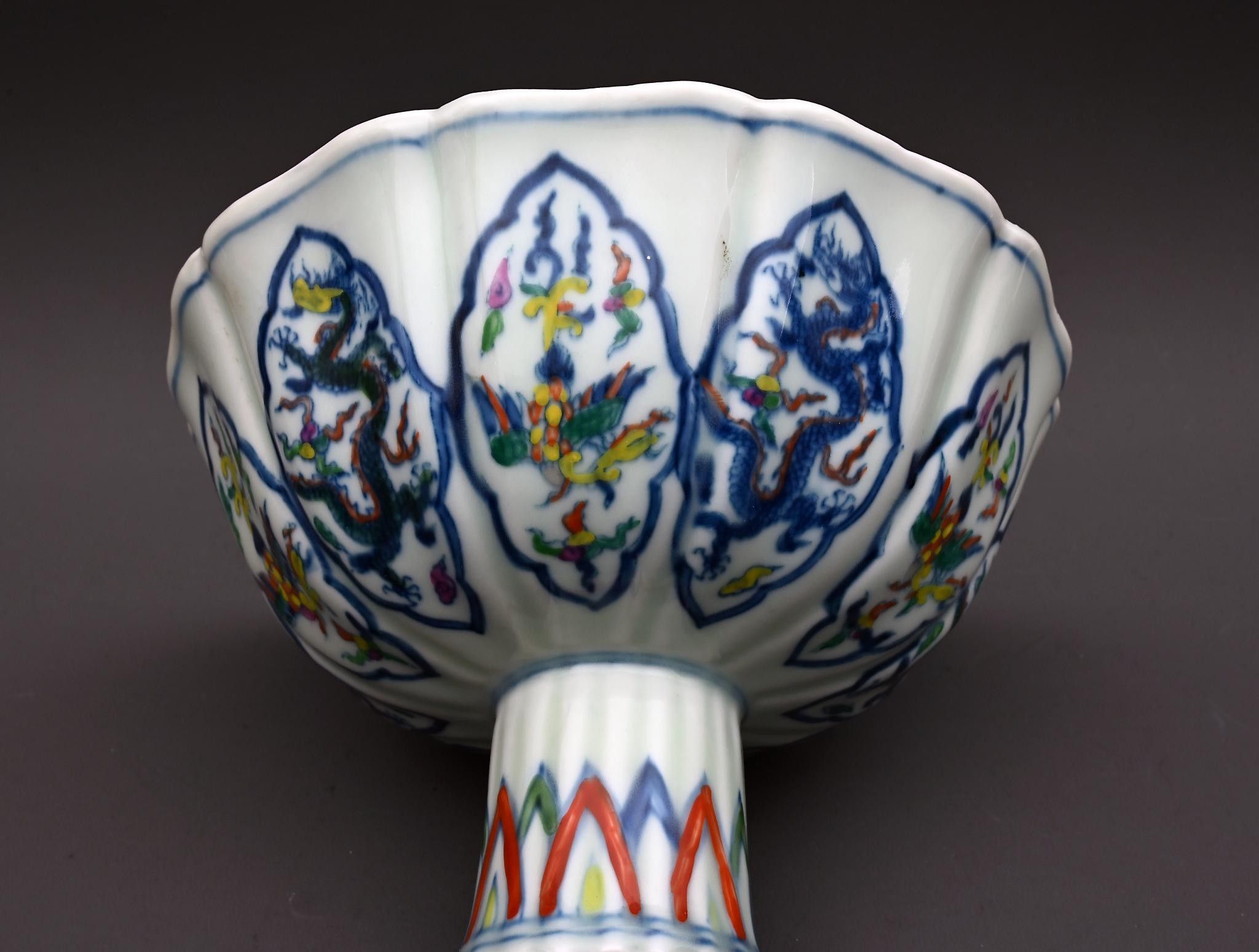 Porcelain bowl on pedestal with doucaï decoration of dragons…