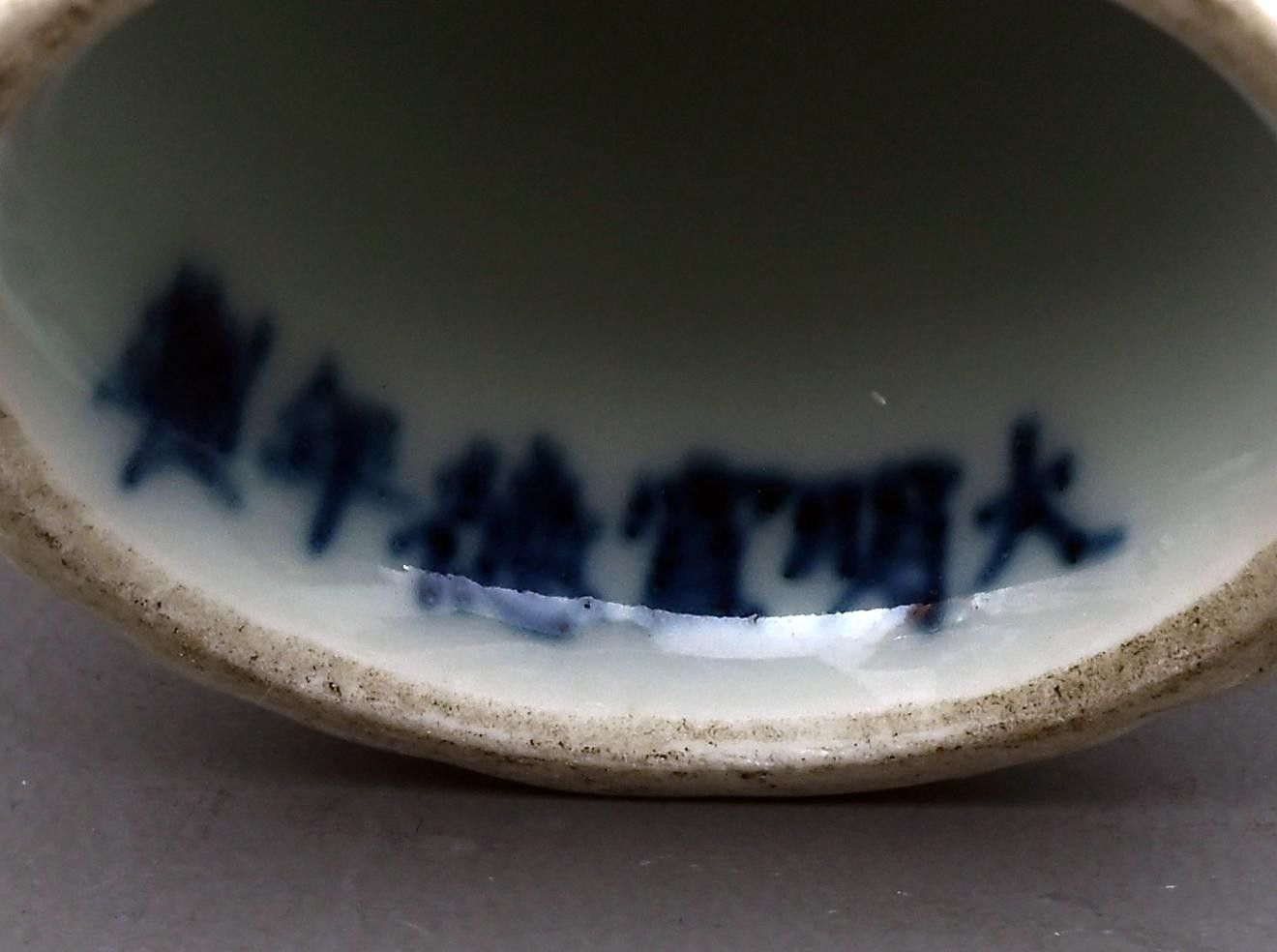 Porcelain bowl on pedestal with doucaï decoration of dragons and birds. China. Diameter: 16.7 cm. Height: 11.3 cm.